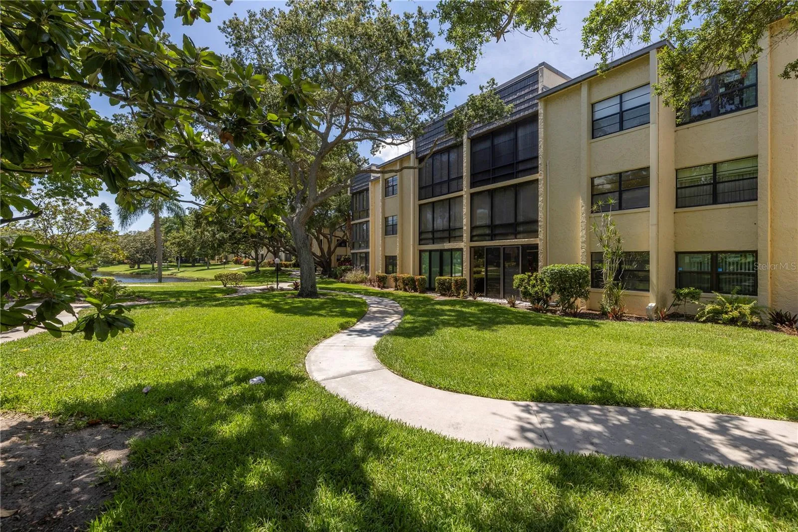 One or more photo(s) has been virtually staged. Rarely available – Top floor, end unit, 3 bedroom, 2 bath condo. Paradise awaits with a Florida Room featuring a wrap-around view of the pond and garden walking trails. Easy maintenance living at its finest – Recent upgrades include Hurricane rated windows throughout, New AC (2023), updated electrical panel (2021), and new water heater (2022). This light and bright open floor plan showcases the large room sizes and luxurious crown molding. The kitchen includes a large pantry and breakfast bar. The master bedroom has an en-suite bathroom including a tub shower combo, large walk-in closet and linen closet. Guest bathroom includes a walk-in tiled shower and granite vanity. All the bedrooms are generously sized and bedroom 2 includes a walk-in closet. This home has tons of storage inside AND an additional external storage closet. There are 2 entrances to this home and both feature lockable storm doors. The property is surrounded by mature landscaping, beautiful ponds and walking trails. Lakeview of Largo offers resort style amenities including 2 pools (1 heated), clubhouse, walking paths, picnic and grilling areas and shuffleboard. The maintenance fee includes water, sewer, garbage, basic cable, and all grounds and exterior building maintenance. This area has a fun, beach vibe. Only a 3 minute drive to catch the sunset at Indian Rocks Beach! Conveniently located 1 mile from world famous beaches and less than 30 minutes to both St.Pete-Clearwater International Airport and Tampa International Airport. Great location, close to the fun of Seminole City Center, Largo Mall, restaurants and shopping. Quick closing is OK here.