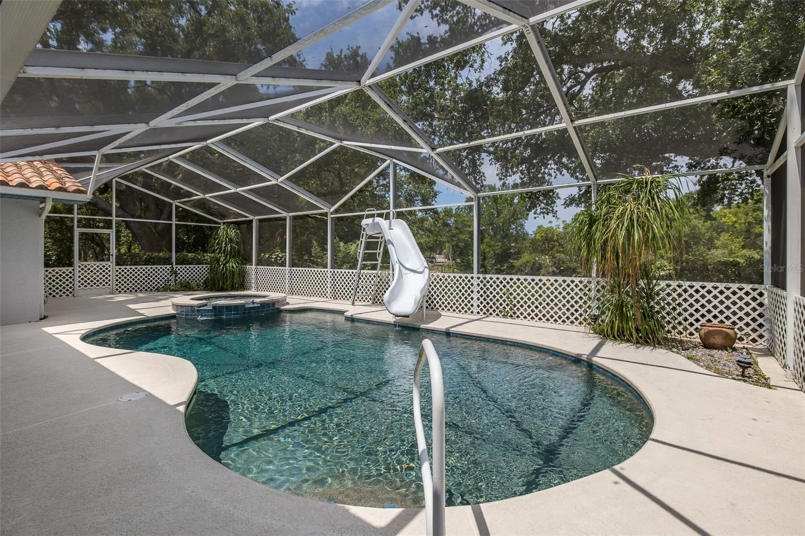 GREAT PRICE IMPROVEMENT, DON’T WAIT!! THIS IS AN AMAZING HOME RIGHT IN PALM HARBOR! WHERE DO YOU FIND ALMOST 1 ACRE OF LAND OVERLOOKING A BEAUTIFUL POND WITH WILDLIFE, LILY PADS AND SUPERBLY LANDSCAPED? THE GARLANDS, A PRIVATE AREA WITH 24 HOMES, YET MINUTES FROM EVERY CONVENIENCE. CUSTOM BUILT 4 BEDROOM, 3 BATH, 3 CAR SIDE ENTRY GARAGE WITH PEBBLE TECH SALT WATER POOL, 7 FT. SLIDE AND HEATED SPILL OVER SPA. SOARING VAULTED CEILINGS UPON ENTERING, UPSTAIRS THE PERFECT DUAL HOME OFFICE WITH CUSTOM BUILT-INS AND THE 4TH BEDROOM AND BATH THAN CAN ALSO BE USED AS AN IN-LAW SUITE/ GAME OR BONUS ROOM, BUILT-IN WET BAR AND OPENS TO A BALCONY/SUNDECK OVERLOOKING THE POOL AND POND. LIGHT AND BRIGHT WITH MANY SKYLIGHTS IN ALL THE RIGHT PLACES THRU OUT. FORMAL LIVING AND DINING ROOM LEAD INTO THE UPDATED KITCHEN WITH SOLID WOOD CABINETS, GRANITE COUNTER TOPS, NEWER STAINLESS APPLIANCES, NEW WINE FRIDGE AND BREAKFAST BAR. CUSTOM WOOD FLOORING IN THE LIVING AREAS. FAMILY ROOM WITH WOOD BURNING FIREPLACE, BUILT IN SHELVING AND 120 BOTTLE CUSTOM WINE RACK. THE PRIMARY SUITE IS SPACIOUS AND OPENS TO THE POOL. YOU WILL LOVE THE TOTALLY UPDATED PRIMARY ENSUITE BATH WITH ENORMOUS WALK-IN SHOWER, DUAL SHOWER HEADS AND 2 BENCHES, CUSTOM LISTELLO TILES. SPLIT FLOOR PLAN, WITH THE 2 GUEST BEDROOMS AND GUEST BATH LOCATED IN A PRIVATE AREA OF THE HOME. MANY ADDITIONAL UPDATES INCLUDE NEW TILE ROOF 2005, FLAT ROOF 2022, SALT CELL FOR POOL 2022, HURRICANE IMPACT SLIDING GLASS DOORS 2021 AND UPSTAIRS ONES DONE IN 2016. NEWER HOT WATER HEATER, NEW GARAGE DOOR OPENERS,WATER SOFTENER, 30 AMP RV PLUG IN GARAGE, HURRICANE PANELS AND A HURRICANE CURTAIN FOR LANAI AREA. BLINK CAMERAS, ADT SYSTEM AND RING DOORBELLS CONVEY WITH THE HOME. SELLERS ARE OFFERING A HOME WARRANTY ALSO. THIS IS A MUST SEE HOME, IF YOU WANT PRIVACY AND A PLACE TO PARK YOUR “TOYS”. CALL TODAY.