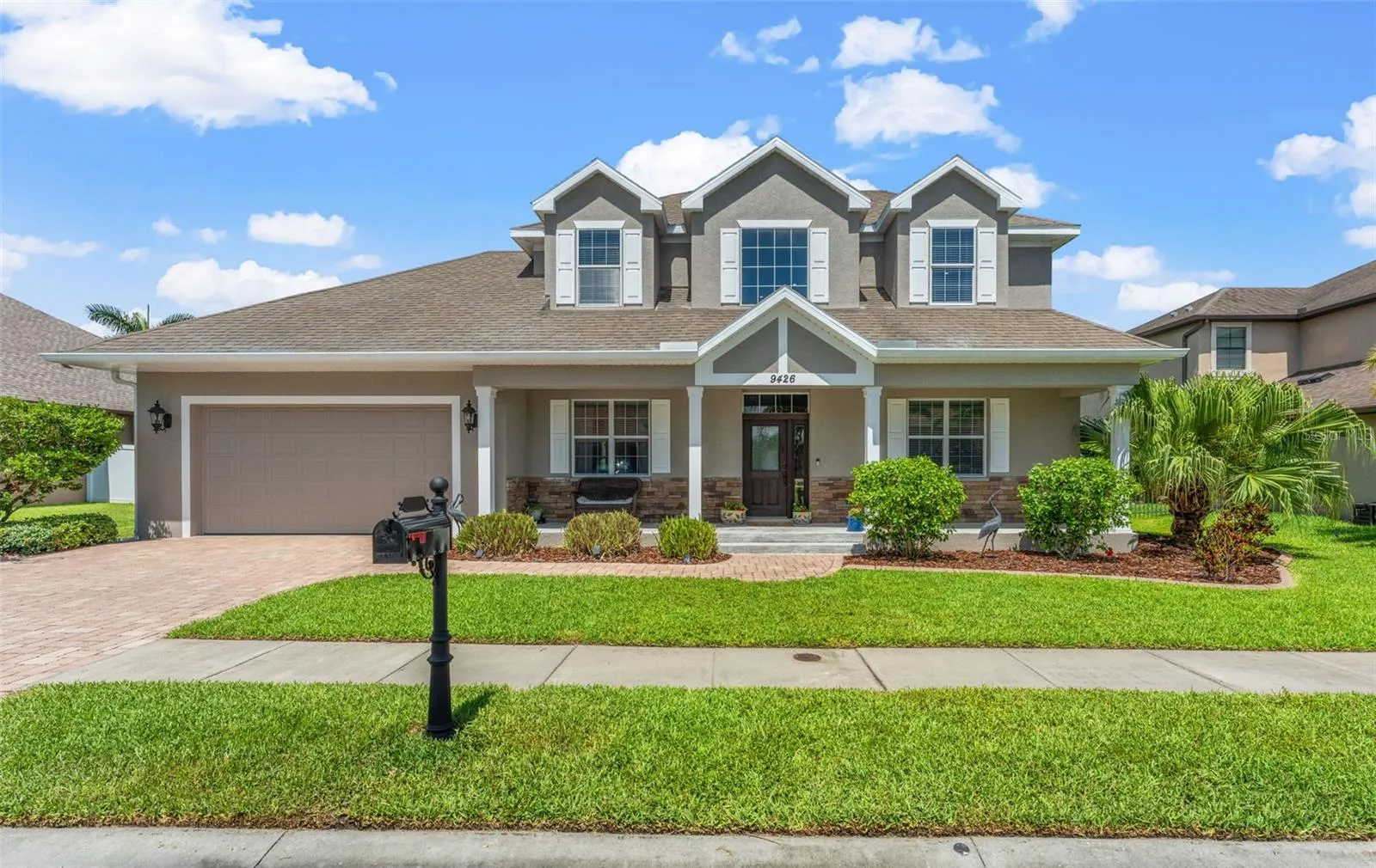 EXECUTIVE SALTWATER POOL HOME: Drive past the horse stables and enter the gated community of Heritage Reserve. As you arrive onto your brick-paved driveway expect to see little ones riding their bikes and playing basketball on evenings and weekends in this quaint gated community of 20 residences. The home’s traditional architectural style is turreted with special alcoves in upstairs bedrooms, contemporary columns, volume ceilings, crown moulding, and a view of the sparkling pool upon entering the home. This property masterfully executed an open floor plan without lacking special spaces for privacy such as a dry bar, separate dining room or study, and private bathrooms. The main level features an open floor plan, spacious storage solutions, and Master Bedroom + walk-in closet + en-suite bathroom complete with a separate wet room. Granite countertops, a gas stove, and solid wood cabinetry throughout compliment high ceilings and crown molding. A view of the sparkling pool and tropical Palm Trees through triple sliding glass pocket doors greets you as soon as you enter the home. The oversized covered patio featuring resort-style drapery, a 4K TV, and plenty of space for seating is perfect for entertaining This executive estate seamlessly blends fine outdoor living with mindful interior design. Enjoy a reprieve from guests in a spacious first level Primary Suite or any of the 3 additional bedrooms upstairs; one upstairs bedroom features its own remodeled private bathroom with another remodeled full bathroom upstairs. Enjoy complete peace of mind in Heritage Reserve, an idyllic neighborhood. SPECIAL FEATURES: TESLA charger in the garage, the backyard is studded for a hot tub installation, SMART features, brick-paved driveway and extended brick-paved pool patio, a fully-fenced in backyard with Banana Trees, Pear Tree, Mango, and Jackfruit trees. Sugar-sand beaches are just 15 minutes away, 20 minute from local events, dining options, and high-brow museums in downtown St. Pete, and Tampa International Airport is just a 25 minute drive away. Walking distance to parks, equestrian trails, and horse stables. Less than 2 miles from Mainlands Golf Course and less than 5min from boat storage for Boater Enthusiasts who’d like to live High & Dry! NON-FLOOD ZONE! Buyer responsible for due diligence. Schedule your private showing!