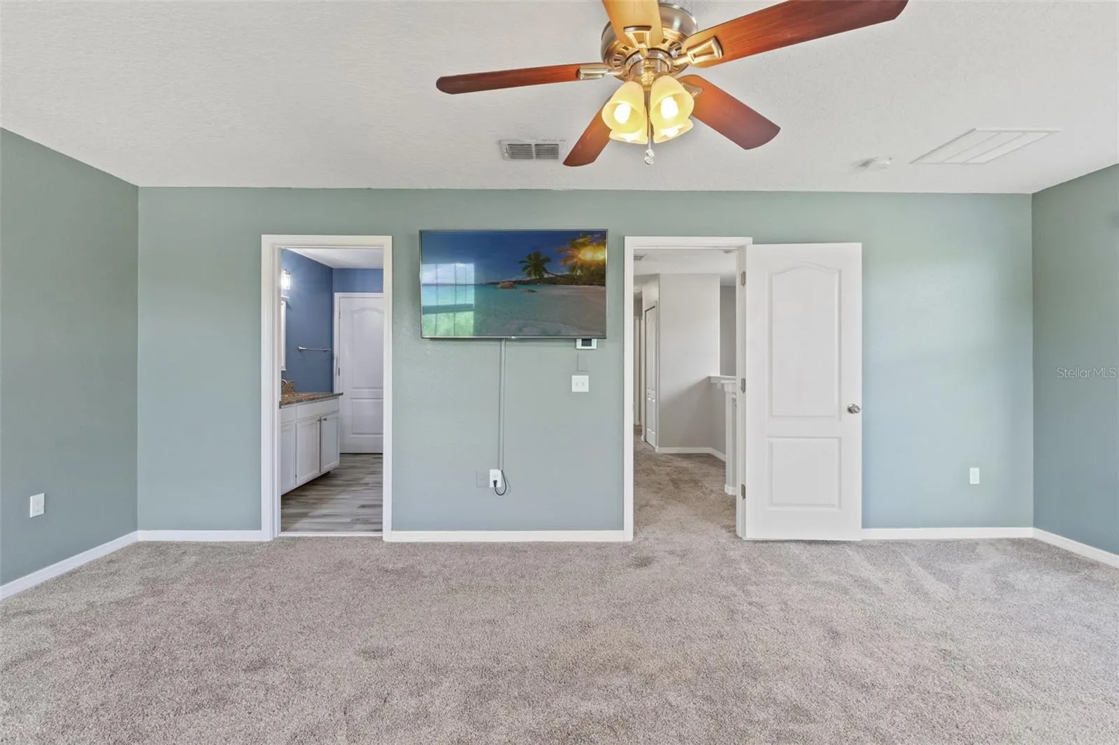 – Spacious Secondary Bedrooms: Two additional bedrooms offer generous closet space, ceiling fans, and picturesque water views. The second full bathroom is equipped with a large vanity, ample countertop space, and a shower/tub combo.