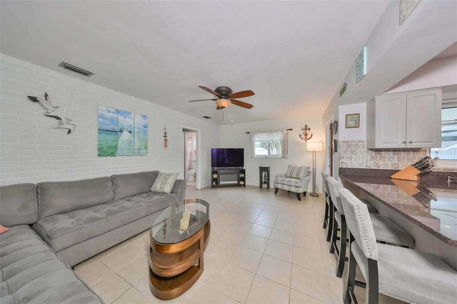 Located in a highly desirable Seminole neighborhood, this spacious, well-maintained home features a large, screened in patio/pool and large yard perfect for entertaining. Nestled on a quiet cul-de-sac, this home includes 2 bedrooms, 2 full bathrooms, a large formal living room, dining area, family room, and the open kitchen features 2 bars for additional seating. The main bedroom includes an ensuite and a large closet, as well as, a linen closet. Secondary bedroom has 2 closets for plenty of storage. Ceiling fans throughout the home. Exposed brick is in the foyer and family room and is original to the home. The screened in pool and patio is the perfect spot for family with plenty of room to create outdoor living space. The fenced in back yard with lush landscaping, has additional space for growing a garden and creating more space for seating and enjoying family and friends. Backyard also has a shed for extra storage. Zoned for Seminole schools and conveniently located just minutes away from the beach, this home is move-in ready for your family. Some recent updates include – Newer Roof 11/2017, Heat/Air 6/2022, Plumbing 6/2022, Water Heater less than a year, New Refrigerator and hurricane windows and garage door. Overall, this home provides comfortable living space with beautiful outdoor space. Call for your private showing today!