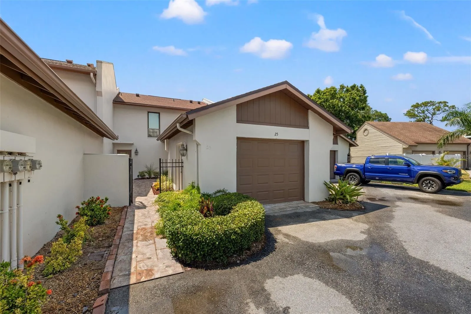 Modern Luxury at an unbeatable price! This 2 bedroom 2.5 bathroom townhouse is perfectly situated overlooking the fairway of the 9th hole at the Bardmoor Golf and Tennis Club. Upon arrival you’ll notice the brand new Spanish style tile which leads into a beautiful courtyard ready to host a myriad of social gatherings. Open the front door and enter into sophistication at its finest. Brand new Light and airy luxury vinyl plank flooring cover the 1700 square foot expanse of this dream home. As you make your way into the kitchen you will be greeted with an abundance of natural light and a desirable open floorpan. Gorgeous quartz countertops overlay the large kitchen island which can easily accommodate 4-5 seats. There is no shortage of storage with all new 42 inch solid wood cabinets and the addition of a walk in pantry! This kitchen was built for invitations and no expense was spared with the 2024 LG appliance package. Adjacent to the kitchen you will notice a flex space that has slider access to the courtyard. Turn this into a formal dining room or bring to life an indoor/outdoor entertainment area! Make your way up the stairs and enter into even more relaxation. Beautiful earthy and natural tone vanities grace the guest and master bathrooms along with Swiss Madison toilets, rainfall shower heads and a jet package in the master bathroom create a spa like experience. The Master bedroom is coupled with a large walk in closet and a modern accent wall for a stylish touch. For added convenience you will find the laundry room perfectly situated outside the guest and master bedrooms. And for those who enjoy sitting out back and taking in the scenery the screened in lanai is freshly tiled and offers picturesque water and golf course views. Additional upgrades include a brand new garage door and garage door opener as well as a Carrier A/C unit and new duct work throughout the home. HOA includes water/sewer/trash, exterior maintenance including roof, exterior grounds and insurance. The insurance policy is the new updated policy. This unparalleled property is located close to shopping, dining and the gulf coast beaches. Whether it’s golf, tennis, swimming, or pickleball this area has it all. The Bayou Club offers a variety of memberships and the Bardmoor Golf & Tennis Club has a public golf course and a public restaurant & bar as well as affordable memberships. Come enjoy paradise today!