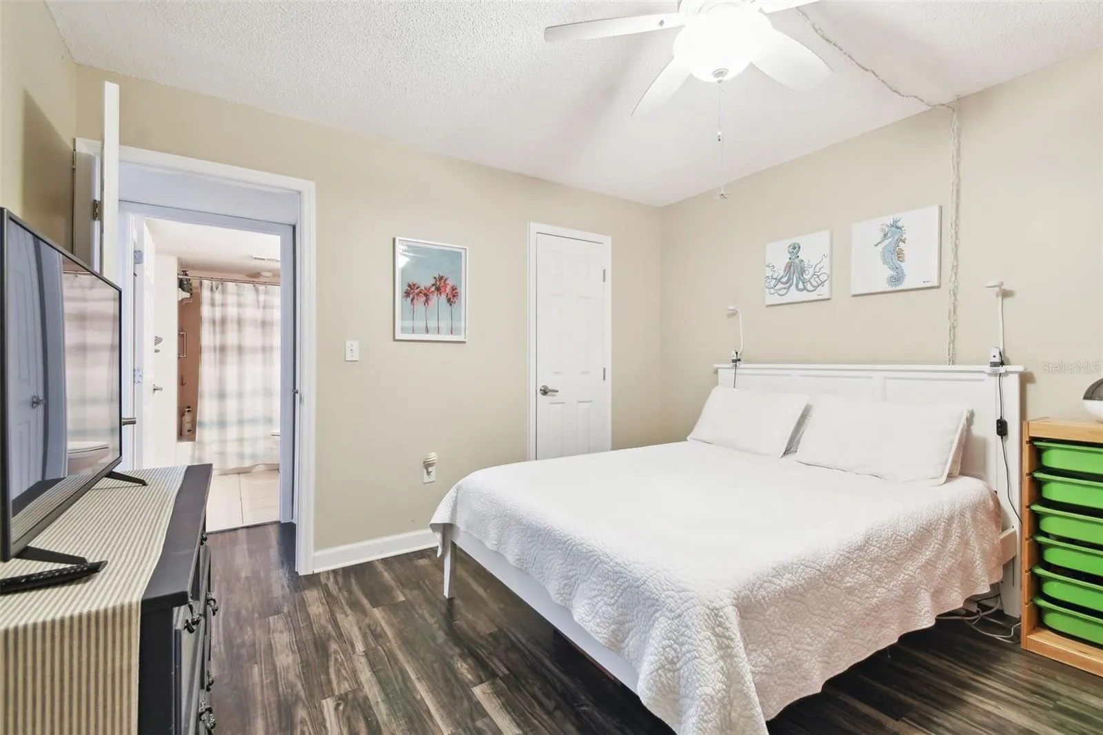 in shower. The secondary bedroom also has a walk in closet and bathroom and linen closet nearby.