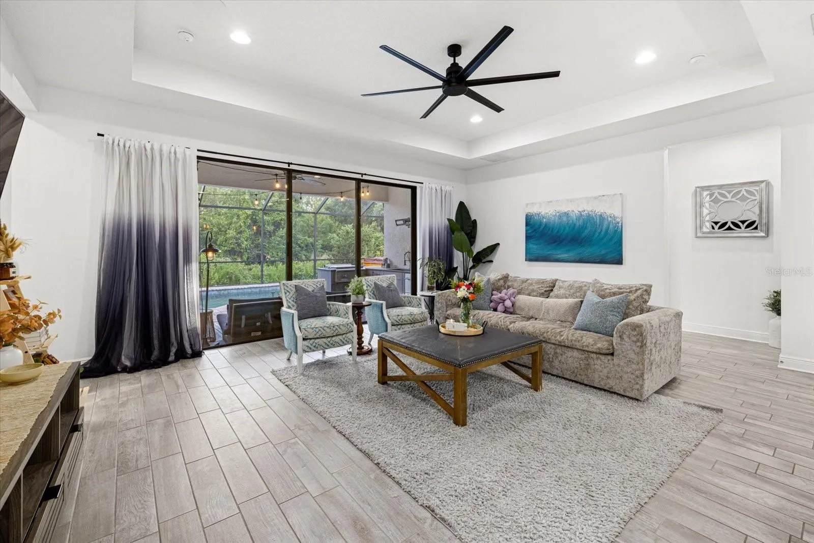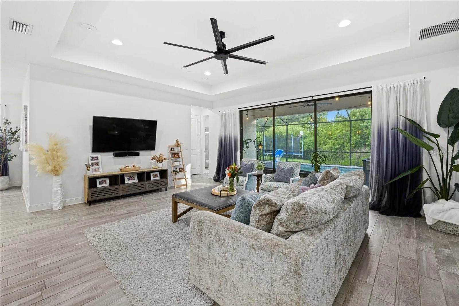 The spacious living area brings in plenty of natural light, accentuating the impeccable craftsmanship and attention to detail found throughout the home.