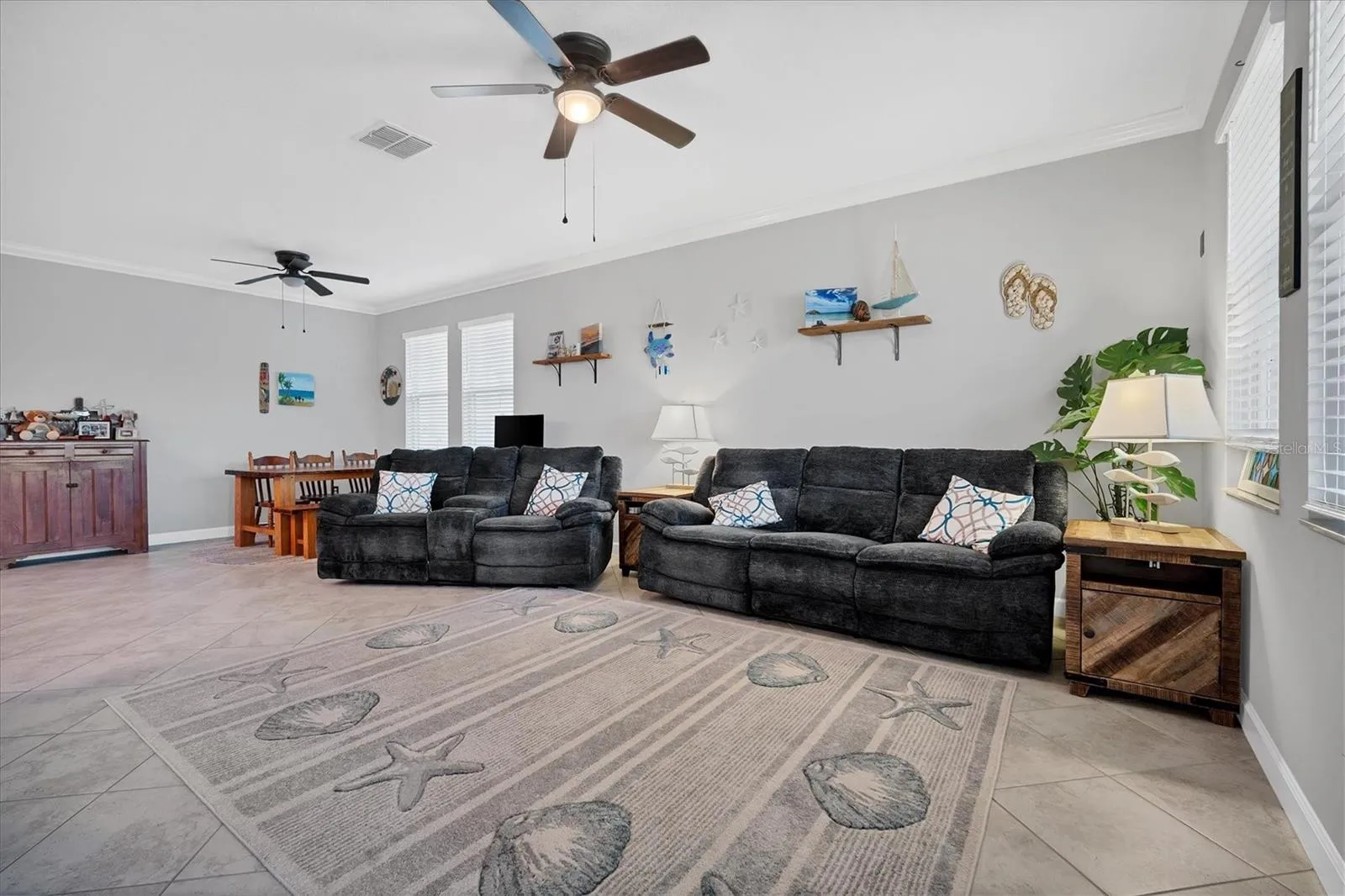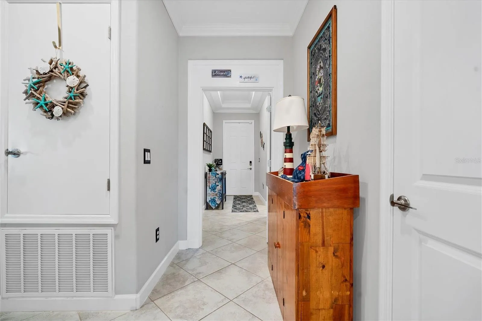 Step into luxury through the foyer, where gleaming tile floors guide you through the open-concept living spaces. The expansive living room, illuminated by natural light, offers the ideal setting for entertaining guests.