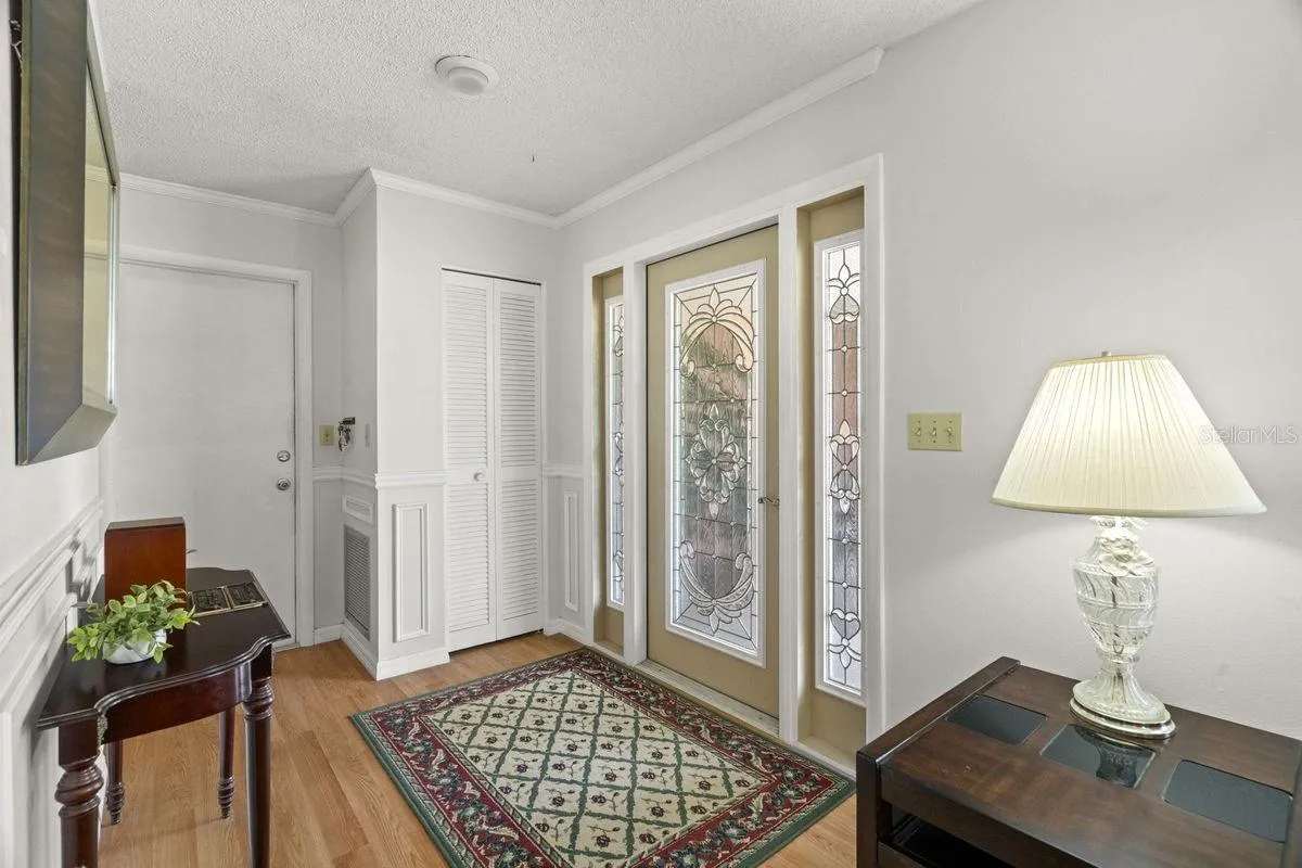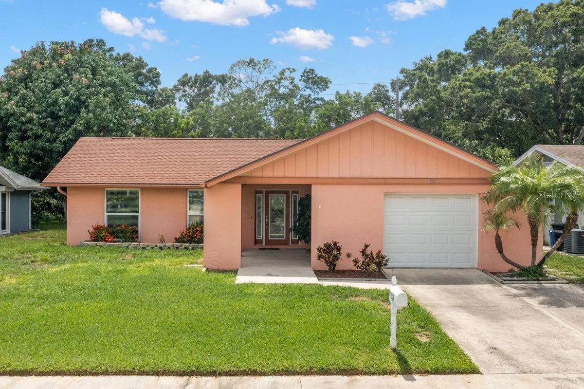 Looking for an affordable home with maintenance free living? Look no more! This home is located in the sought after 55+ community of Lakes Unit I. It has an attractive curb appeal and sits on a 61×100 lot in a non-flood zone. Home has been lovingly cared for and offers a bright spacious plan that includes the following: large covered front porch with bench, glass entry door with side lights, welcoming foyer, nice sized living room, casual dining area, galley kitchen with closet pantries, master bedroom with private bath & walk-in closet, guest bedroom, hall bath, bright Florida Room with wall to wall screened windows, an oversized garage with washer & dryer, plus a 2-car parking pad. The abundant indoor living spaces make this home great for entertaining. Enjoy your morning coffee and evening glass of wine from your covered front porch or rear Florida Room. Home also features the following updates: hurricane impact windows – front door – glass sliders & garage door, 2″ plantation blinds, Florida Room sun shades, vertical blinds for sliders, decorative wall molding, plus a shingle roof (2017). It is conveniently located footsteps from the community clubhouse where you find a tropical heated pool with paved sun deck, shuffleboard courts, large social hall, game room with library, and activities calendar. Monthly fees include all recreational facilities, lawn care, pest control, PLUS cable & internet! The community is ideally located near major thoroughfares to St Pete, Tampa, Clearwater, the Gulf Beaches and countless restaurants and shopping hubs. This is a MUST SEE for buyers seeking single family maintenance free living in a great location.