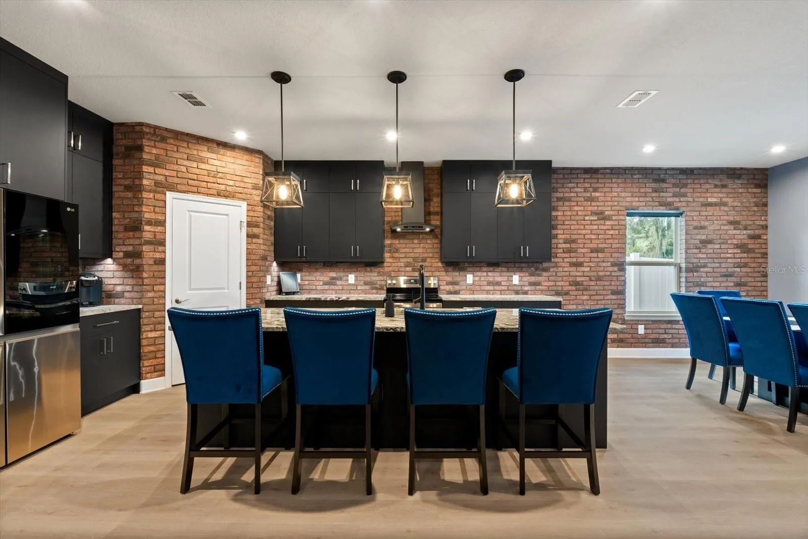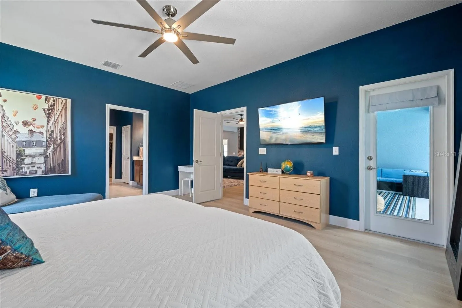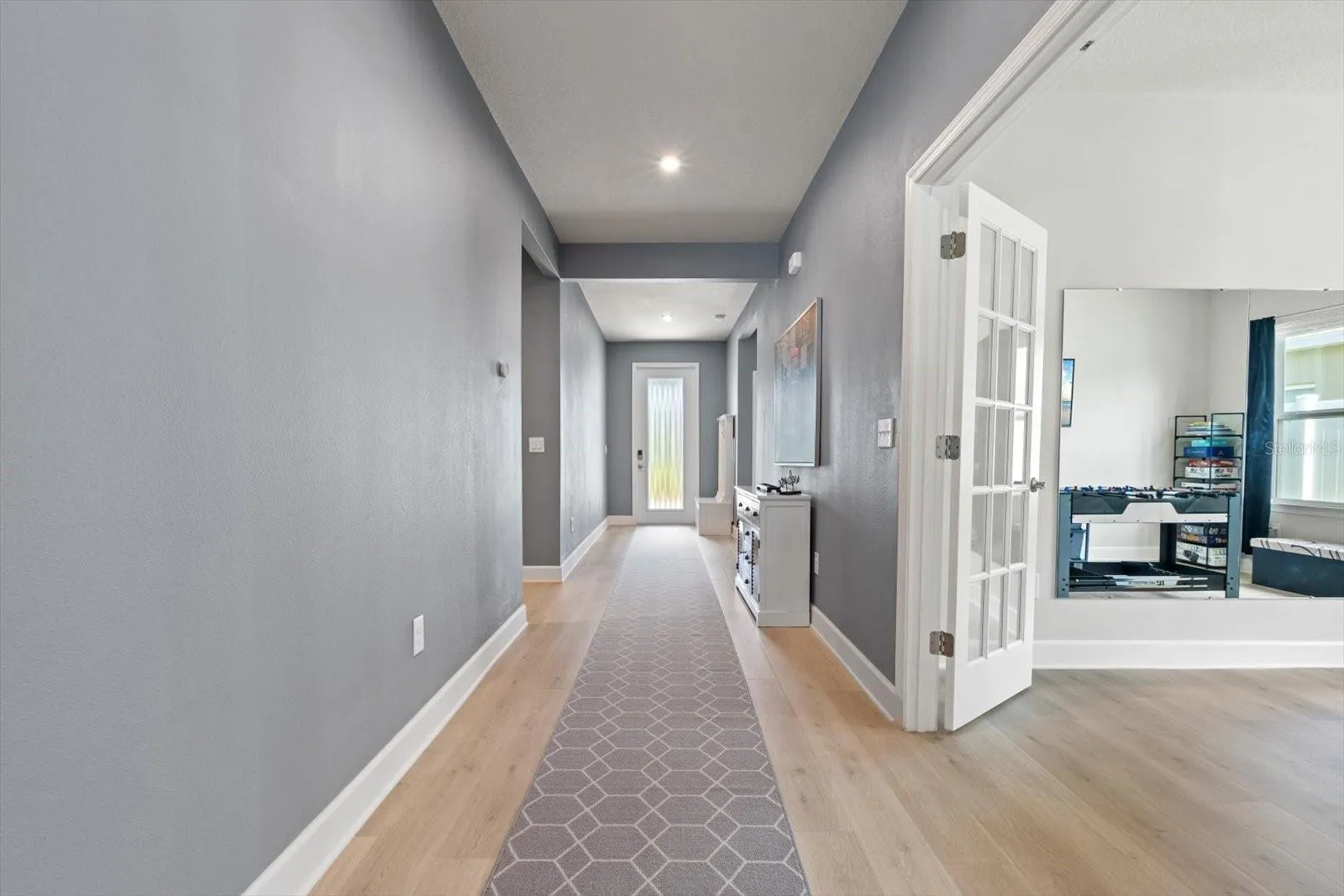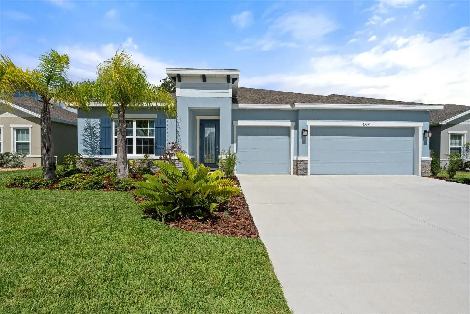 Welcome to this exquisitely upgraded home, designed to impress from the moment you enter! Boasting over $150k in upgrades, the expansive open floor plan features elegant, upgraded Pergo Outlast+ flooring throughout, offering a beautiful wood-look. To the left of the foyer, two spacious bedrooms feature ample closet space and share a luxurious hallway bathroom with a double vanity and bathtub. Across the hallway, a third bedroom with a private bathroom provides ideal accommodations for guests. There’s also a versatile bonus room, perfect for a home office, playroom or any purpose you desire. The highlight of this home is the designer custom kitchen, featuring Supermatte black cabinetry with anti-fingerprint, auto-regenerative, and impact-resistant properties. Soft close doors and drawers, a built-in microwave, and integrated under-cabinet lighting complete this exceptional space. The custom brick backsplash flows through the kitchen and into the adjacent dining room, bathed in natural light from surrounding windows, seamlessly connects the kitchen and dining areas. The Owner’s Suite is a tranquil retreat with serene, wooded views through large windows and direct access to your heated, private saltwater pool, which features programmable multi-colored LED lighting to match your mood. A sizable walk-in closet enhances functionality, while the en-suite bath boasts a spacious frameless glass Roman Shower with seating and a double vanity. Experience the best of Florida living with this exceptional home, ideal for both relaxation and entertainment! Do you enjoy hosting summer barbecues or enjoying meals under the stars? The patio is pre-plumbed for an outdoor kitchen, offering endless possibilities for alfresco dining and entertaining. With no CDD fees and a low HOA, residents can enjoy community amenities including a pool, recreation area, and walking trails. Conveniently located near top-rated schools, shopping, and dining. Don’t miss the opportunity to make this stunning home yours!