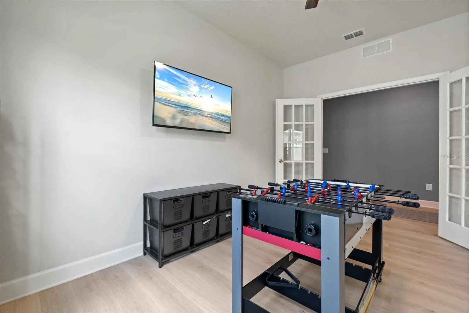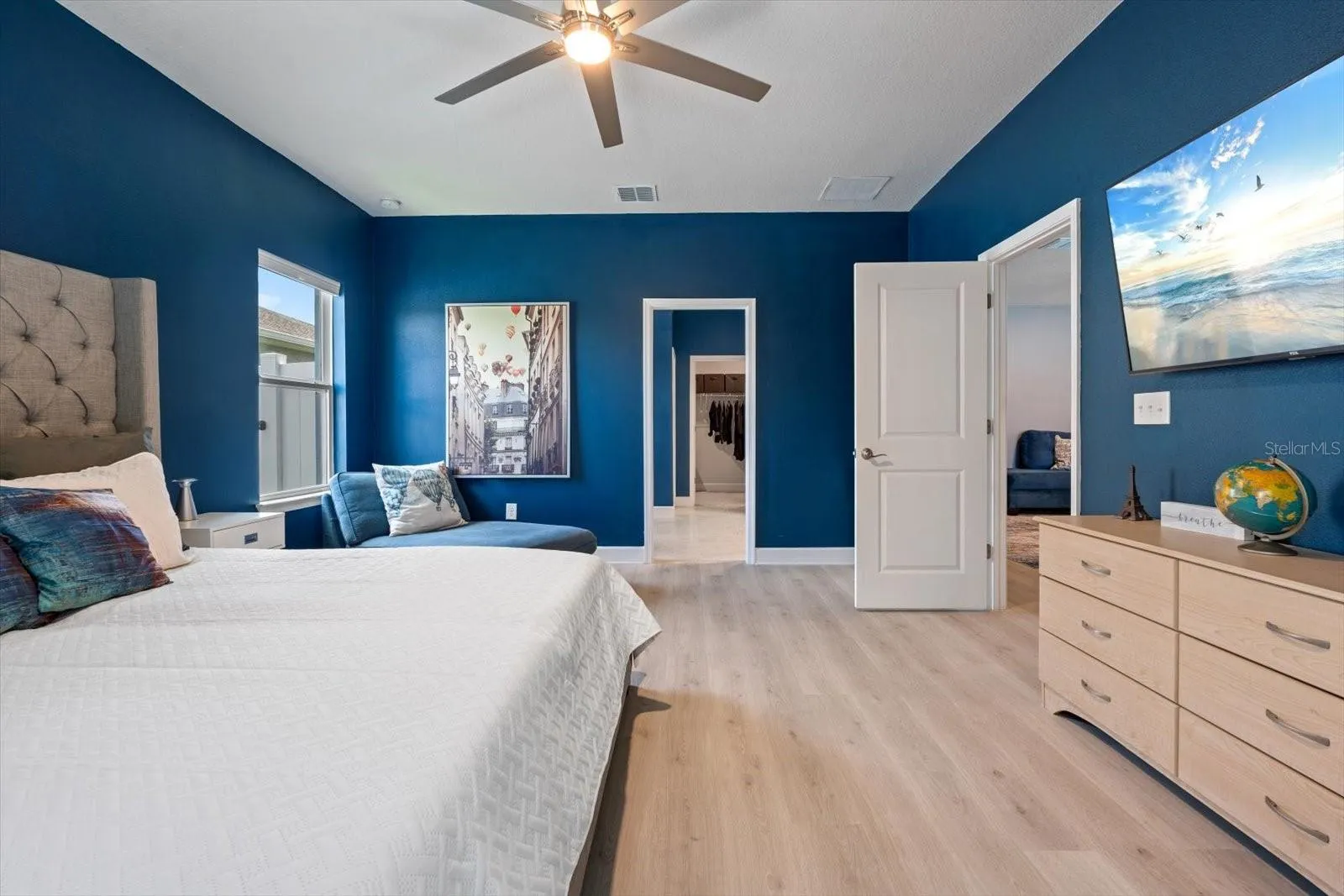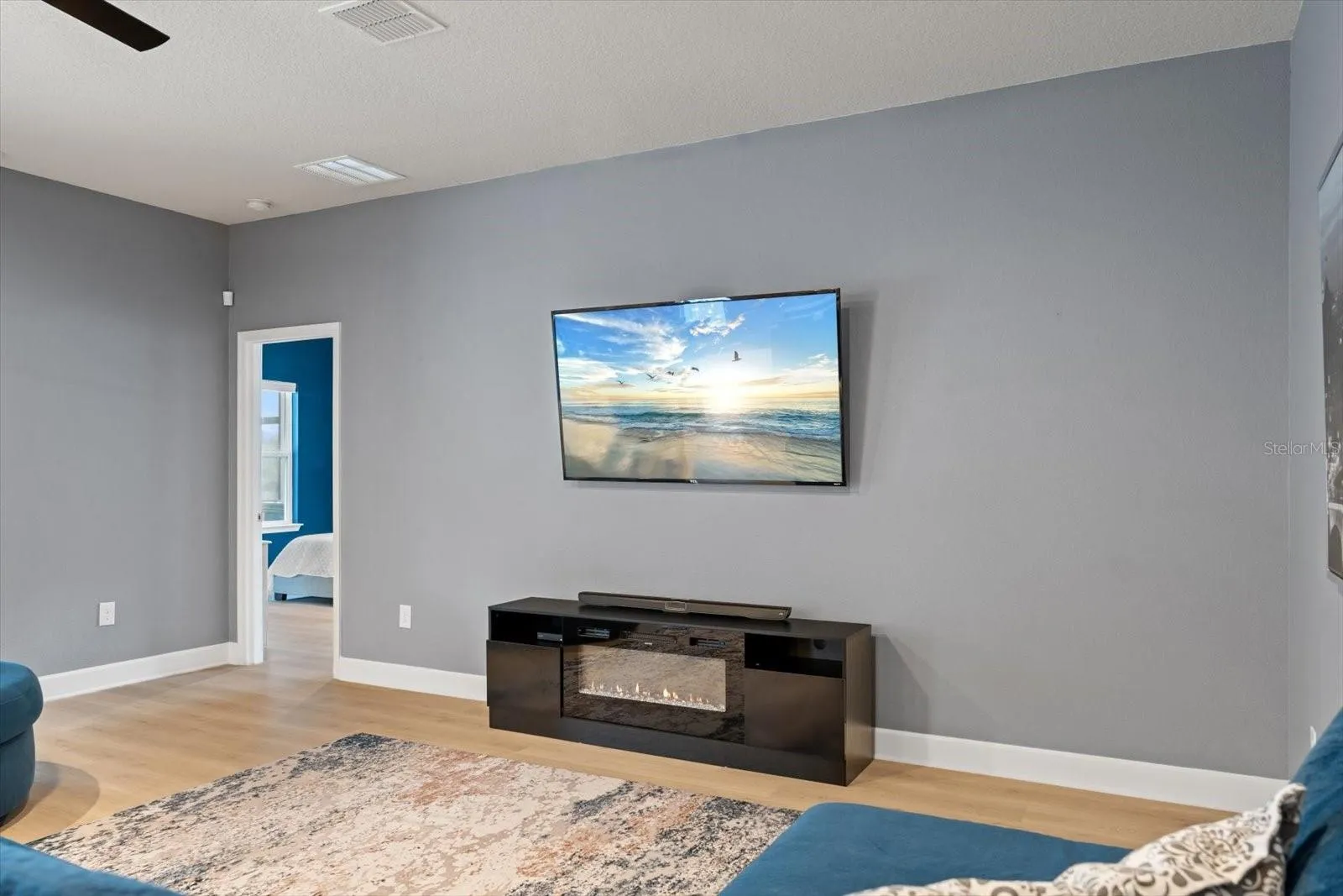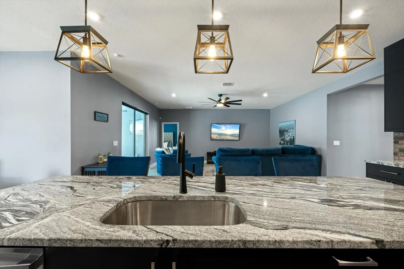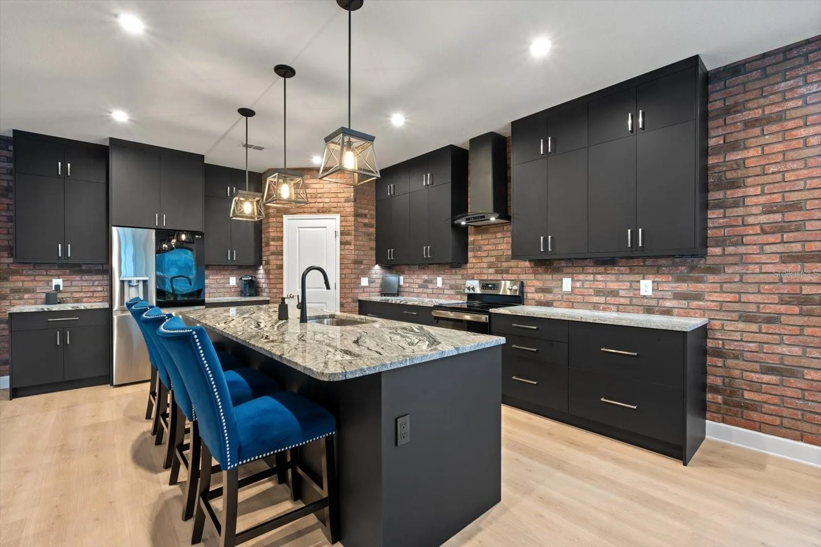 Welcome to this exquisitely upgraded home, designed to impress from the moment you enter! Boasting over $150k in upgrades, the expansive open floor plan features elegant, upgraded Pergo Outlast+ flooring throughout, offering a beautiful wood-look. To the left of the foyer, two spacious bedrooms feature ample closet space and share a luxurious hallway bathroom with a double vanity and bathtub. Across the hallway, a third bedroom with a private bathroom provides ideal accommodations for guests. There’s also a versatile bonus room, perfect for a home office, playroom or any purpose you desire. The highlight of this home is the designer custom kitchen, featuring Supermatte black cabinetry with anti-fingerprint, auto-regenerative, and impact-resistant properties. Soft close doors and drawers, a built-in microwave, and integrated under-cabinet lighting complete this exceptional space. The custom brick backsplash flows through the kitchen and into the adjacent dining room, bathed in natural light from surrounding windows, seamlessly connects the kitchen and dining areas. The Owner’s Suite is a tranquil retreat with serene, wooded views through large windows and direct access to your heated, private saltwater pool, which features programmable multi-colored LED lighting to match your mood. A sizable walk-in closet enhances functionality, while the en-suite bath boasts a spacious frameless glass Roman Shower with seating and a double vanity. Experience the best of Florida living with this exceptional home, ideal for both relaxation and entertainment! Do you enjoy hosting summer barbecues or enjoying meals under the stars? The patio is pre-plumbed for an outdoor kitchen, offering endless possibilities for alfresco dining and entertaining. With no CDD fees and a low HOA, residents can enjoy community amenities including a pool, recreation area, and walking trails. Conveniently located near top-rated schools, shopping, and dining. Don’t miss the opportunity to make this stunning home yours!