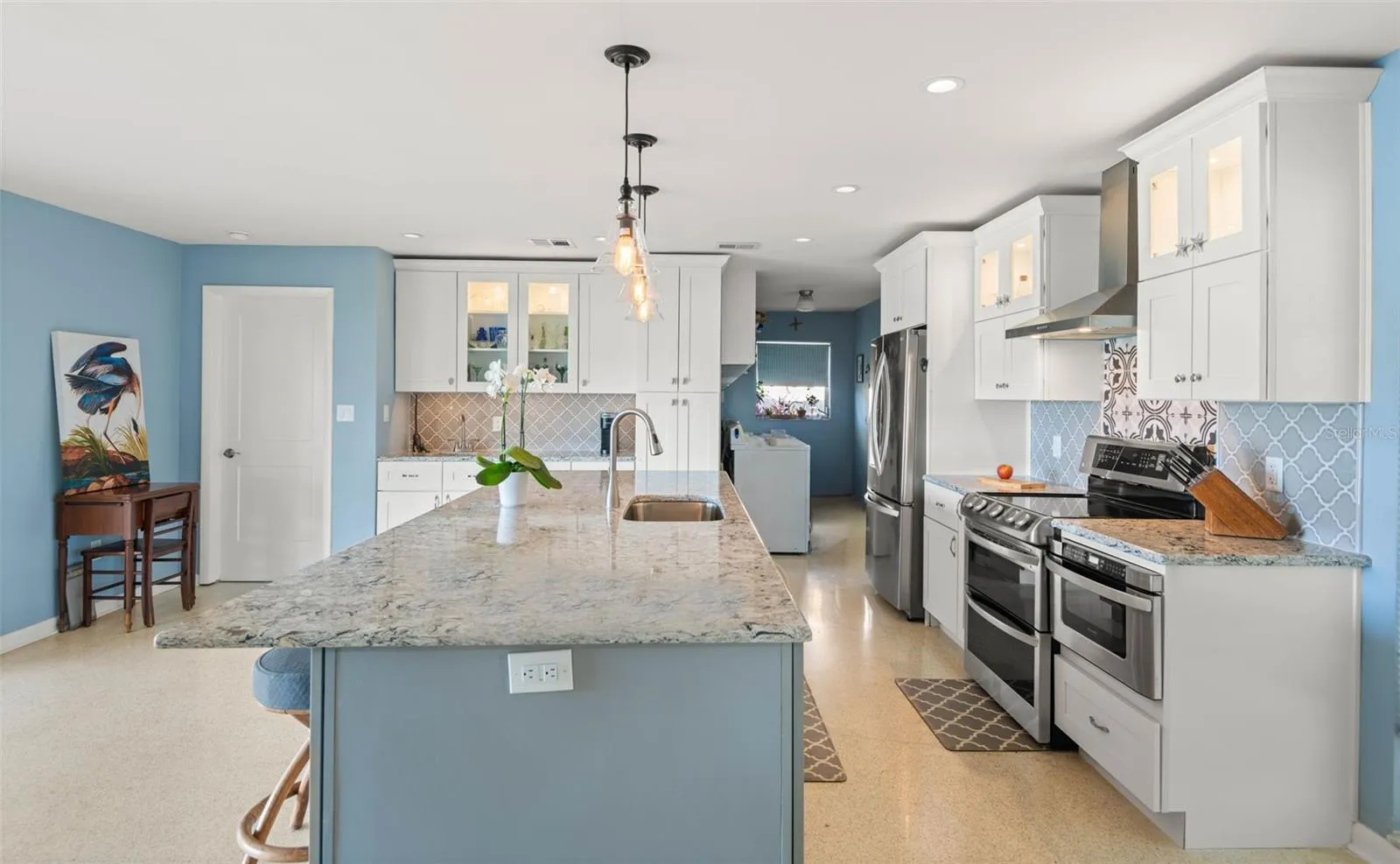 - Ceiling Fans(s), Open Floorplan, Thermostat, Eat-in Kitchen, Primary Bedroom Main Floor, Split Bedroom, Stone Counters, Solid Wood Cabinets, Wet Bar