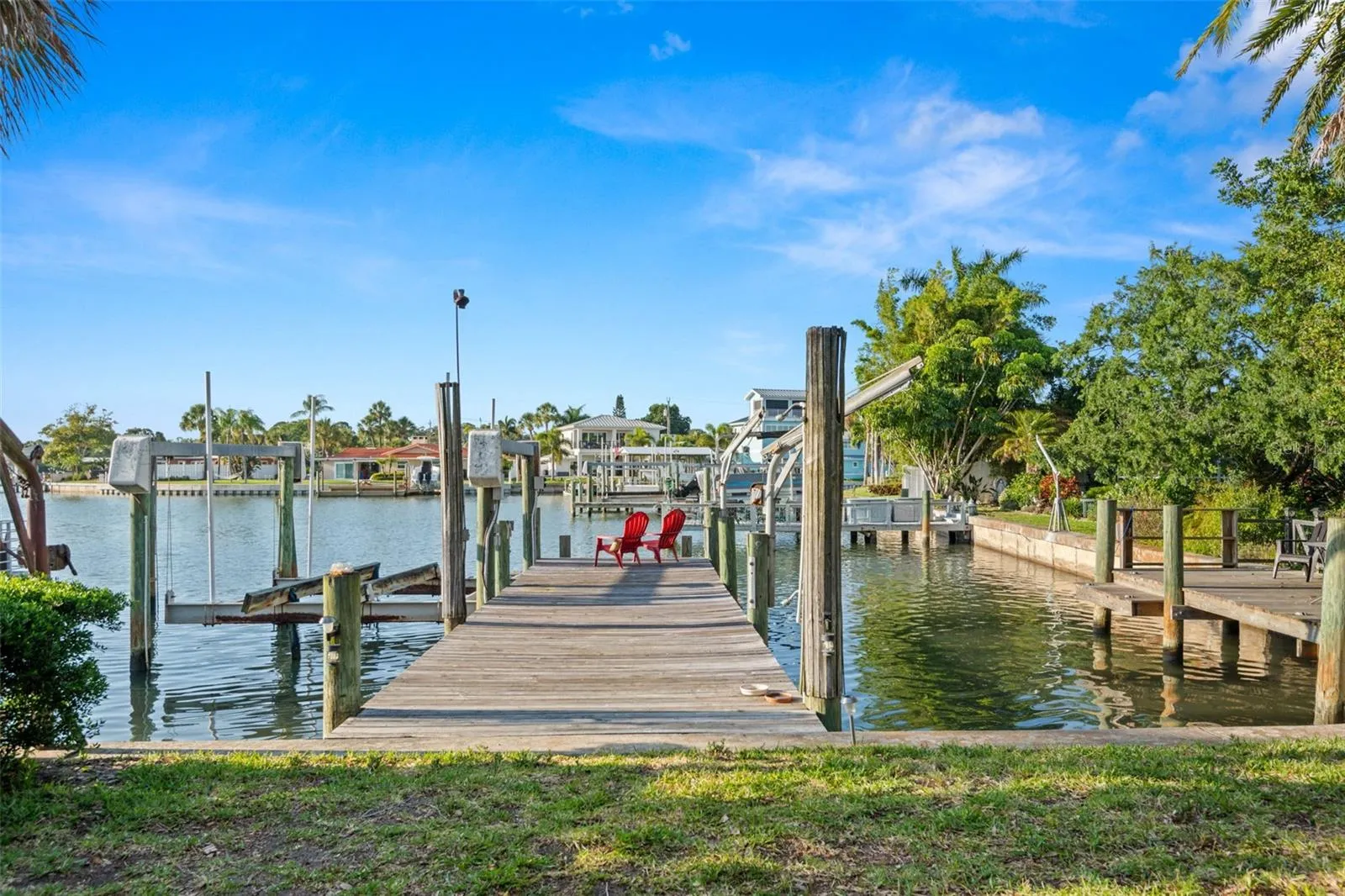 Beautiful WATERFRONT home with all the sought after features! A boater will appreciate the quick, easy trip out to the Gulf of Mexico for FISHING and recreation. With a 14K lb. boat lift and room for smaller 2nd boat, jet ski, and kayaks, this is a rare property. The protected deep-water DOCK will accommodate larger boats and has power and water run to it. It is wide enough to allow chairs to enjoy the sunset while leaving room to load and unload your boat. You have open WATER VIEWS and privacy as well in this quiet, easily accessible Harbor Hills neighborhood, without beach traffic! This block home has 3 BR, 2 BA, with a split floor plan, INSIDE LAUNDRY and an oversize 2 car garage. Plenty of closets for storage inside and extra room in the garage. The OPEN FLOOR PLAN maximizes beautiful water views and lots of natural light. A RECENT REMODEL of the core of the house, the kitchen and both bathrooms, upgraded the character of this classic Florida home. The open kitchen has a large island with plenty of storage, a wet bar/coffee counter, Cambria QUARTZ countertops, custom wood Shaker-style cabinets with soft close hardware in kitchen and master bath, under kitchen cabinet dimmable lighting, and 2021 stainless LG appliances with double oven, ThinQ smart refrigerator, dishwasher and drawer-style Sharp microwave plus other top end appointments. The light-colored terrazzo floors have been beautifully refinished. (no grout to discolor!) The electric panel is NEW. The spacious lanai runs the length of the back of the house to enjoy relaxing and meals in screened comfort while watching the dolphins and manatees. The sprinkler system is hooked up to Largo reclaimed water for economical irrigation regardless of any water restrictions. And a compact yard means less maintenance, more time for fun! Just minutes away from top-rated BEACHES, award winning GOLF courses, shopping, restaurants and entertainment. Conveniently located to Major League Sports for Buccaneers, Rays and Lighting games, plus practice facilities for the the Phillies, Blue Jays, and New York Yankees. Day trip to some of Florida’s best theme parks and attractions. St Pete/Clearwater and Tampa International are both easily accessible. The city of Largo also allows short term rentals. Properties like this do not come around often! By appointment only please!