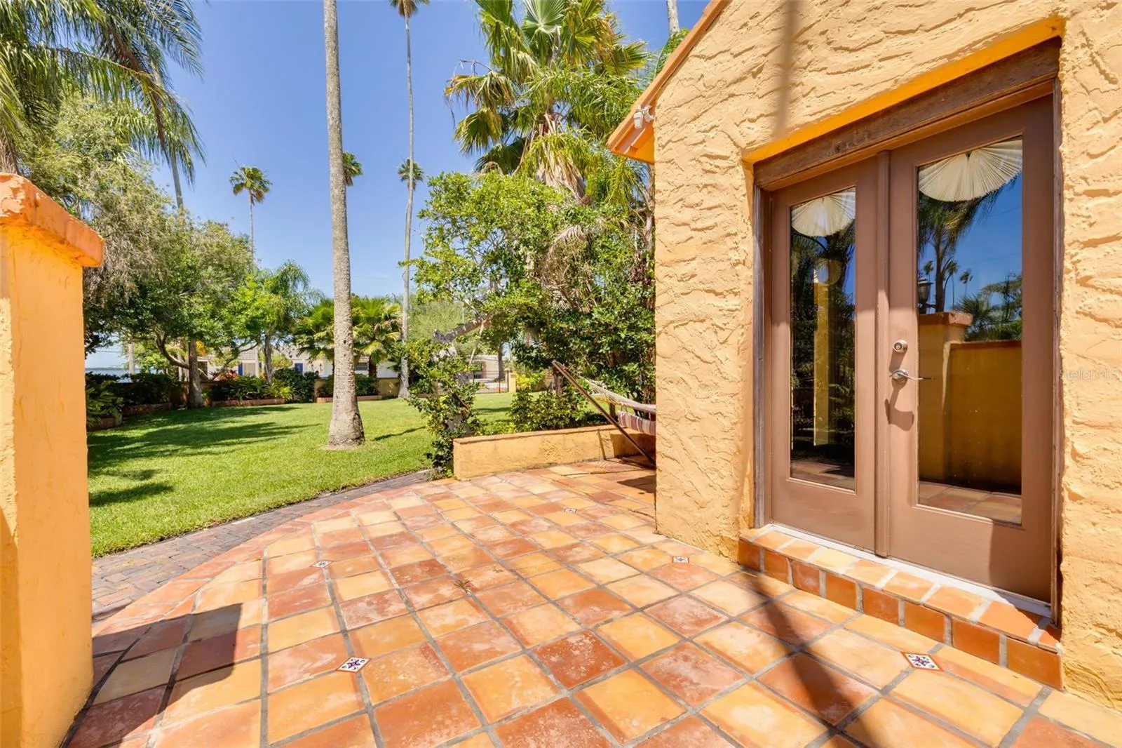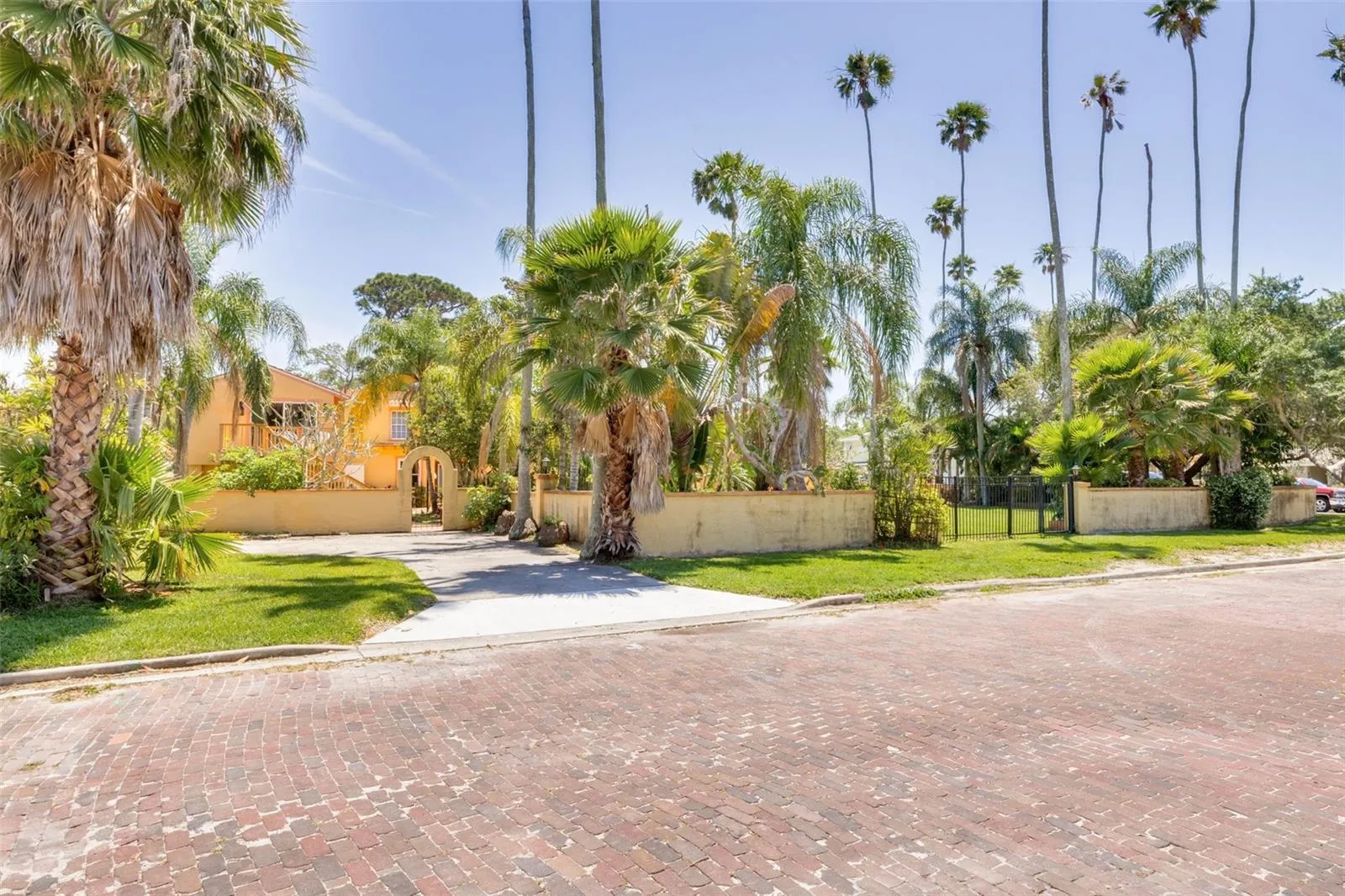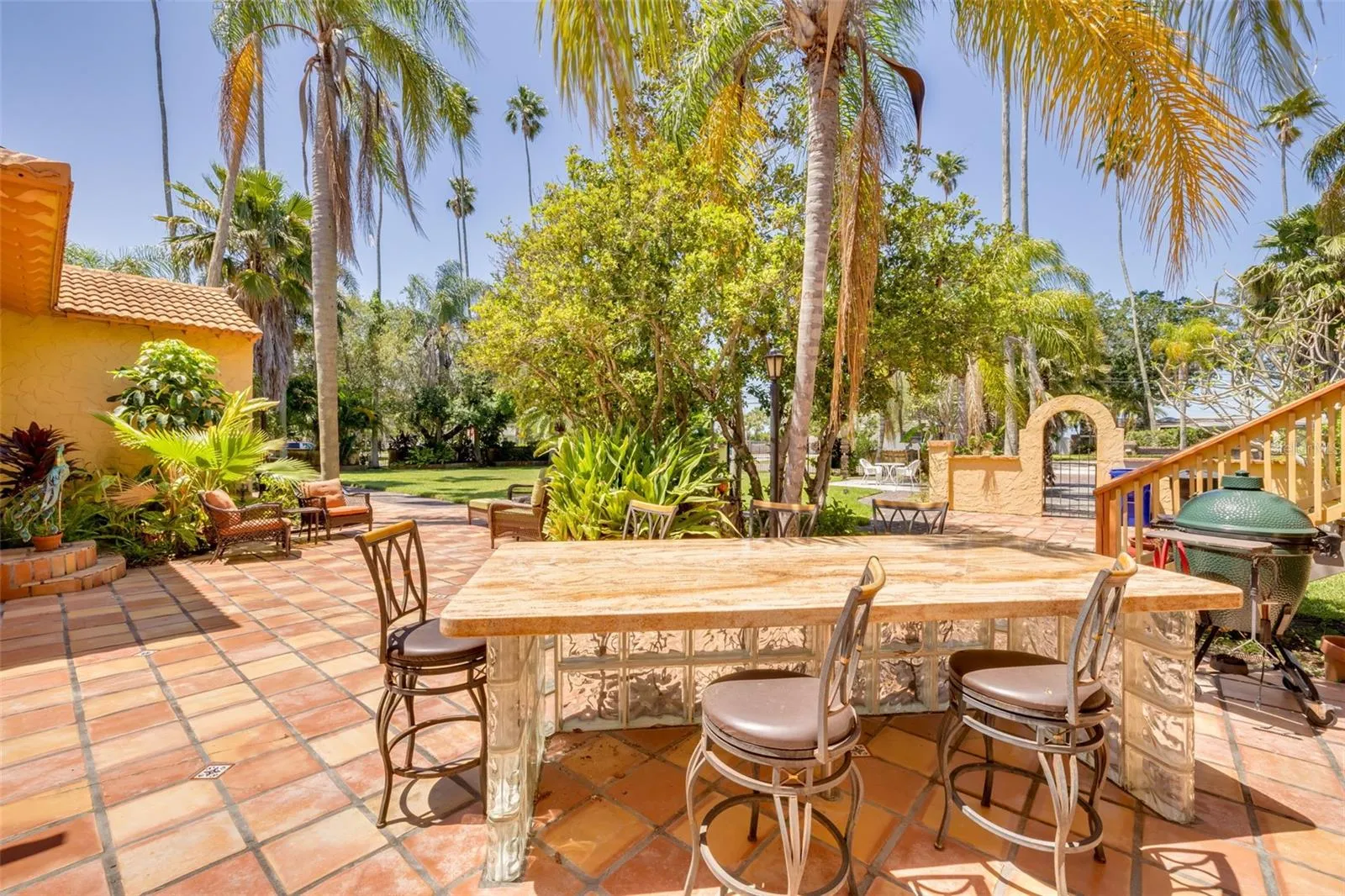 Welcome to 236 San Salvador Drive – where you’re instantly transported back to the Roaring 20s upon approaching this fully restored Spanish Revival estate. This is one of only 11 homes built by, Ephraim “Ed” Frischkorn, who developed the iconic Dunedin Isles and Dunedin Golf and Country Club. Just under a half-acre, the grounds are lush with mature tropical landscaping and boast views of St. Joseph Sound. The main house has 3 bedrooms and 2 bathrooms, while the in-law suite has one bedroom and one bathroom. The outdoor kitchen and dining space with granite countertops and a large island set the tone for effortless entertaining. Making your way inside, you’ll be greeted by the original refinished hardwood floors, elegant archways, and unmistakable 1920s architectural charm. The sunlit family room with its vaulted ceilings, exposed beams, wood-burning fireplace, and stone tile floors imported from Cuba is an instant favorite gathering spot. The spacious kitchen is built for the most discerning chefs who will appreciate the walk-in pantry, appliance garage, gas range, and leather-finish granite countertops. Just off the kitchen, the luxurious owner’s suite reveals a true retreat with a home office, cozy reading nook, and a spa-like ensuite bath with a walk-in closet featuring built-in dressers. Two additional bedrooms at the rear of the home offer privacy and share a completely renovated, ADA-accessible bathroom. Across the sunny courtyard, an upstairs one-bedroom, one-bathroom in-law suite with a full kitchen, remodeled bath, and private patio overlooking St. Joseph Sound provides private guest quarters or income opportunities. With its proximity to waterfront parks, Honeymoon Island, and vibrant downtown Dunedin, this beautifully restored architectural masterpiece seamlessly blends history with modern luxury. Don’t squander your opportunity to be a part of Dunedin’s history.