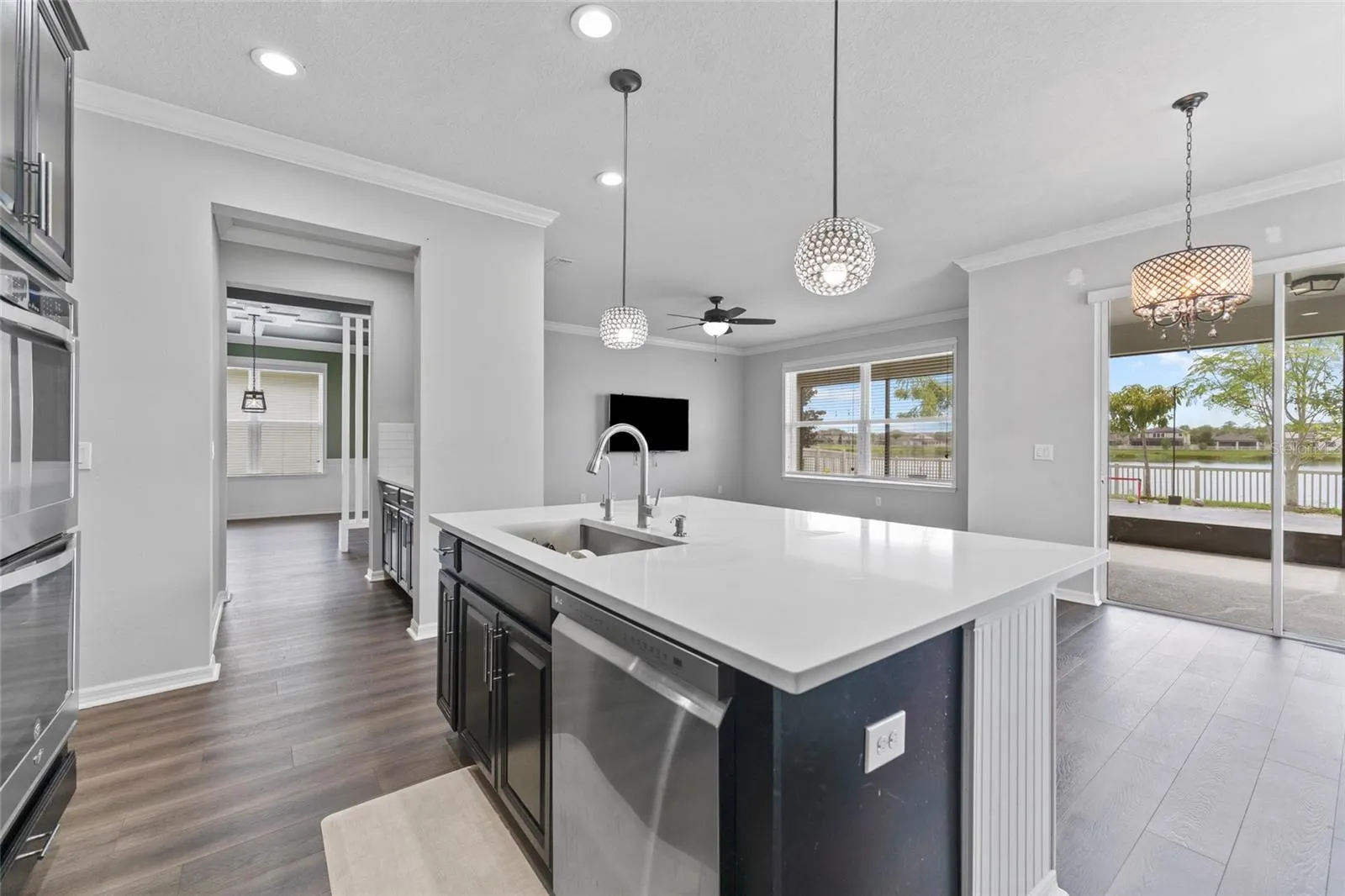 Absolutely Stunning! 5 Bedroom + LOFT / 3 Bath / 3 Car Garage / Fully Fenced, executive home in highly sought after Long Lake Ranch. This recently built (2017) home is Beazer’s Captiva model which is an ENERGY STAR® certified two-story home with all the upgrades you want, combined with a fantastic location. This upgraded site even has an extended lanai for enjoying the outdoors and Lake View. The entire downstairs has been redone in stunning and durable/waterproof Pewter colored Luxury Vinyl Plank (LVP) flooring! Simply stunning! The entryway has an impressive brick-paver entrance, and the foyer is Spacious with a large 8′ entry door. The OPEN KITCHEN features STAINLESS STEEL appliances with double wall oven, gorgeous Espresso-finish Scottsdale® maple hardwood cabinets with crown molding throughout, Azul Platino® granite, subway-style tile backsplash, large walk-in pantry, and kitchen-island with sink. FORMAL DINING ROOM features custom COFFERED CEILING detail. A Butler’s pantry and butler bar provides storage and easy access to beverages and dining from the kitchen. First floor includes a GUEST BEDROOM with easy access to a full bath. The MASTER BEDROOM on second floor is located in the back of the home for privacy and has Mohawk carpet throughout the entire upstairs. MASTER BATH includes access to a spacious WALK_IN CLOSET, glass-enclosed shower with glass tile trim and wall niche, soaking tub, and Azul Platino granite®. Upstairs has an OPEN BONUS ROOM, perfect as a second family room, home office, or playroom. SECONDARY BEDROOMS upstairs share a full bath. WASHER & DRYER INCLUDED, Long Lake Ranch is a resort style community with a beautiful running trail, you can pick it up from right outside the backyard that goes all along the lake, just a short walk to the clubhouse with resort-style pool, playground, dog park, dock, tennis, soccer, and basketball courts. Currently, owner-occupied and available mid-July. A truly stunning home!