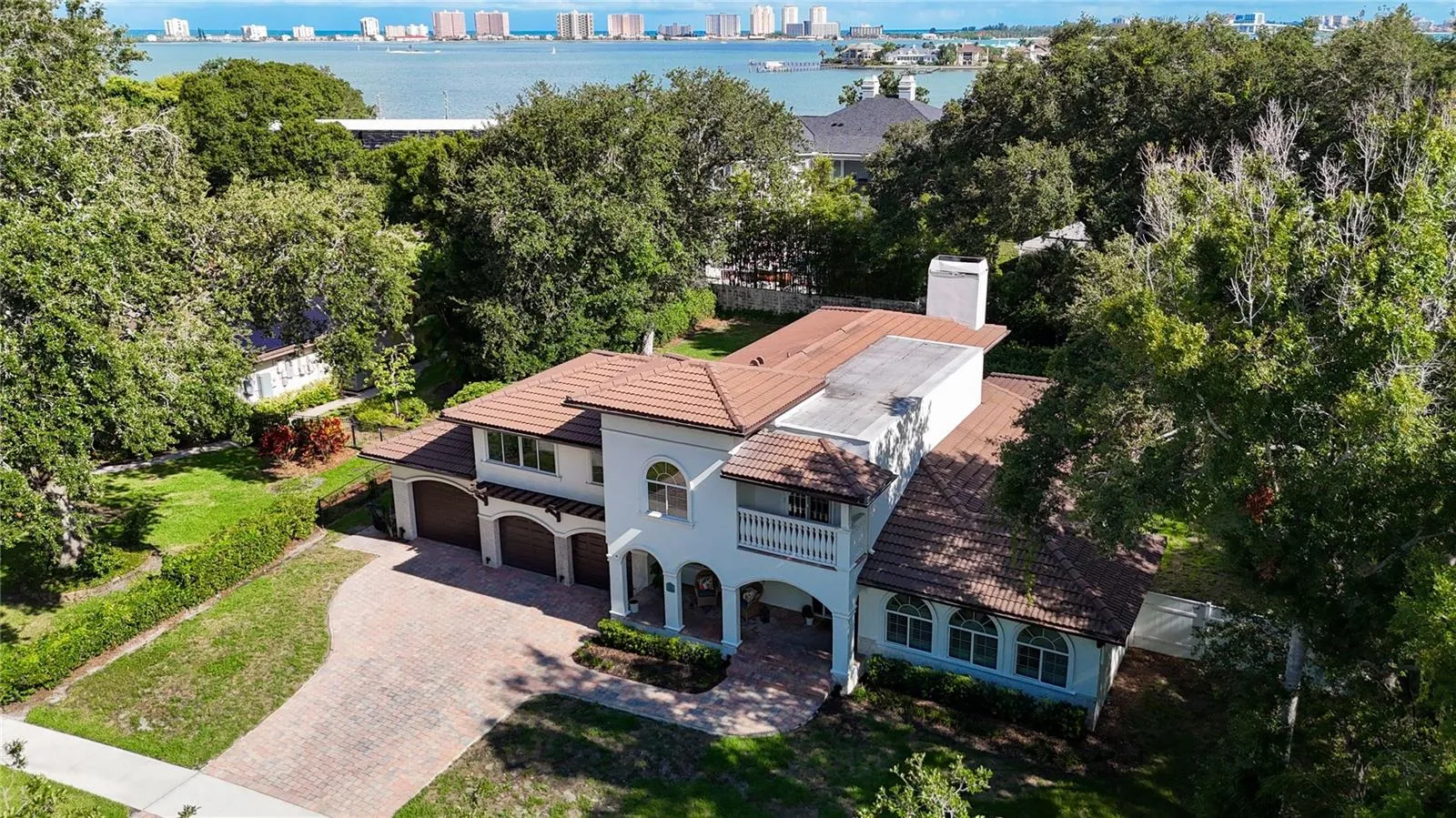 Located within the Belleair Estates neighborhood of Belleair. This home has 5 bedrooms, 5 1/2 bathrooms, including a pool bath, and a 3 car garage on .41 acres. The home features fresh paint throughout, new tile flooring, updated vanities and fireplace. The family room and second floor master suite both feature a wood burning fireplace. The kitchen features granite countertops, double Thermador refrigerators, a Wolf gas range and oven, a Gaggenau steam oven, and a wet bar. The home also features front exterior landscape lighting, newly replaced pool light, new Nordic hot tub that is under warranty, a tankless gas water heater, water softener, and filtration system. The outdoor patio has a gas connection for entertaining or to connect a gas grill. The laundry room has a brand new washer and dryer. The downstairs master suite overlooking the backyard features a steam shower. The upstairs, accessible by two stairways, features four bedrooms including two suites with access to a balcony overlooking the pool area and one bedroom with access to a front balcony. There is ample room for hosting guests inside and out. If you desire or are in need of a sixth bedroom, the original second downstairs bedroom was used to add a soaking tub to the existing full bathroom and for additional walk-in closet and storage space. If you are looking for a garage to store a larger vehicle, the third garage space has a wifi connected Liftmaster smart Q garage door opener to operate the door from your phone and is long enough to store a full-size truck equipped with a long bed. An addition to the home was completed in 2003. A new tile roof was installed in 2009.