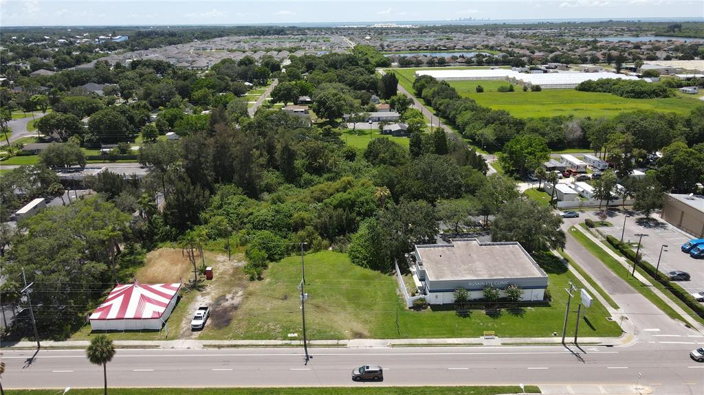 Hwy 41 lot folio no. 055767.0000 (104 ft Hwy 41 x 173 ft deep); north lot on 1st St folio no. 055777.0100 (124×193); south lot folio no. 05578.0000 (80 x 193 ft) – road frontage on 1st St is 204 ft per county. Total of 1.3169 acres per county. Zoning is Ruskin Town Center. Please verify with county what can be done with property. County water and sewer on Hwy 41. Prime location, easy access to I-75 and boat ramp at county park. Property formerly had a tire shop operating on property, which shared water and sewer with property to south. Shop was torn down and lot is now vacant. The two lots on 1st street are uncleared.
