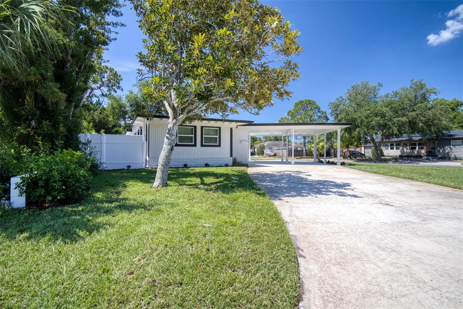 COMPLETELY REMODELED, SPLIT PLAN THREE BEDROOM AND TWO BATH WITH ACCESSORY DWELLING UNIT. EVERY SURFACE FRESH AND CLEAN. CARPORT FOR TWO AND AMPLE PARKING IN CIRCULAR DRIVE ON THE CORNER. THE NEW BEAUTIFUL KITCHEN WILL MAKE PREPARING MEALS A JOY. VAULTED CEILING FOR SENSE OF SPACIOUSNESS. LOTS OF NATURAL LIGHT. ACCESSORY DWELLIN UNIT WITH IT’S OWN AIR CONDITIONING. FENCED YARD AND LAWN CARE IS INCLUDED. THIS IS A NON SMOKING HOME. WASHER AND DRYER PROVIDED BUT NOT WARRANTED.