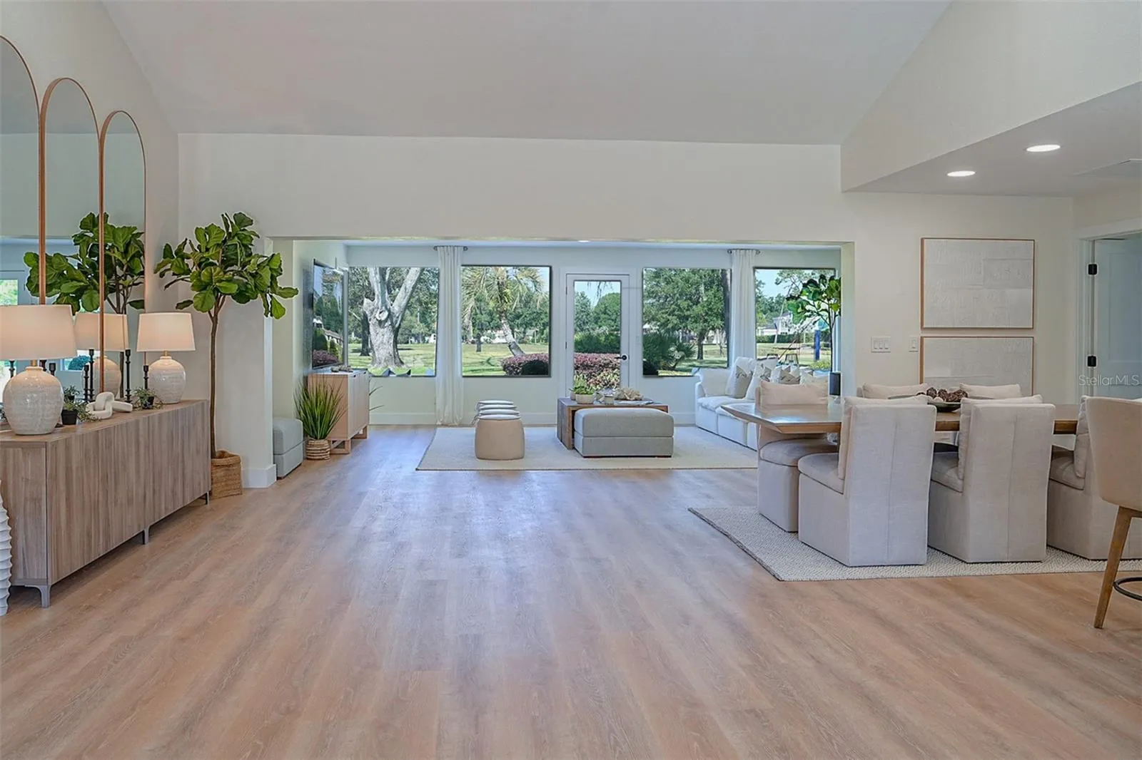 Welcome to your dream home, a luxurious sanctuary designed for ultimate functionality and unforgettable entertaining. Upon entering, you’ll be captivated by the expansive picture windows that frame stunning views of the Saddlebrook golf course, filling the open floor plan with an abundance of natural light. The soaring cathedral ceilings add to the grandeur, creating an inviting atmosphere perfect for gatherings.The gourmet kitchen is an entertainer’s paradise, featuring top-of-the-line KitchenAid appliances, a massive island, and ample space to host the largest of events. The thoughtful floor plan continues to impress with two spacious secondary bedrooms on the left side of the home, sharing a well-appointed guest bath with dual sinks. An additional room at the rear of the home, currently used as an office, offers a serene workspace with breathtaking views.The right side of the home boasts a luxurious master bedroom retreat, complete with a soaking tub, dual sinks, and a super shower that exudes opulence. The conveniently located laundry room, adjacent to the kitchen, includes a sink and abundant cabinetry. Through the laundry room, you’ll find a versatile mud room leading to a spacious three-car garage. For added privacy, there is a hallway off the laundry room that leads to another bedroom, full bathroom and private entrance to the outside which can be used in a variety of ways to suite you.Tucked away behind the garage, the private guest house features its own entrance, making it ideal for rental income or as in-law quarters. This self-contained unit includes a washer and dryer, kitchen, bedroom, and full bath, offering complete independence and comfort.Every inch of this home has been meticulously remodeled with the highest quality finishes, ensuring a luxurious living experience. Don’t miss this opportunity to own a unique home where elegance meets functionality in a breathtaking community that is like no other.