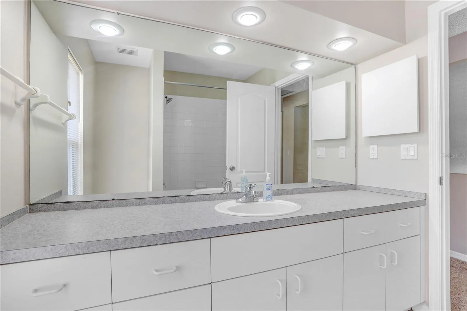 - Ceiling Fans(s), Open Floorplan, Thermostat, Eat-in Kitchen, Primary Bedroom Main Floor, Window Treatments, High Ceilings, Solid Wood Cabinets, Solid Surface Counters