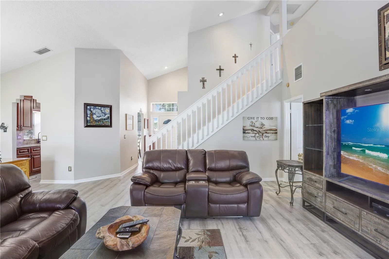 **Price Improvement!** Experience the allure of your own Florida paradise with this beautiful one owner home situated on a HUGE nearly 1/4 acre corner lot! This 3 bedroom, 2.5 bathroom, 2 car garage home with loft has NO CDD and offers unparalleled tranquility on a serene cul-de-sac, just moments away from the esteemed Buckhorn Springs Golf & Country Club in the heart of Valrico. With its tremendous curb appeal, this gem has been well maintained and captivates with its tasteful updates, welcoming you with its tidy landscaping and long pavered driveway and walkway. Leave the cookie cutter homes behind as this is unique home is the ONLY one of its kind with this floorplan that you’ll find in all of Buckhorn! A BRAND NEW ROOF was just installed (2024), ensuring peace of mind for years to come. As you step into the residence, you’ll notice the foyer with soaring vaulted ceilings that open up to the second floor. Beautiful & modern new wood look flooring is featured throughout all of the living areas & the Primary Bedroom, for ease of maintenance. The large living room showcases a beautiful wood burning fireplace and opens to the second floor, adding to this room’s expansive and light & airy feel. Adjacent to the living room is the formal dining room, currently being used as a home office. Your upgraded kitchen includes gorgeous soft-close cherry wood cabinets, both over & under cabinet lighting, decorative tile backsplash, granite counters, stainless LG appliances including range with double oven, dedicated pantry, and nook that provides an additional seating area. Newer sliders with convenient built-in blinds just off the dining room lead you to what will quickly become your new FAVORITE place to spend your time…your covered lanai and huge backyard. The backyard has recently been fully fenced for privacy, and you will be the envy of the block serving up the most delicious guacamole at all of your gatherings, made with fresh avocados picked from your very own Hass avocado tree! Back inside, just off the living room is your spacious first floor Primary Suite, complete with walk-in closet and sliders that lead to the backyard. The en-suite Primary Bath includes two extended vanities each with its own sink, walk-in shower with glass enclosure and double shower heads, soaking garden tub, and water closet. Upstairs, you’ll find two ample sized secondary bedrooms, a full bathroom with extended vanity, and a spacious loft with a half wall that overlooks the gathering room – making this an ideal bonus space with endless options for use…will you make it your game room? Exercise room? Home theatre? Home office? Convert it to a spacious 4th bedroom? The sky’s the limit! Back on the first floor of the home, you’ll find the laundry room and a convenient & updated half bath for guests. Other upgrades to the home include NEARLY NEW A/C (2021); BRAND NEW ceiling fans with remotes & LED lights in secondary bedrooms & loft; storage shed in backyard; rain gutters; irrigation system; low maintenance rubber mulch in landscaping beds, & more. Zoned for highly regarded Buckhorn Elementary, Mulrennan Middle & Durant High School, this home offers an exceptional lifestyle in an unbeatable location. Primely situated in Buckhorn with a low/optional HOA fee, enjoy easy access to Bloomingdale Ave & State Rd 60, with an array of dining, shopping, and recreational options nearby.