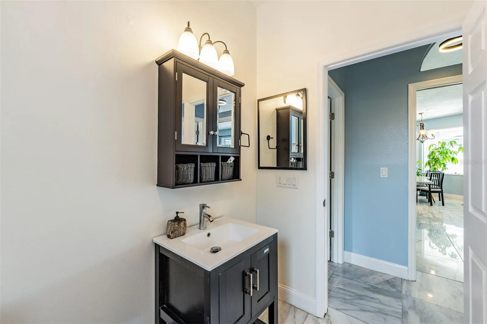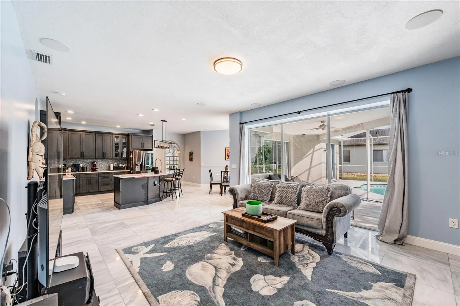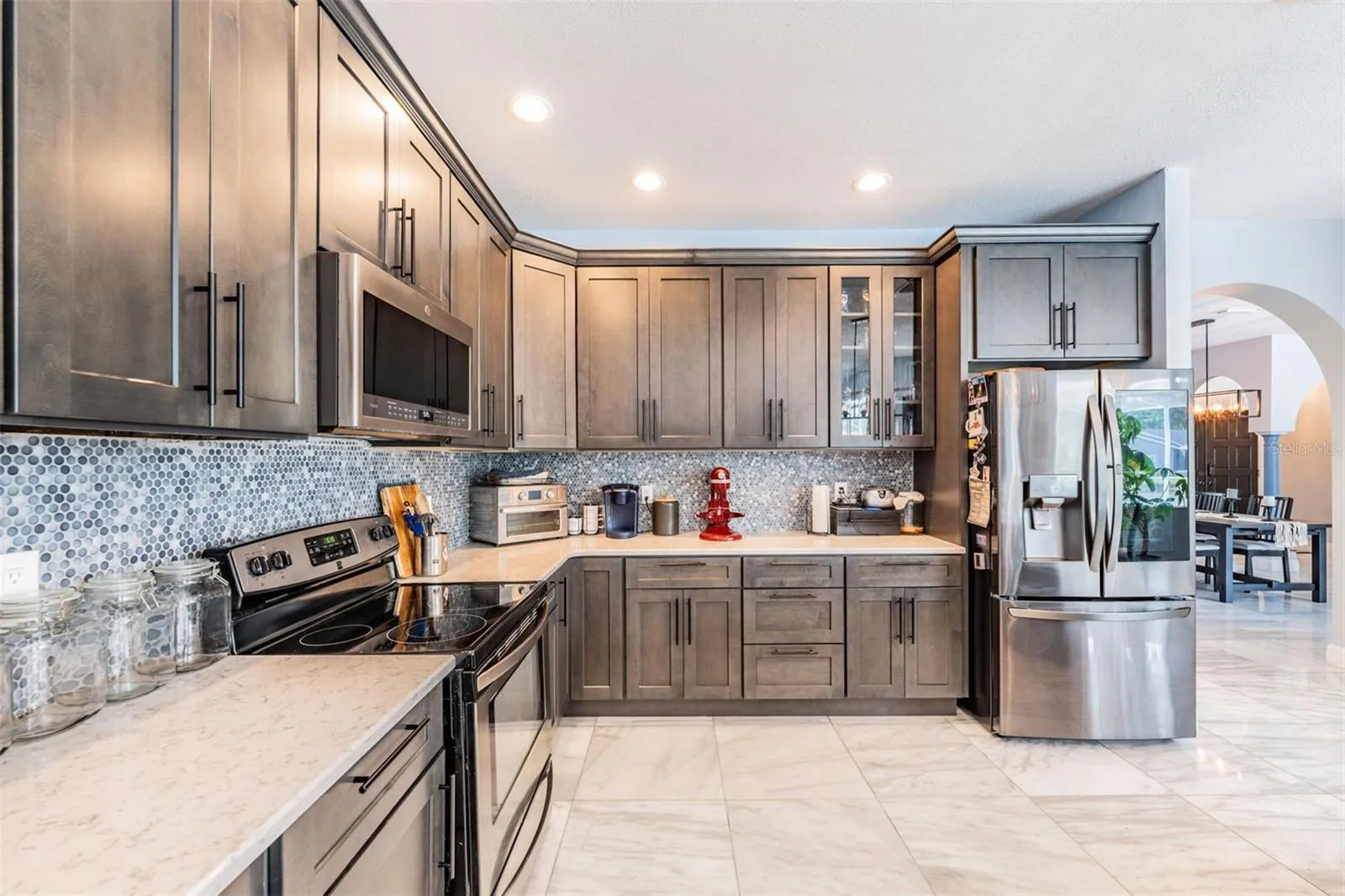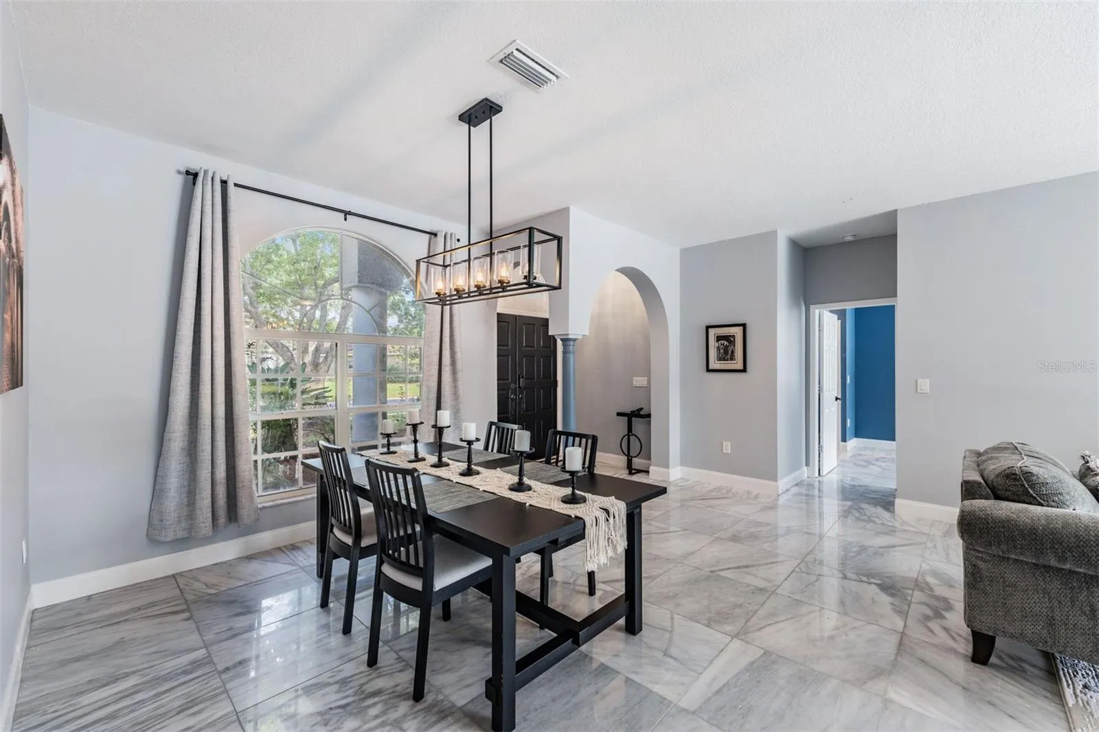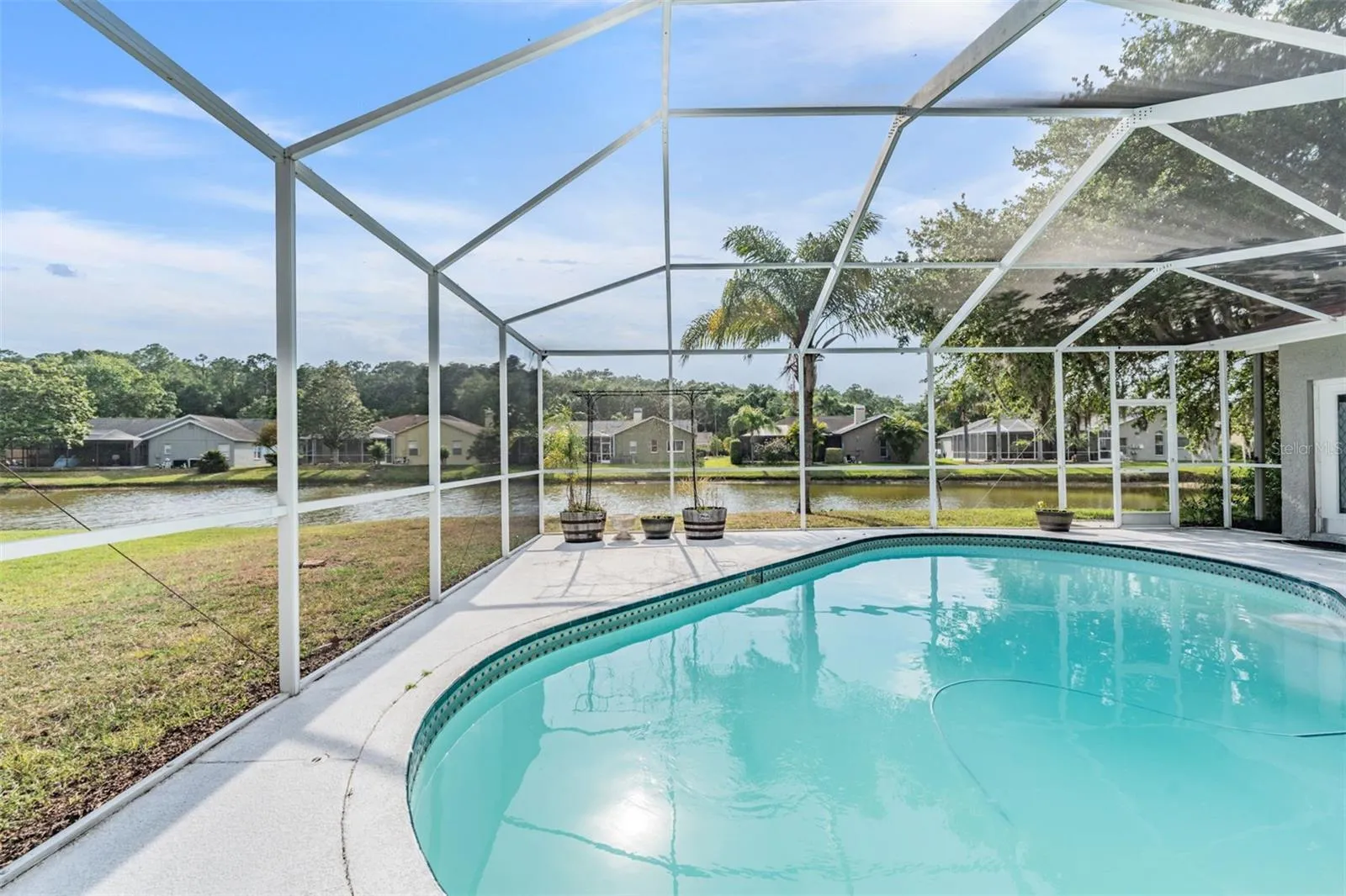 Welcome to sought-after Ridgemoor of Palm Harbor, Florida. Where tranquility meets luxury! Step into this fabulous move-in ready home, over 2,500 sq ft of living space featuring Carrara marble floors throughout. Updated vanities, mirrors, and new interior doors. This home boasts a new smart fridge (2022), washer and dryer (2020), solid wood cabinets, and quartz countertops (2020), complemented by smart wall switches and updated bathroom fixtures. Enjoy peaceful pond views from this 4-bedroom, 3-bathroom, 3-car garage pool home. The double door entry leads into a spacious formal living and dining room with beautiful quartz countertops in the kitchen. Stainless steel appliances, a glass top range, breakfast bar, and pantry with a breakfast nook. The highly functional 3-way split floor plan features soaring vaulted ceilings, creating a light and bright atmosphere. Gather in the family room with a wood-burning fireplace and slide open the doors to the lanai with a sparkling pool and incredible pond views. Retreat to the master suite with a walk-in closet and an updated master bath offering dual sinks, quartz countertops, new fixtures, and a garden tub. Additional features include; 3 bedrooms with an updated adjacent quartz bath, a separate spacious laundry room, and various community amenities. The HOA fee totals to $115 per month, covering Ridgemoor Master Association Fee ($70) and Windemere Community Fee ($45). Don’t miss the opportunity to call this meticulously updated home yours! Schedule your showing today and experience the best of Ridgemoor living.