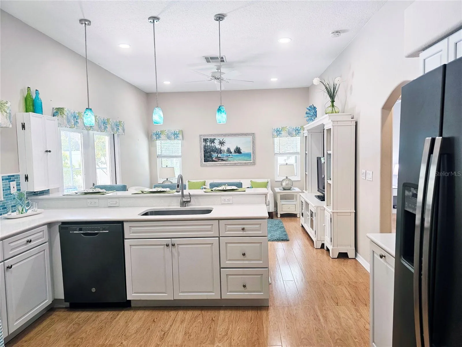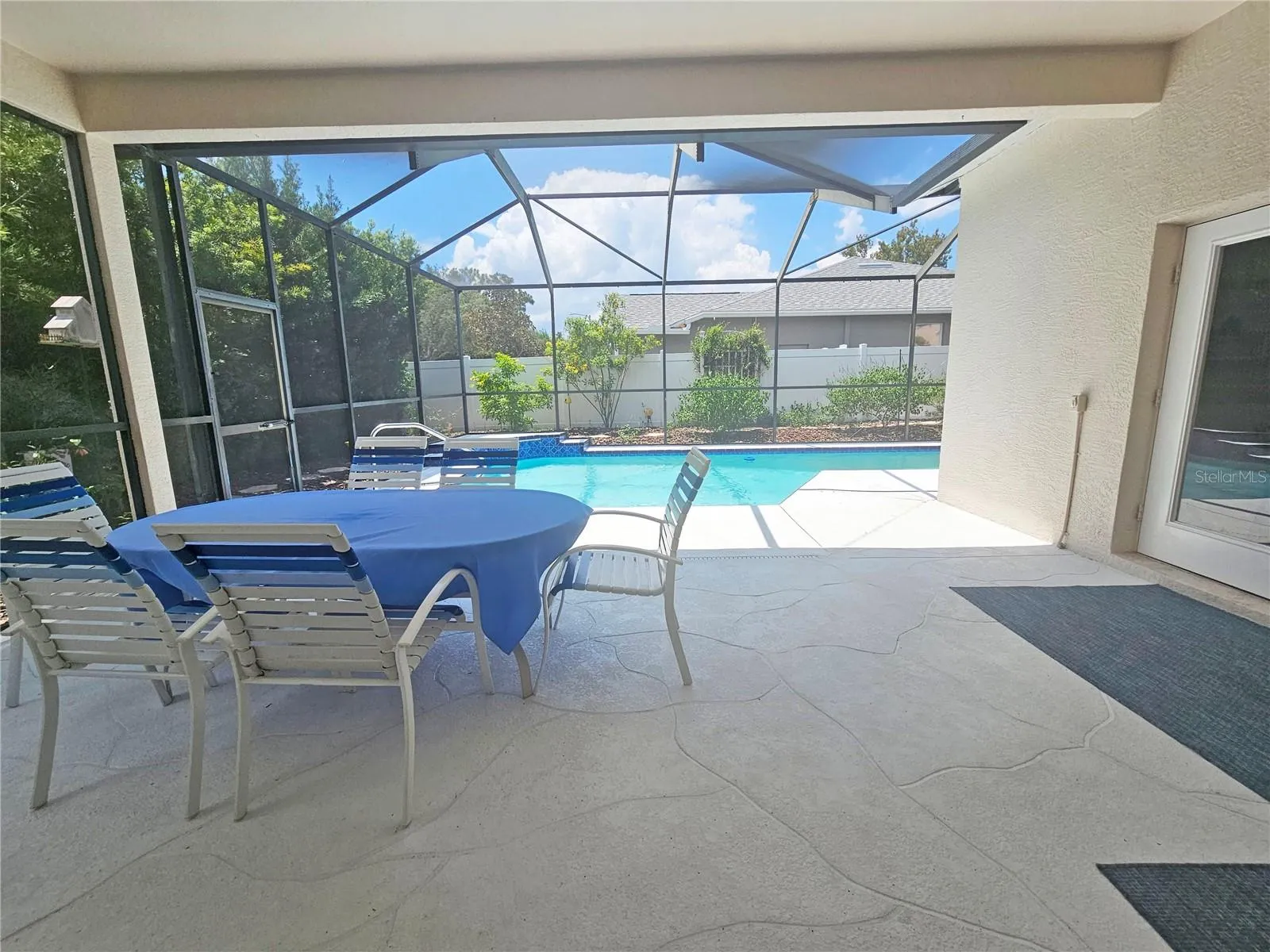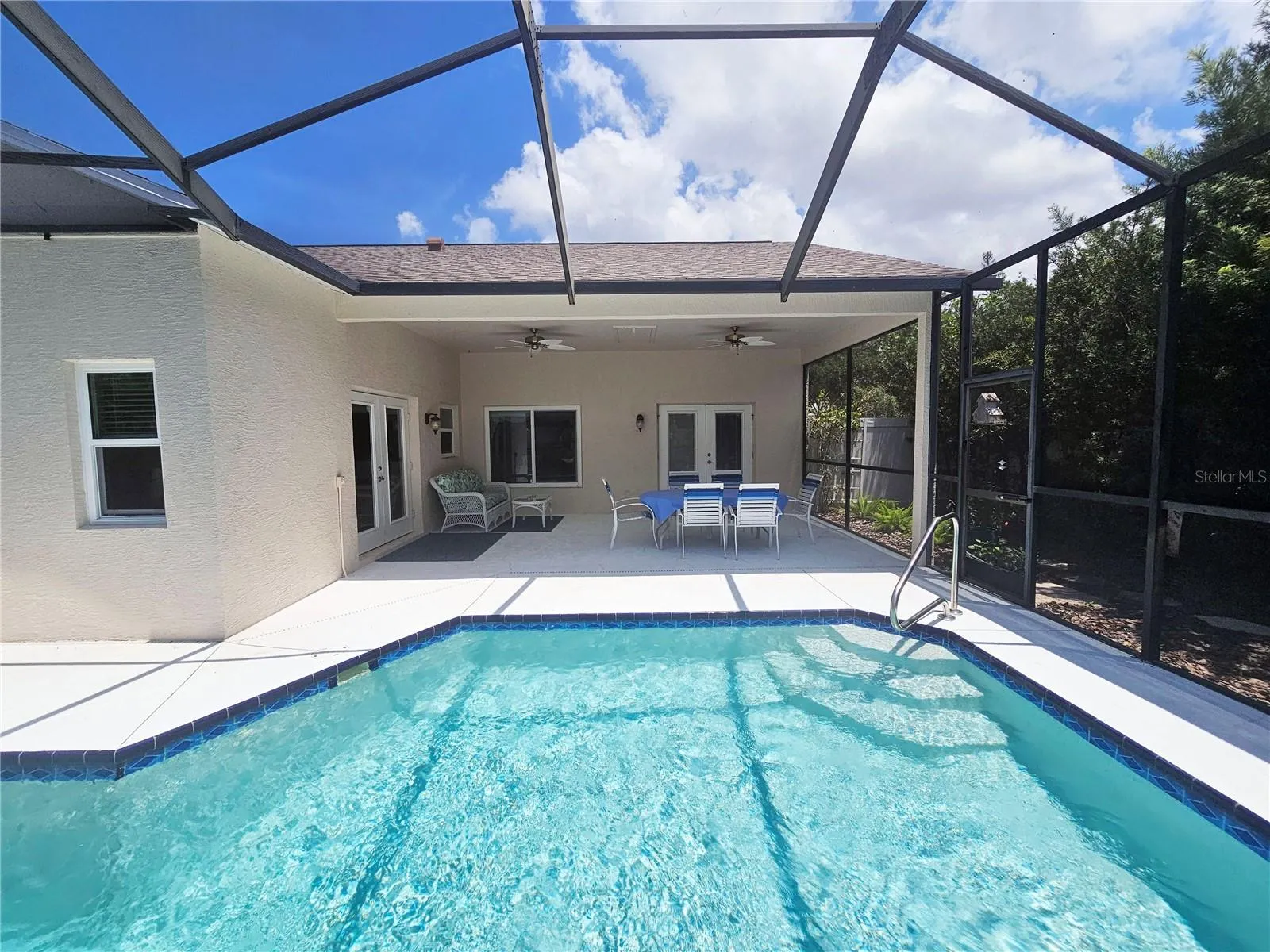 Come check out this Super Nice, Immaculate, Updated & Energy Efficient Pool Home. Move-in-Ready 3 Bedroom, 2 Bath, 2 Car Garage w/Screened-in Pool/Lanai & Fully Fenced-in Yard w/Butterfly Garden. Great open layout, split Floor Plan, very light & bright w/continuous flooring throughout. Spacious Dining/Livingroom combo w/views of not only the lanai & pool area, but as you look out your front window you will notice the beautiful wooded views overlooking the community common area directly across the street. Your Primary Bedroom has Dble French doors that open out to lanai, Primary Bath has updated vanity w/tons of drawers, elegant quartz counters & walk-in closet. Interior Laundry Room w/storage shelving & built-in cabinet. Completely Updated Kitchen & Family room in 2020 includes Kraftmaid (Soft Close) Cabinetry, Quartz Counters, Slate GE Appliances, Large Single Basin SS Kitchen Sink, Pendant Lighting, LED Recessed Lights, & Modern Backsplash. Breakfast bar adding extra counter space & seating. Bedroom 2 & 3 & 2nd Bath off Kitchen/Family Room Area. Family Room w/Dble French Doors that lead you out to the HUGE Under-Roof Lanai Area (21 x 14) giving you more than enough space for all your entertaining needs. Lanai & Pool screened-in w/2 screened door exits. Yard is completely fenced-in w/Vinyl fencing. Xeriscape Style Lawn; No mowing, Less watering, Less Chemicals, Less Labor. UPDATES: (2024) – NEW ROOF, NEW HVAC, Pool Filter & Pool Acid Washed. (2023) – Exterior Painted, New Irrigation Timer. (2022) – New Lanai Screening & Water Heater. (2020) – NEW Impact/Hurricane WINDOWS throughout, New Front Door & Exterior Screen/Glass Door, Completely UPDATED KITCHEN & GE APPLIANCES, NEW Pergo (Outlast) FLOORING throughout home, Interior Painted, New Primary Bath Cabinetry & Quartz Countertop & 2nd Bath Granite Countertop. Excellent opportunity to live in the desirable Cypress Park of Tarpon Springs community w/low HOA’s & No CDD’s. Close to Pinellas Beaches & Downtown Tarpon Springs w/all its Charm & Waterfront Restaurants & Shops, but far enough away to be located in a NON FLOOD ZONE! Furniture can convey, if buyer has interest.