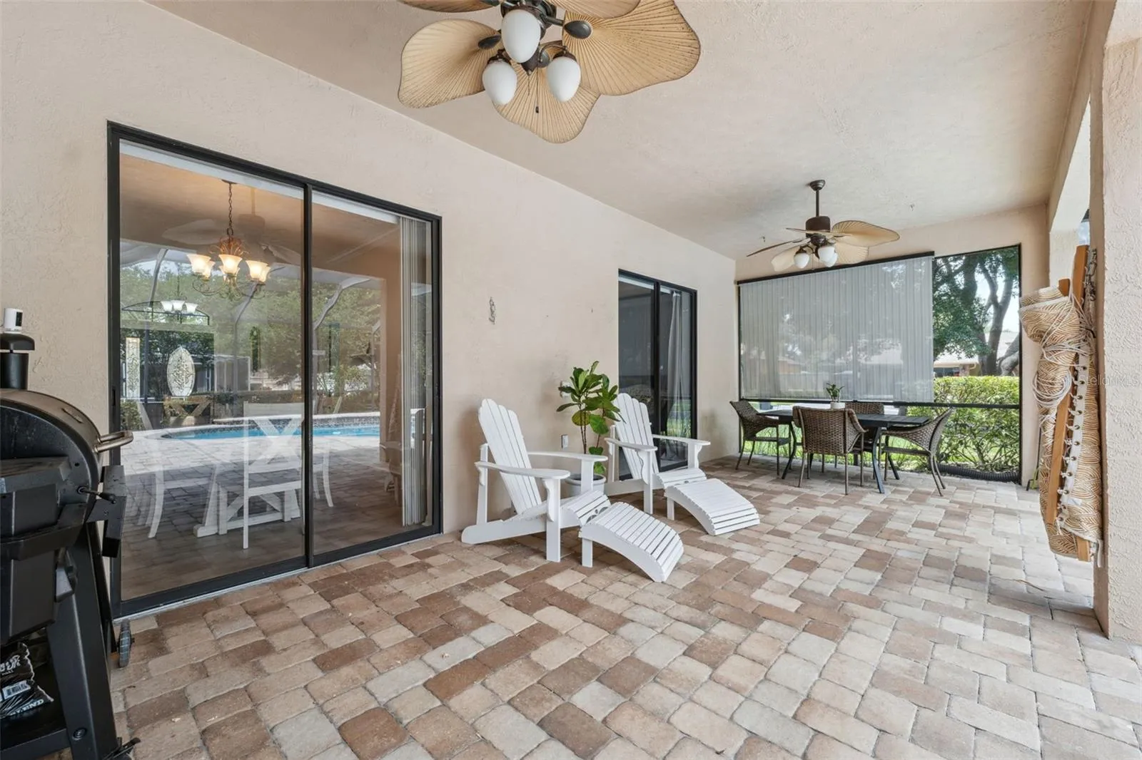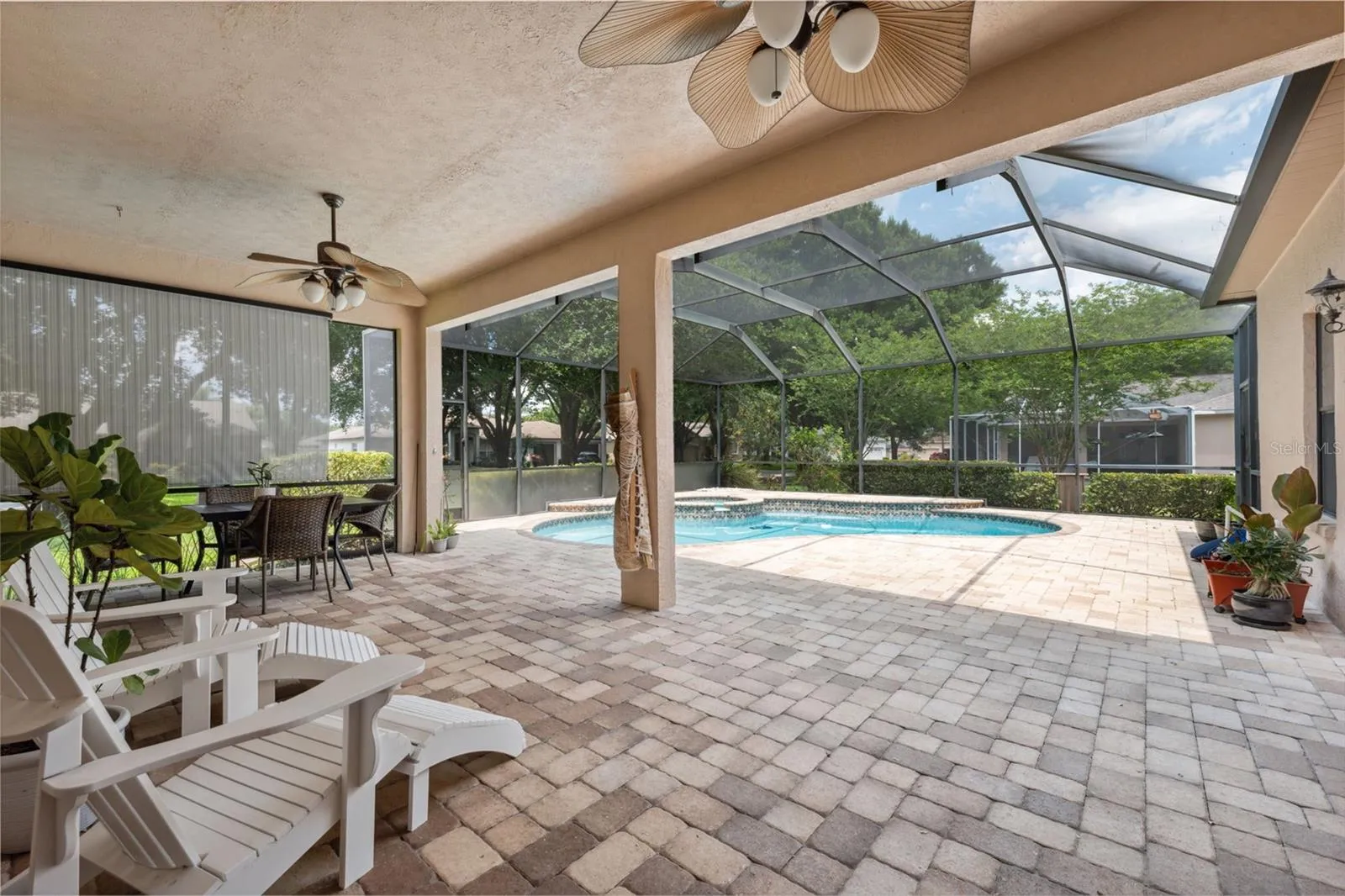 Spacious one level home with 4 bedroom, 2 bath, oversized 3 car garage, fireplace, and pool/spa in quiet Bent Leaf Estates. Beautiful eat in kitchen with nook showcasing granite countertops, tiled backsplash, stainless steel appliances, and updated LED light fixtures throughout various parts of the home. Separate formal dining room that opens up to the living room. Enjoy cozy nights in the family room with a wood burning fireplace. Master bedroom includes his/her walk-in closets, and slider doors which open to a lanai screened oversized pool/spa that is solar heated. Mature trees with inviting picturesque views.