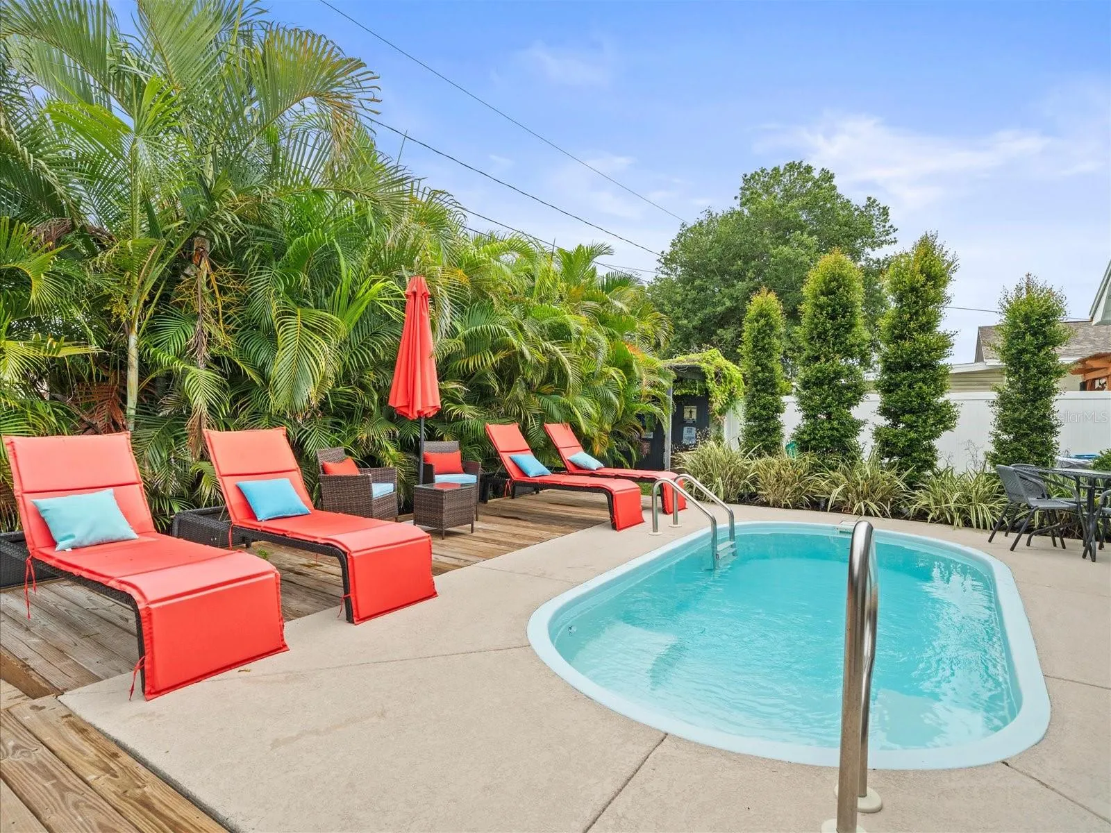 Experience the best of Florida living in the tropically landscaped yard, complete with a saltwater pool (installed in 2021), a freestanding hot tub, and a custom tiki bar. The home also boasts a newer A/C system (installed 2020), stainless steel appliances, high-end quartz countertops, and a large, open-concept layout. Additional blown insulation and an attic fan help make this home very energy efficient.
