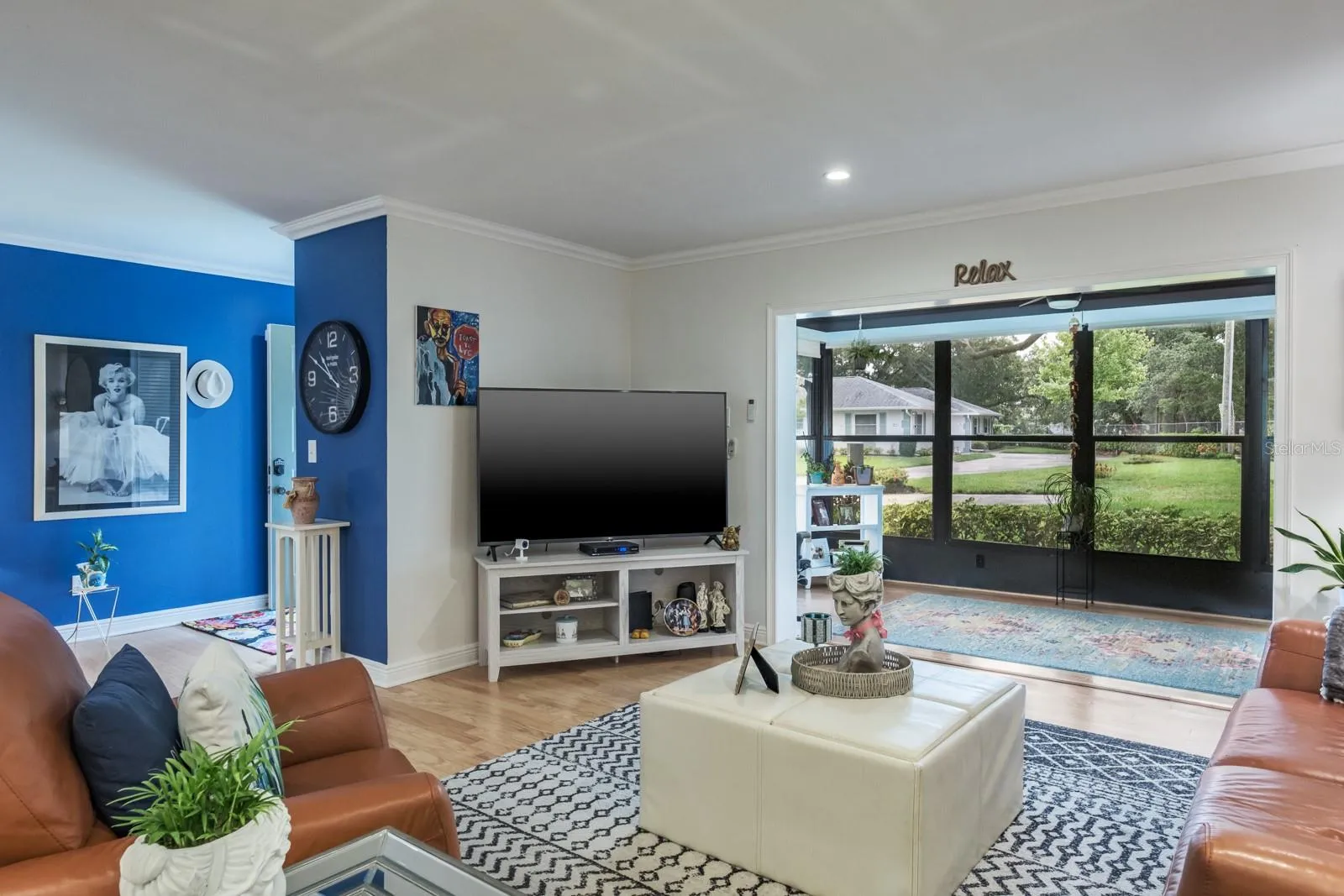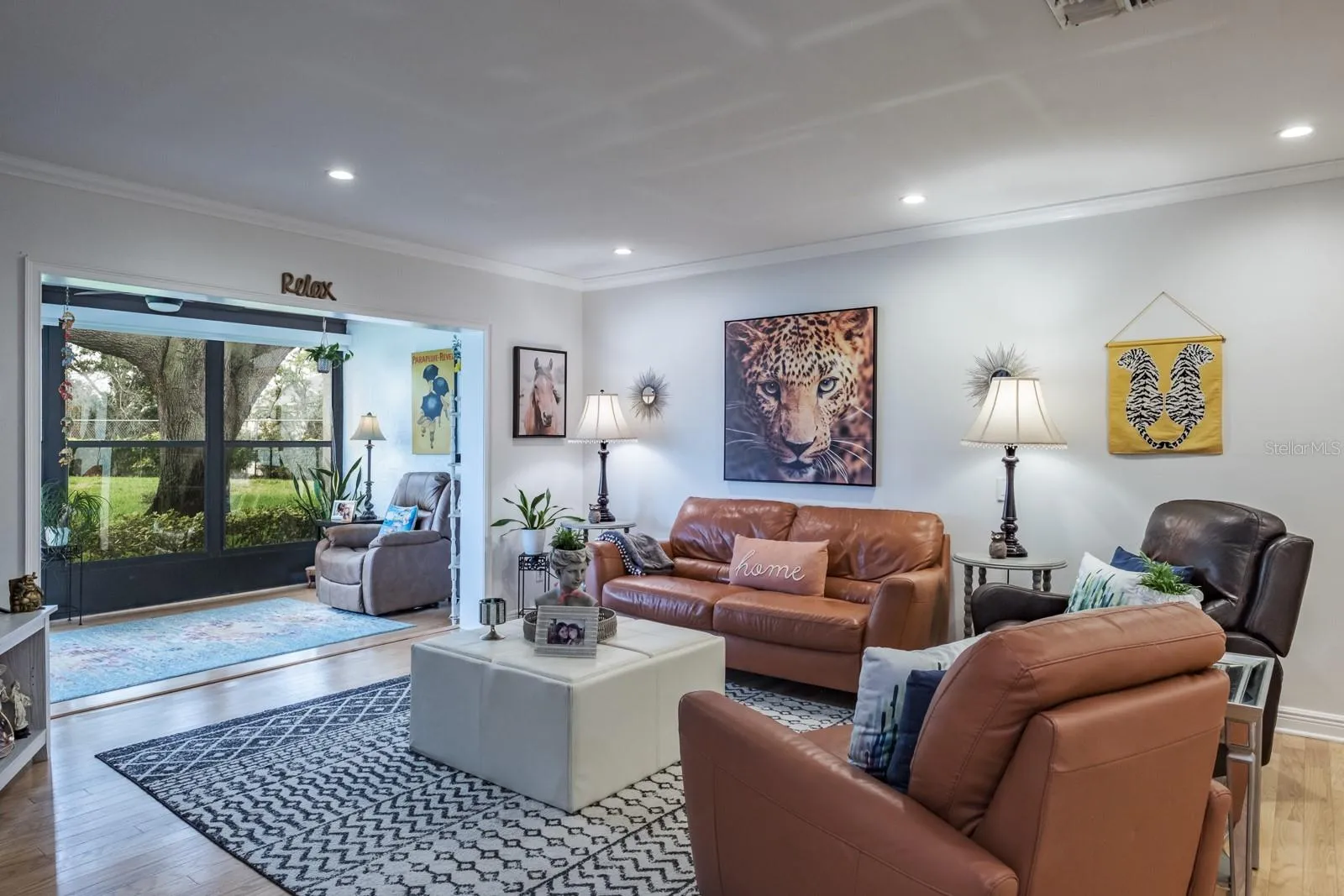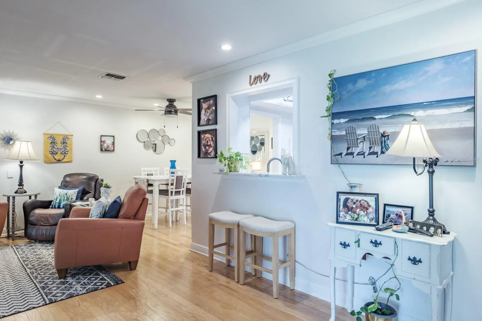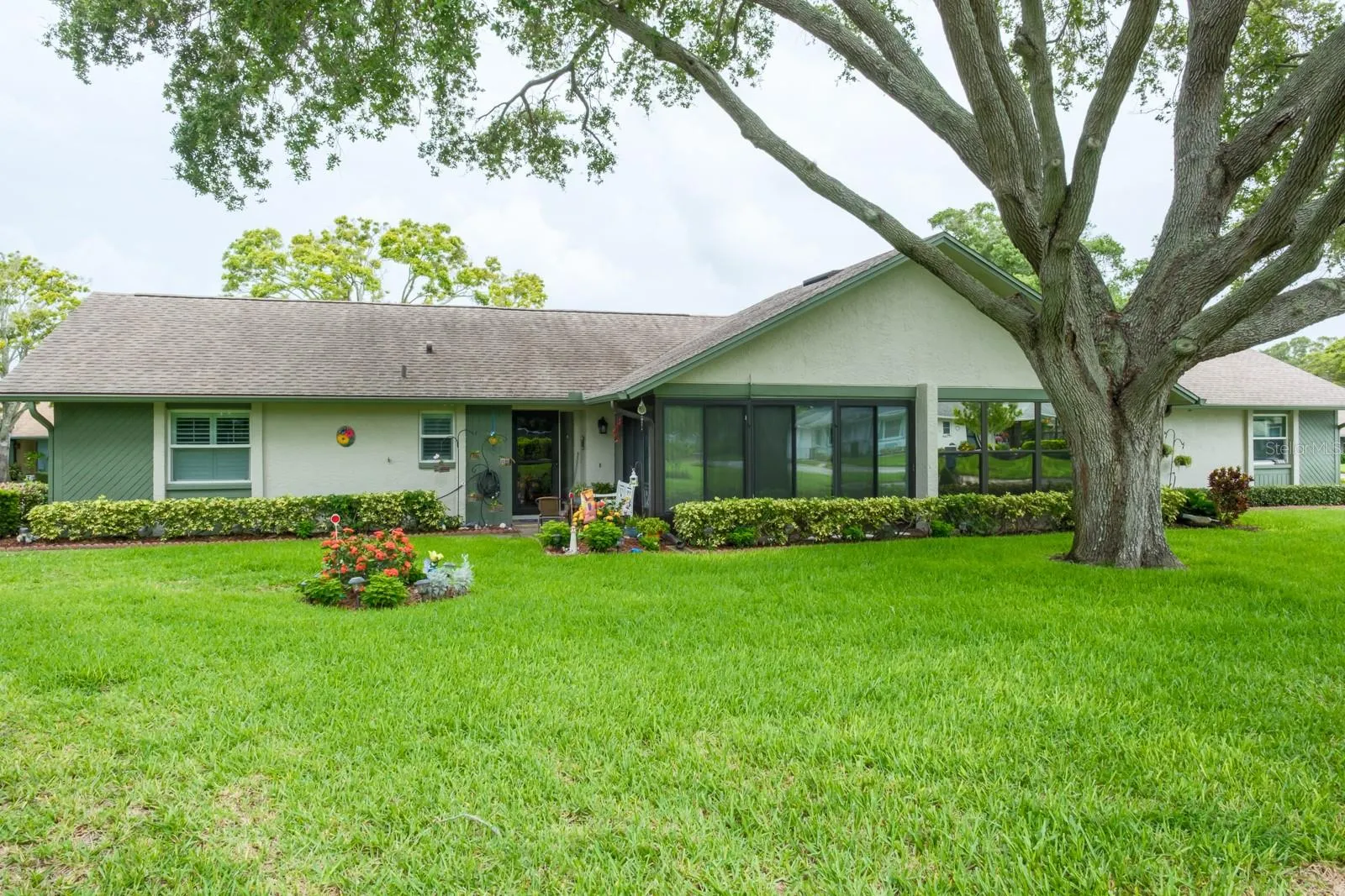 Location, Location, Location!!! Fabulous Dunedin… be prepared to be impressed!!! Pride of ownership abounds in this immaculate, updated, move-in-ready one-story villa that offers over 1,100 sq ft of living space with 2 bedrooms, 2 bathrooms and 1 car garage. Enter through the beautifully landscaped front patio to the main living space offering an open floor plan with living and dining areas ideal for entertaining and family gatherings. The space features wood flooring, crown molding and recessed lighting. The kitchen is a showstopper and culinary dream, quartz counters with grey and white wood cabinetry boasting pull-out butler drawers, lazy Suzanne and a cabinet pantry with butler drawers, tile backsplash, upgraded hardware, SS appliances including 4 door refrigerator, ceran top range, dishwasher, built-in microwave, dual undermount SS sinks all accented with upgraded designer and recessed lighting. This home offers a generous bonus with an enclosed, air-conditioned Florida Room with an abundance of natural light. Family and entertaining space is extended in this private, tranquil setting overlooking lush landscaping. Both bedrooms are located on the opposite side of the home with spacious primary bedroom offering wood flooring, crown molding, large walk-in closet and ensuite with designer vanity, undermount sink and full walk-in shower. The secondary bedroom provides wood flooring, crown molding and a generous wall closet. The conveniently located hall bath provides a single designer vanity with tub/shower combination. Additional updates include Water Heater (2023), AC (2017), Newer Electrical Panel, Newer Windows, Roof 2014, Garage Door (2021). This is truly a retirement paradise with maintenance free living in the sought after community of Scotsdale just minutes from charming downtown Dunedin and its fabulous vibe for shopping, restaurants, festivals, entertainment and parks. Near to medical and of course, the magnificent Gulf beaches are moments away! HOA fee includes community pools, tennis/pickleball courts, exterior and grounds maintenance, trash, water, cable TV and internet. True carefree Florida living!