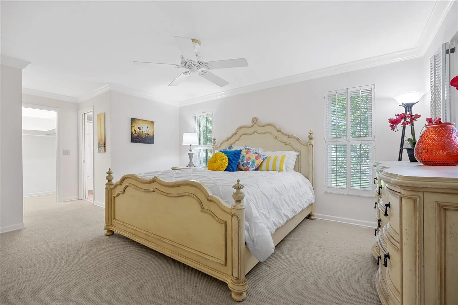 - Ceiling Fans(s), Crown Molding, Open Floorplan, Walk-In Closet(s), Primary Bedroom Main Floor, Split Bedroom, Stone Counters, Built-in Features, L Dining