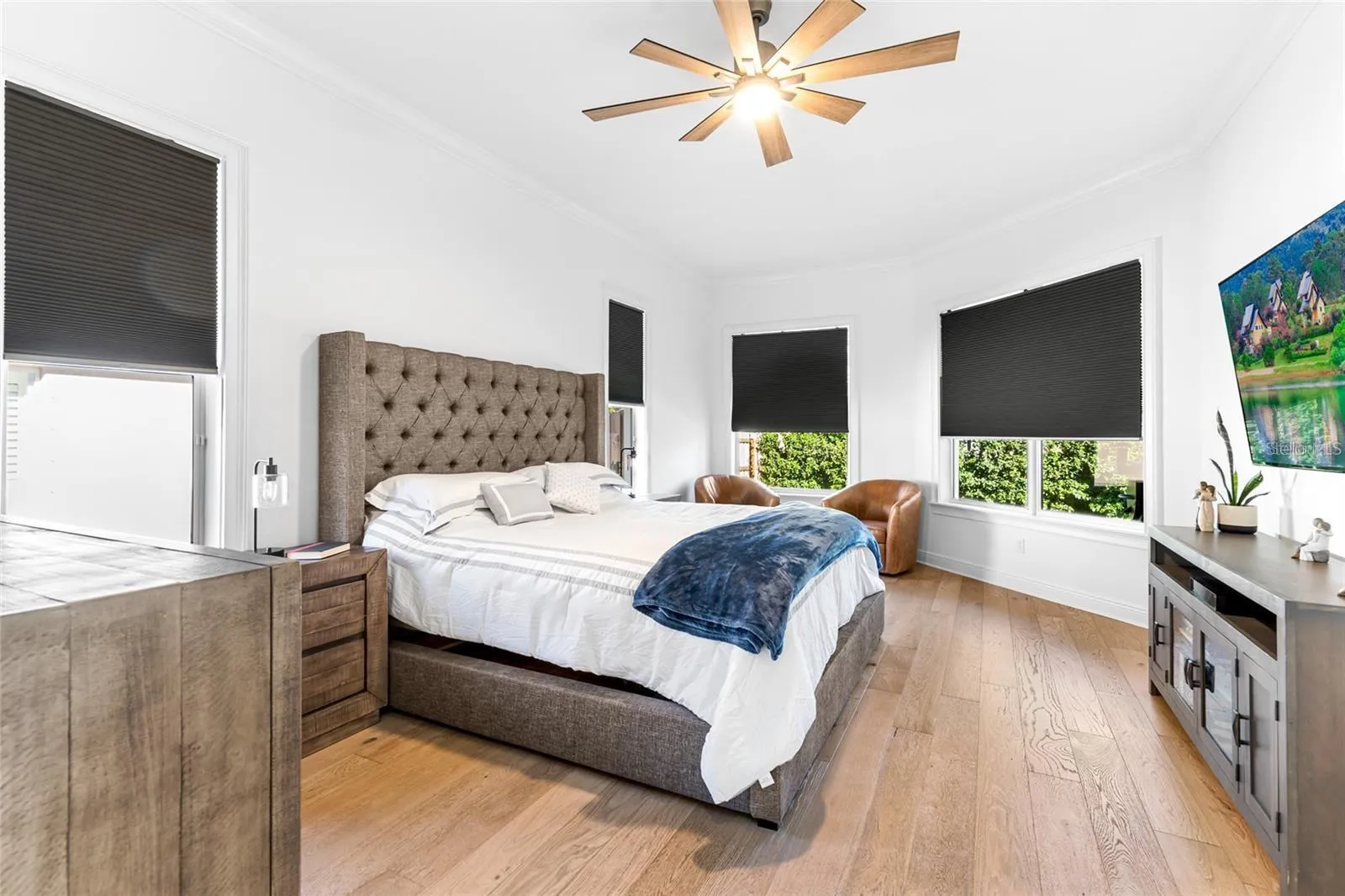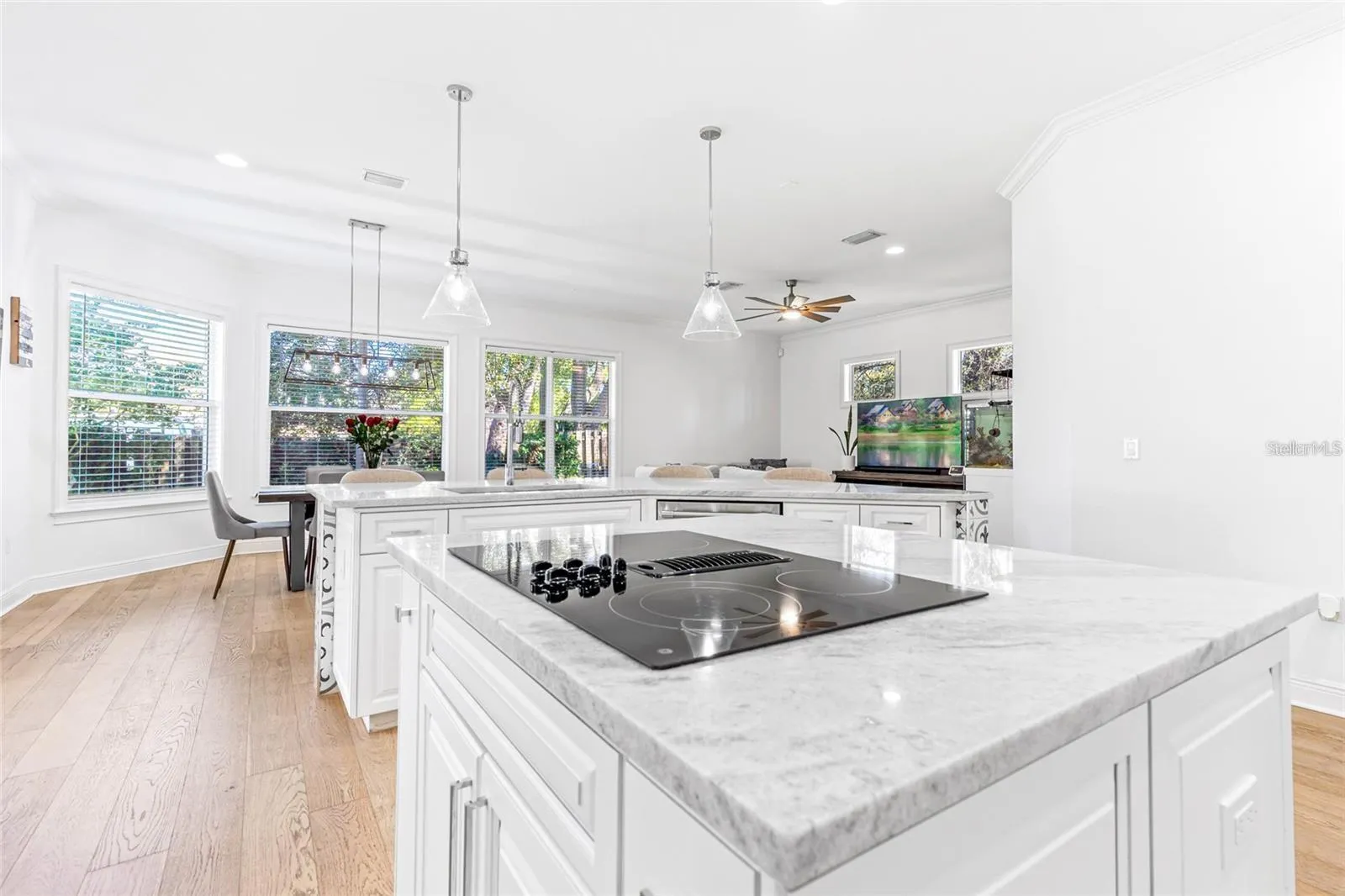 - Ceiling Fans(s), Crown Molding, Open Floorplan, Walk-In Closet(s), Eat-in Kitchen, Kitchen/Family Room Combo, Split Bedroom, High Ceilings, Stone Counters, Solid Wood Cabinets, Tray Ceiling(s)