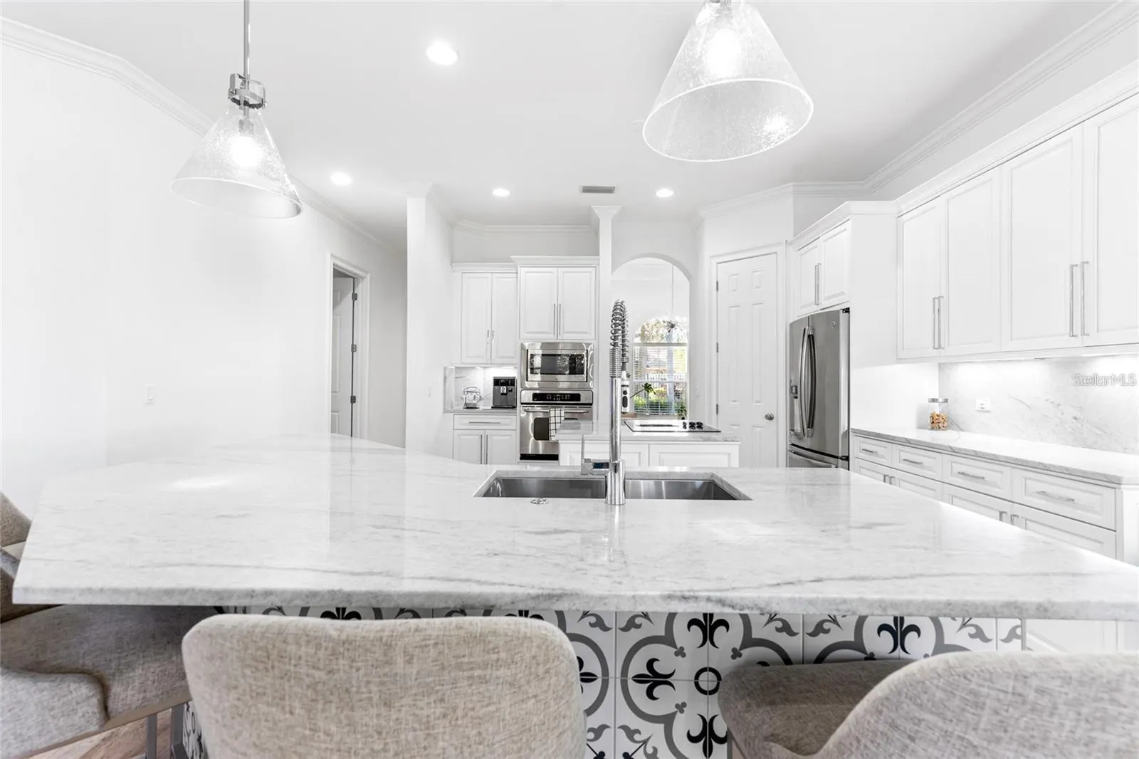 Situated on a large corner lot, this Professionally remodeled home offers 4 BEDROOMS and 3 BATHS home in the sought-after, Gated Community of Carroll Landing. No expense was spared in this Move In Ready, professionally remodeled home. Step inside the grand leaded glass double doors in the large foyer and be welcomed by an impeccably finished, spacious floor plan, featuring separate Formal Living & Dining rooms with soaring 12-foot ceilings and French doors. Sought after split bedroom plan and a large Kitchen that opens to the Family room. The gourmet new Kitchen features a large cooking island, built-in oven, and GE Stainless steel appliances. 42-inch cabinets with molding and under cabinet lighting, MARBLE countertops Backsplash, a walk-in pantry, a breakfast bar, and a separate dinette area open to the family room. Luxury finishes in this well-appointed layout that boasts over 2900 sqft of living area designed to meet the needs of any lifestyle. Several updates throughout including AC (2021), FENCE, WATER HEATER 2022, WATER SOFTENER 2021, PAINT & all NEW INTERIOR!! Additional highlights and upgrades include New Flooring, Updated Kitchen, New baths, Crown molding, Upgraded baseboards, all new fixtures, French doors, arched doorways, new Interior and exterior paint, newer Washer & Dryer, TUFF Shed (2021). Built-in closet organizers in all closets. . Serene views of the private fenced backyard throughout. The large Master suite has wood floors, two huge walk-in closets with built-in closet organizers, plus an additional linen closet. The ensuite luxurious master bath has a garden tub, a large walk-in shower, dual sinks, and granite countertops. Two bedrooms in a separate wing of the home share a beautifully appointed Jack-n-Jill Bath. Bedroom 4 is conveniently located on the other side with the second bathroom and is currently being used as an Office. Step outside to the covered lanai and take in the beautiful view of the large backyard, perfect for entertaining and relaxation. This home also features an oversized side entry garage has epoxied floors and has been freshly painted inside and out. Nestled in a prime location, this neighborhood offers a private and serene living experience with proximity to everything the city has to offer. The neighborhood is known for its stunning landscaping, lush greenery, and beautiful tree-lined streets. Residents enjoy access to a variety of community amenities, including a koi pond and picnic area. Low HOA fees. The neighborhood is conveniently located near some of the area’s best shopping, dining, and entertainment options. Just a short drive away from Westfield Citrus Park Mall, Tampa Premium Outlets, or International Plaza and Bay Street. Top-rated schools, including Sickles High School, are also located just minutes from the neighborhood and a short 10-minute drive to USF. Outdoor enthusiasts will appreciate the many parks and nature preserves in the area, including Upper Tampa Bay Park and Brooker Creek Preserve. Located close to Veterans Expressway with easy access to Tampa International Airport, downtown Tampa, & Clearwater Beach.