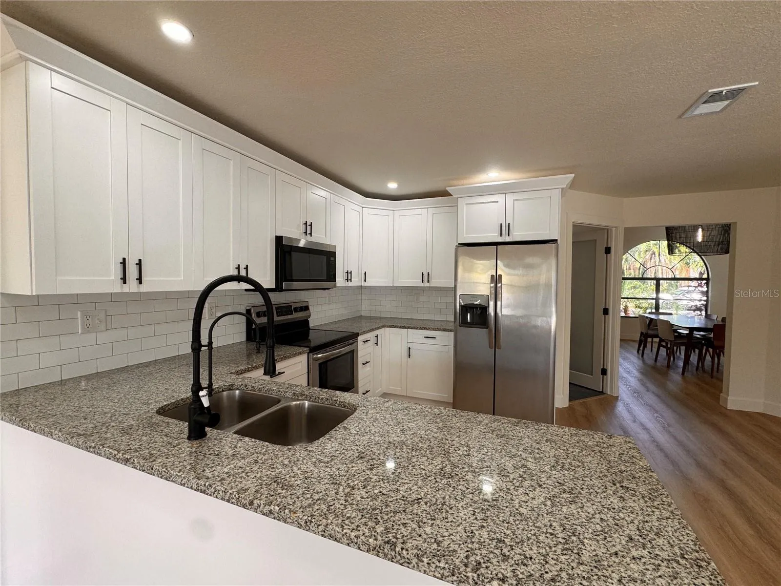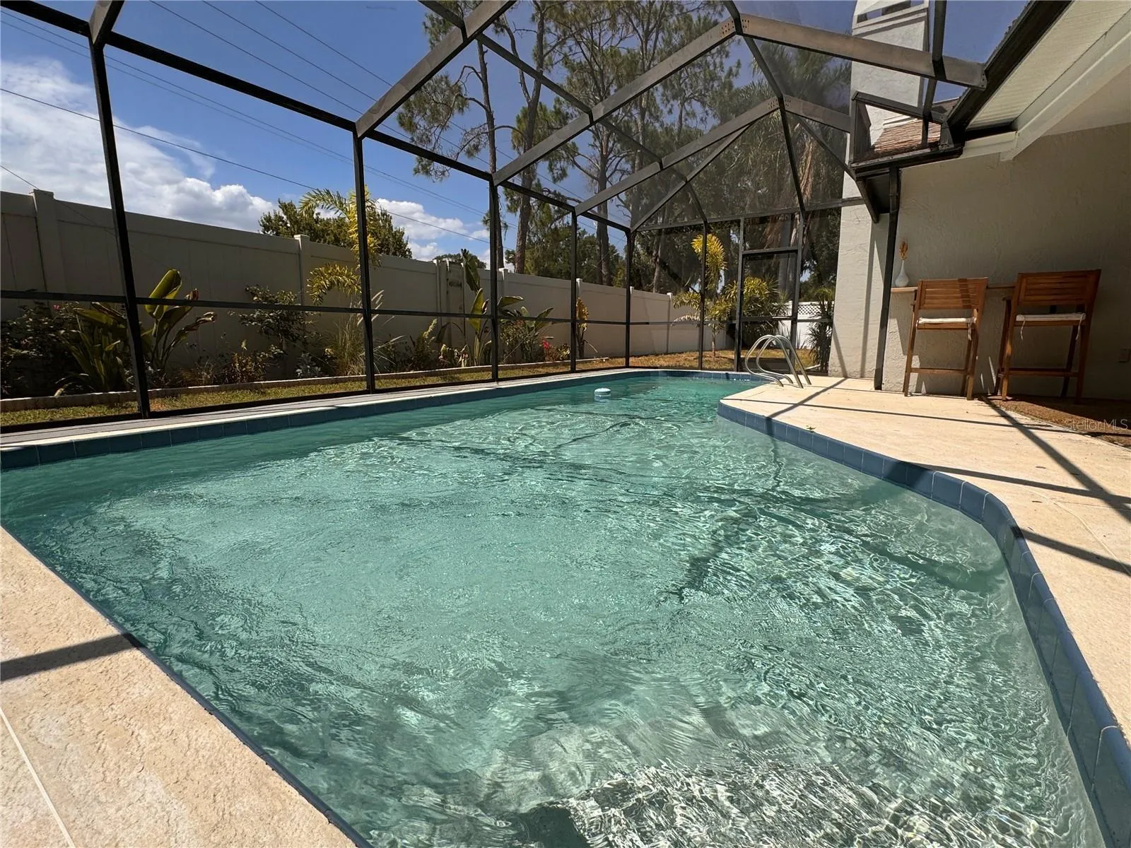 Welcome to this STUNNING 3 Bedroom 2 Bath POOL Home in the highly desired Sterling Ranch! Nestled on a peaceful cul-de-sac lined with majestic oaks and tropical palms, this UPDATED home blends contemporary elegance with relaxing coastal vibes that makes every day feel like a STAYCATION! From the moment you arrive, you’ll notice the METICULOUS care of the property from the manicured lawn and gardens, freshly stained and sealed 6′ Cedar-tone privacy fence to the DRAMATIC walkway and entrance. The Foyer is welcoming, features a coat closet and leads you to the formal Living and Dining Rooms with dark gray steel DOME light and SLIDERS to the Pool. To the left is the Primary Suite with modern fan, sliding doors to Pool area, large Walk In Closet with IKEA Organizers, and LUXURIOUS Bathroom with Dual Sinks, CARRARA MARBLE TILED Shower with niche, and separate water closet. The Kitchen is well appointed featuring GRANITE COUNTERS, NEW FAUCET, Tile Backsplash, Stainless Appliances including Jennair dishwasher and UPGRADED CABINETRY with dove-tail design, soft close doors and drawers, pull out trash can and lazy susan. Your Breakfast Nook is spacious and flows nicely between the Kitchen and GREAT ROOM, with Vaulted Ceilings, recessed and spot lighting, Sliders to Pool and the FABULOUS Wood Burning Fireplace with Brick Front & Hearth and NEW Wood Mantle! Your guests will enjoy comfort and privacy as both guest bedrooms have modern ceiling fans and NEW closet organizers, and share a full bathroom with new vanity, mirror, fixtures and Tub / Shower combo with tile surround and shampoo niche. It also has an exterior door for access to the pool and backyard. The spacious LAUNDRY Room features NEW 42″ Upper cabinets, washer / dryer, storage nook and access to 2 car garage. This Semi-Open concept floor plan is great for entertaining, and offers flexible spaces to accommodate YOUR hobbies and LIFESTYLE! Step outside to your private backyard paradise, complete with a sparkling pool, spacious patio for lounging and dining, lush tropical landscaping, and fully fenced backyard with Gates on each side. With over 2600 square feet of indoor and outdoor living spaces, this home offers an extraordinary opportunity! Other Special Features Include Newer Appliances (2019) waterproof vinyl plank-style flooring, Porcelain Plank Tile in bathroom, pull down attic access stairs in Garage, and in 2024 New INTERIOR doors, FRESH interior paint, NEW energy efficient recessed lighting, NEW Smart Switches and Dimmers, 5 NEW Ceiling Fans, and Professionally Cleaned from the floors to the Air Ducts! Enjoy the safety and tranquility of living on a cul-de-sac, with minimal traffic and a friendly neighborhood atmosphere. Don’t miss this rare opportunity to own a piece of paradise in Sterling Ranch. Contact us today to schedule your private showing