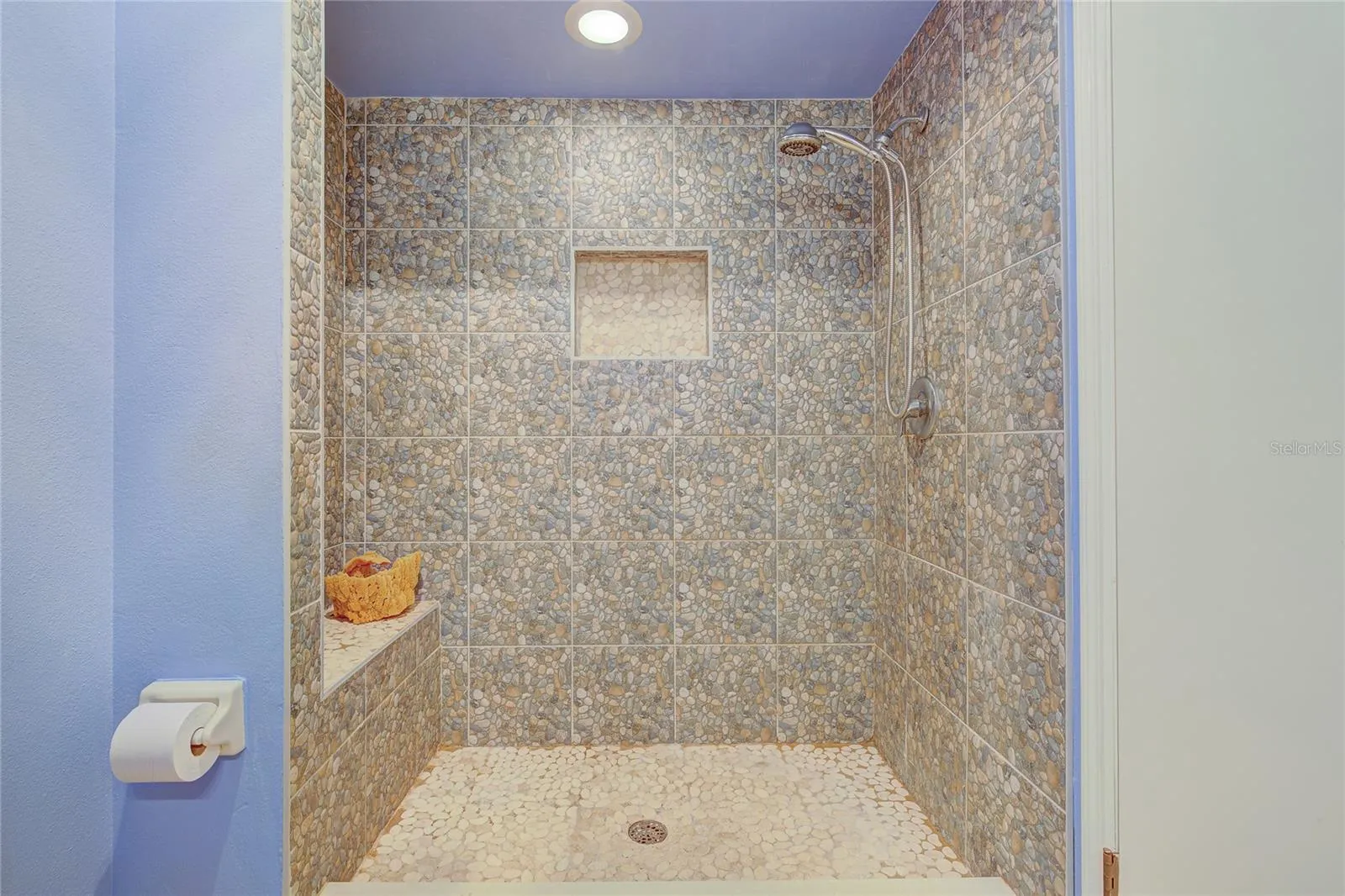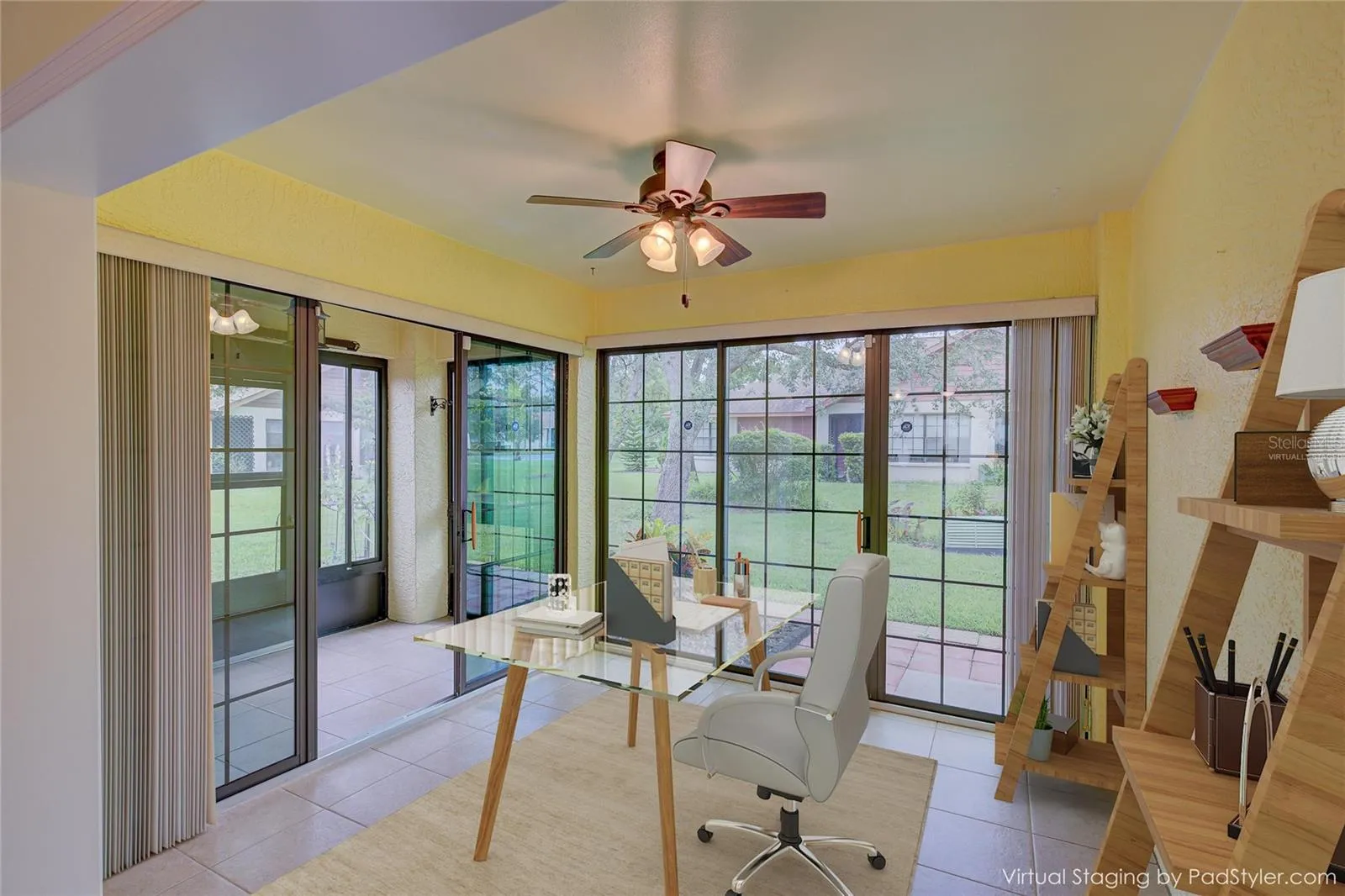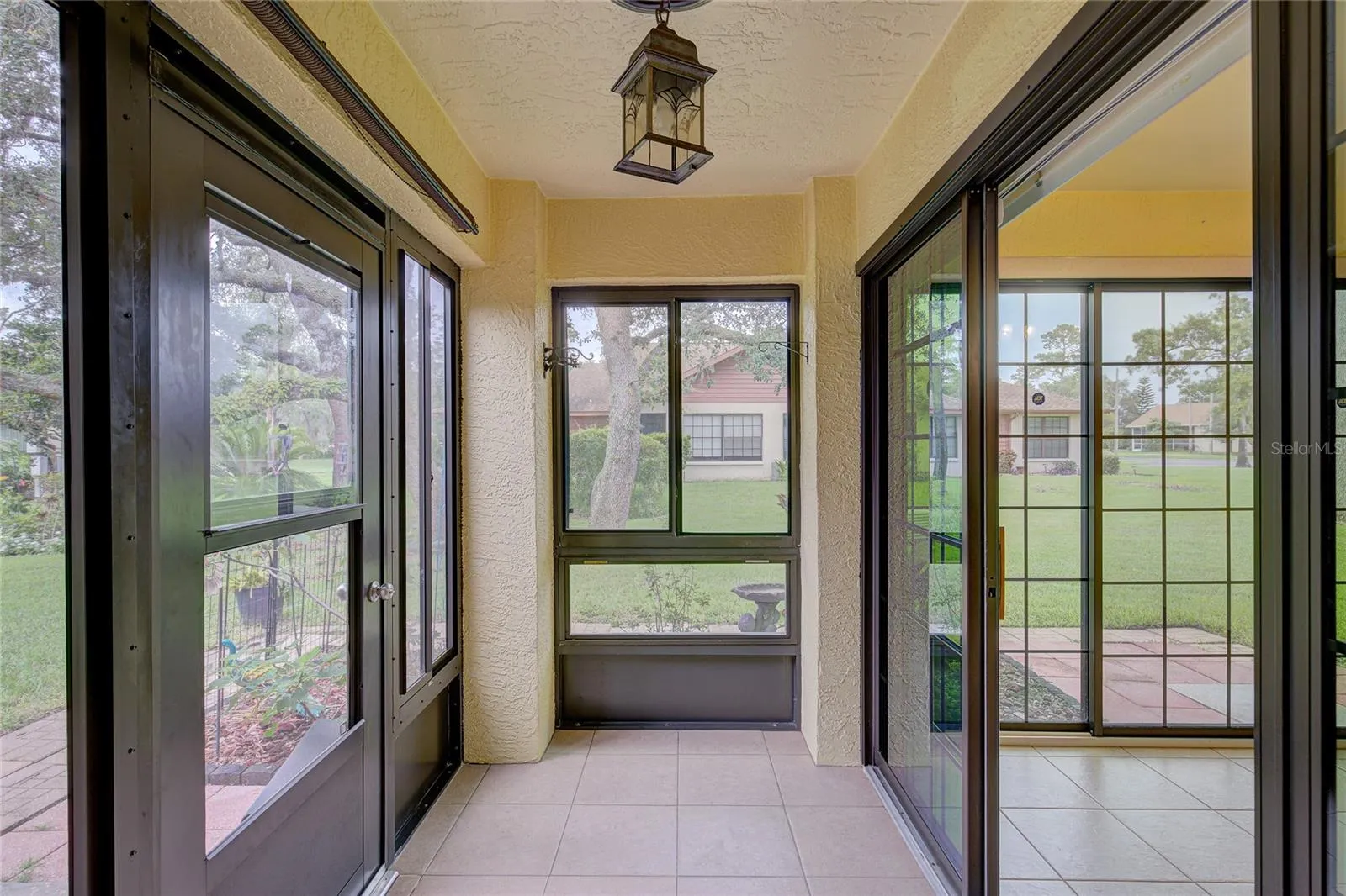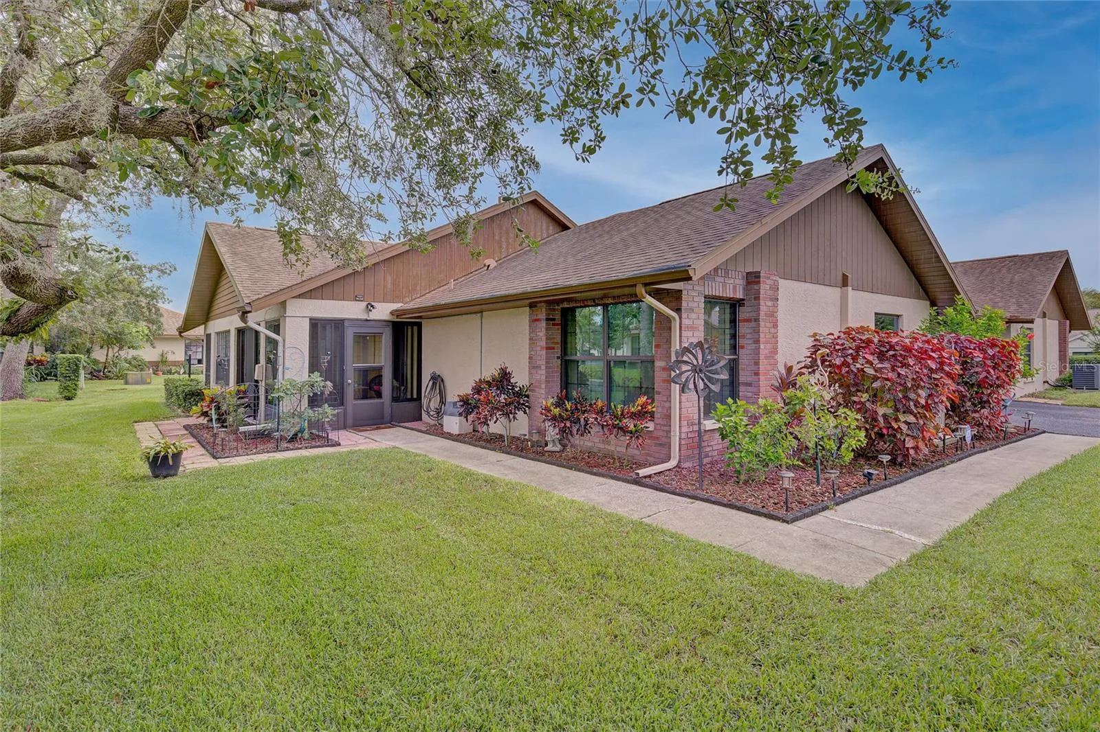 One or more photo(s) has been virtually staged. Do not miss the opportunity to own in the highly sought after, conveniently located community of Tall Pines in River Ridge. This one story maintenance free 2 bedroom 2 bath move in ready villa shows pride of ownership. From the moment you enter, you’ll feel at home with the inviting enclosed foyer and Florida Room/Office, which has all new windows, overlooking the meticulous landscaping. This villa boasts an attached garage, open floor-plan, and enclosed atrium. Meal preparation is a pleasure in this well thought out kitchen, complete with newer stainless appliances including an air fryer/ convection oven, and oversized one bin stainless sink! The owners have replaced all the appliances since owning it, including front load washer, dryer, French door refrigerator, microwave and disposal. The entire home has tile flooring, no carpets! The kitchen has a breakfast bar for casual meals and overlooks the dinette area as well as the atrium, which makes a perfect area to barbeque! The large primary bedroom easily accommodates a king size bed and has its own en-suite bath with a custom stone walk-in shower. A full second bath has a tub shower combination, and both baths have granite countertops.