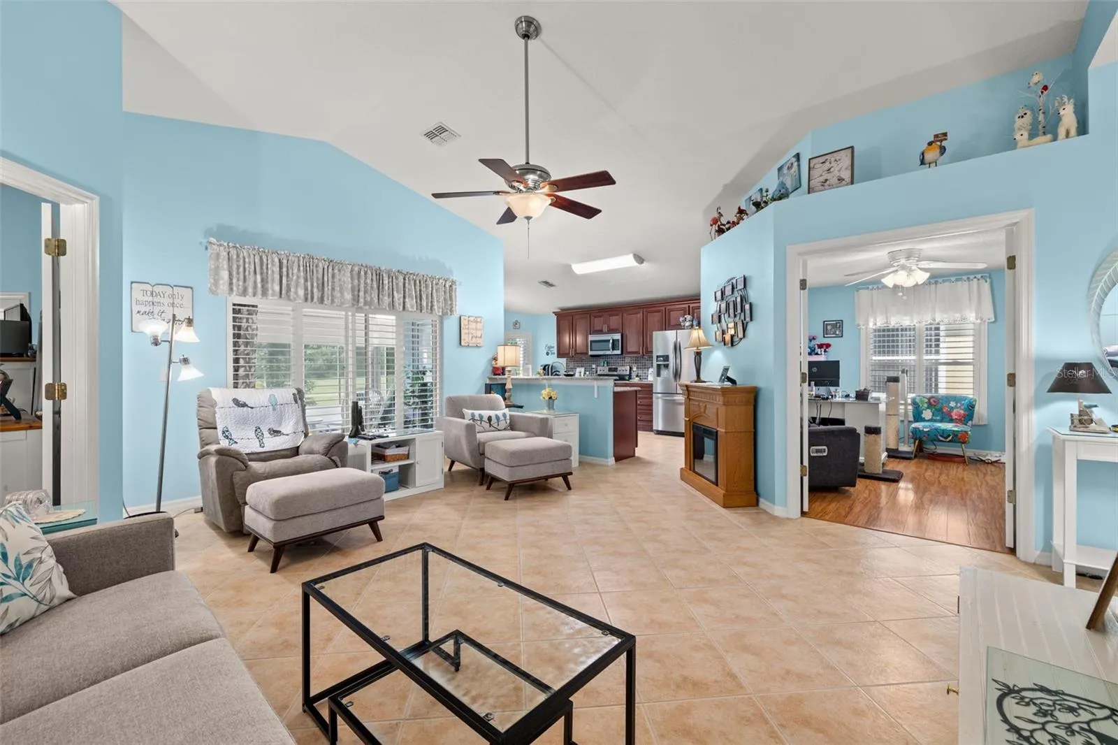 This is the one you’ve been waiting for! Gorgeous 1,489 Square Foot 2 bedroom, den, 2 bathroom perfect home on the picturesque 13TH fairway of the Championship Course of Tampa Bay Golf & Country Club. Double pane Hurricane rated windows 2011, Hurricane Shutters, new roof 2021, new HVAC 2024 and a beautiful, extended lanai featuring a split A/C Heat unit, windows w/screens, ceramic tile and blinds. This home has no carpet! The kitchen is open to the great room and has updated stainless appliances and gorgeous granite countertops. The Primary bathroom is stunning and has an unbelievable zero entry shower and a dual vanity sink. The home offers an inside laundry room with a huge washer and dryer that’re only 6 months old. This home is the definition of move in ready…it needs nothing! Our community features 27 holes of incredible golf, two swimming pools, the resort style one is heated to a balmy 80 degrees year round, dog parks and tennis courts, pickleball, cornhole, shuffleboard, fitness center, card rooms, billiards a second swimming pool, shows, concerts and so much more. TBG&CC has no CDD and very affordable HOA charges which include Cable/High Speed Internet/DVR and Mini Box. The Tampa Bay Golf & Country Club is Tampa Bay’s most desirable 55+ Active community. There is a ONE TIME charge of $3,500.00 for the Social Membership due at closing. All room sizes are approximate and should be confirmed by buyer(s)