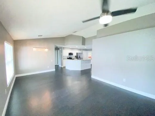 This property boasts an open floor plan, providing a spacious and welcoming atmosphere. The split bedroom setup offers privacy and convenience for occupants. The kitchen has undergone a complete remodel, featuring new cabinets, granite countertops, and stainless steel appliances. It also includes an eat-in area and a breakfast bar, perfect for casual dining or entertaining guests. The living room and dining room are generously sized and seamlessly flow together, creating an ideal space for relaxation and hosting gatherings. These areas lead out to a covered and screened patio, allowing for outdoor enjoyment while protected from the elements. The master bedroom is a retreat in itself, featuring a large walk-in closet and an ensuite master bath with new granite countertops. On the opposite side of the home, you’ll find the second and third bedrooms, along with a second bathroom that also boasts new granite countertops. The property showcases laminate flooring throughout, adding a touch of elegance and easy maintenance. The laundry room is equipped with a washer and dryer for added convenience. The two-car garage has been finished with epoxy floors, it is also climate controlled with an AC mini split and is insulated, offering the potential to be used as an entertainment room or for other purposes. Location is a significant advantage, as the property is conveniently situated just off US Hwy 56 and I-75. This prime location allows residents to enjoy the numerous new malls, restaurants, and entertainment options that have emerged in Wesley Chapel. The property is also in proximity to hospitals, highways, schools, and the Tampa Premium Outlet, ensuring easy access to essential amenities and services.