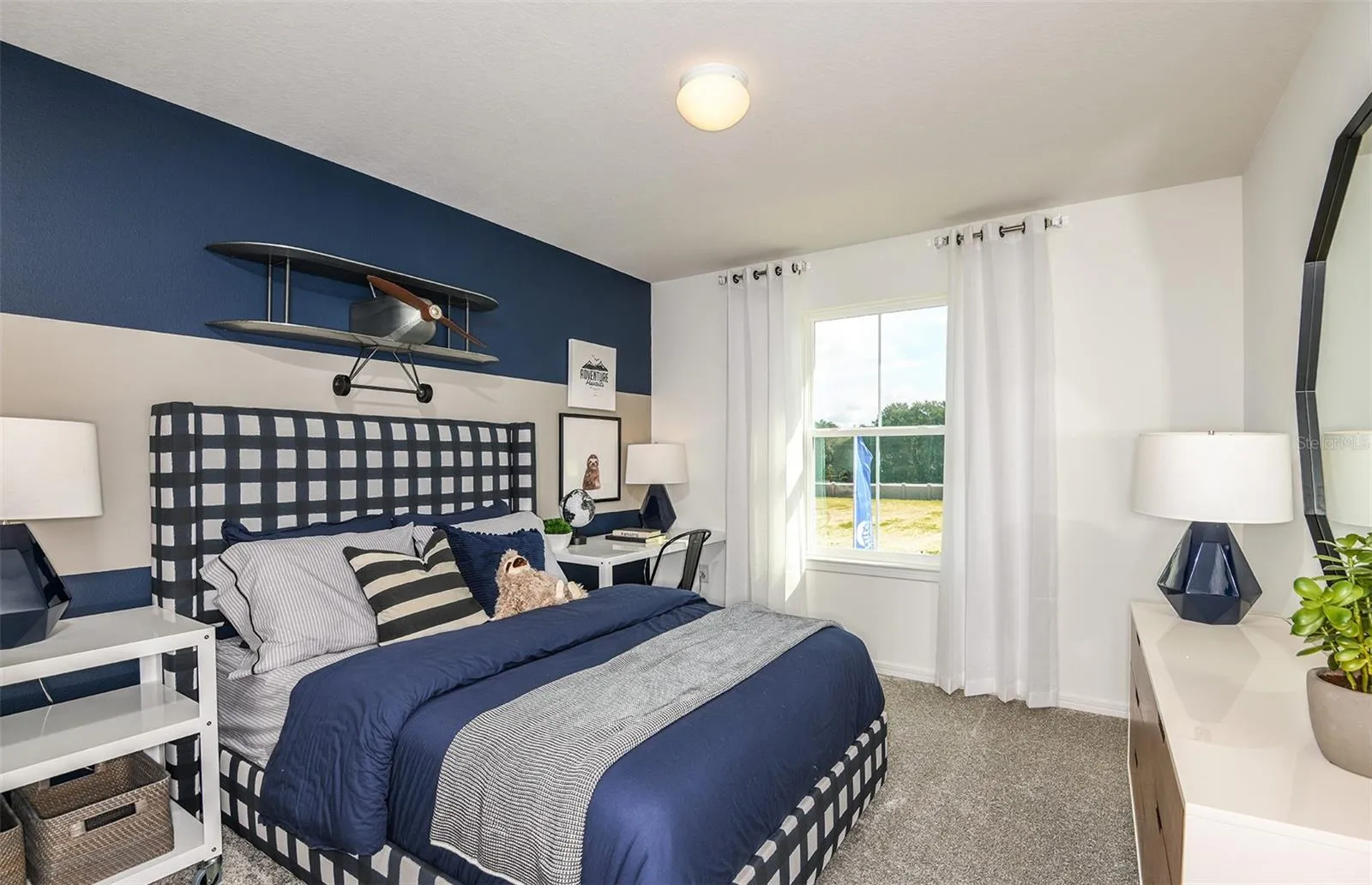 The bathrooms have matching cabinets and quartz countertops, comfort height commodes, and a walk-in shower, linen closet, and dual sinks in the Owner’s bath. There is 21”x21” floor tile in the main living areas, baths, and laundry room and stain-resistant carpet in the bedrooms and loft.