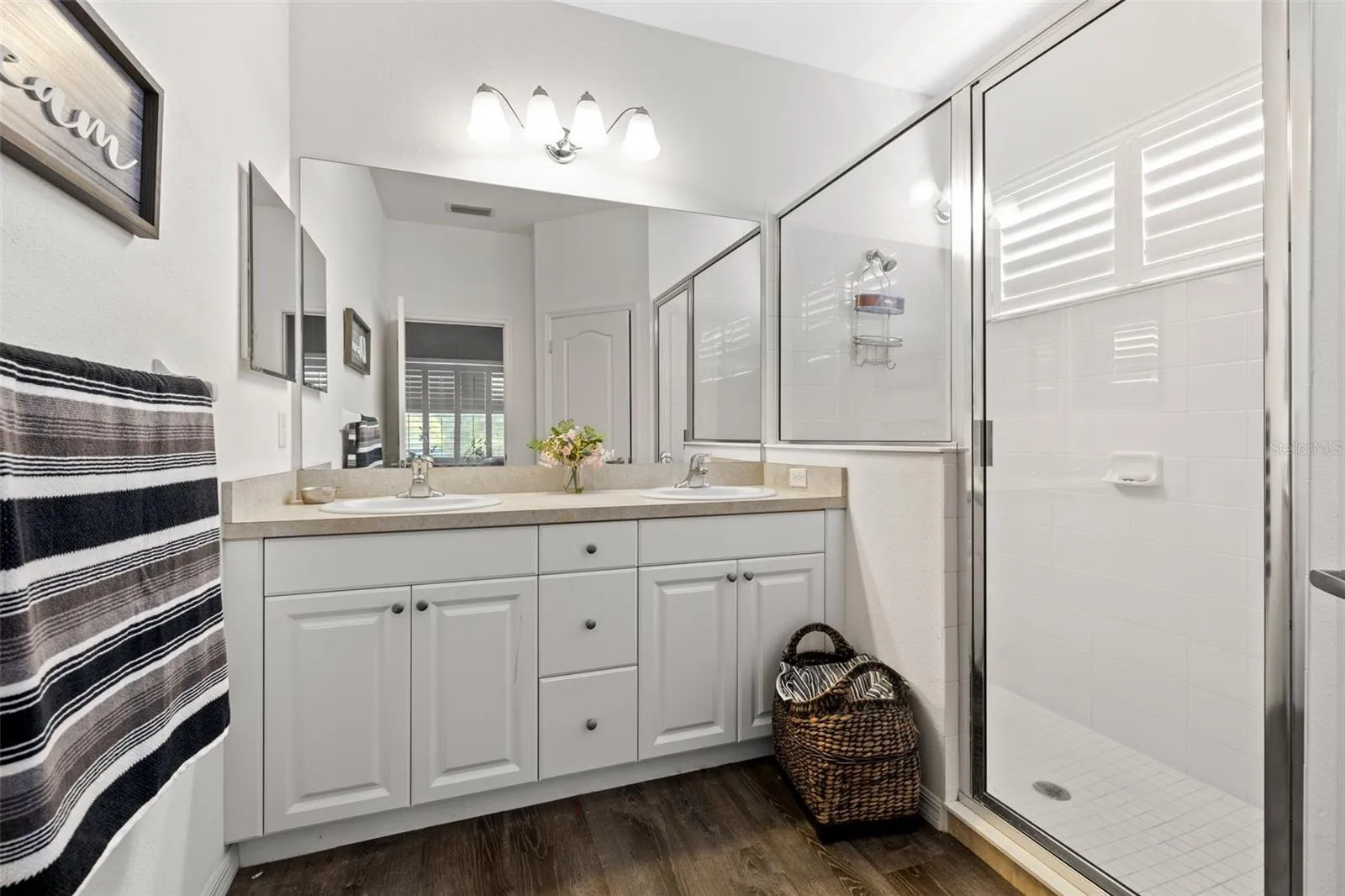 Discover the charm of Forest Creek, which is a gated, deed-restricted neighborhood. This home is nestled on a peaceful private no-outlet street. You are sure to envy many of the bonus features like its plantation shutters, flexible den room, and tranquil backyard, this home truly offers a serene and inviting retreat. Step onto the screened lanai to enjoy the quiet backyard, perfect for relaxation and gatherings. The main bedroom features a convenient double sink vanity, a water closet, and a spacious walk-in closet to meet all your storage needs. NEW luxury vinyl plank floors grace the living spaces, creating a sleek and modern atmosphere. The open-concept kitchen boasts a NEW LG stove, NEW LG ThinQ dishwasher, and Corian countertops, making meal prep a breeze. Inside, the laundry area comes with a NEWer LG washer and dryer and added storage, ensuring everything has its place. Abundant closet space throughout the home adds to its practicality. This property comes with the added peace of mind of a brand-new A/C unit installed in 2023, keeping you comfortable year-round. The formal dining room is ideal for special occasions or intimate dinners. With remarkably low HOA dues you’ll enjoy access to the gated community’s amenities, including a dog park, community pool, scenic Water Oak Park/Pier, meticulously manicured grounds, and a clubhouse. This home offers an impressive 1800+ square feet of living space. Outside the community, you’ll appreciate the convenience of the nearby brand-new Publix under construction and the proximity to Ellenton Mall. For boating enthusiasts, the Ft. Hammer boat ramp is just a stone’s throw away. Don’t miss this opportunity to live in the flourishing “New and Upcoming” North River Ranch area, with a short drive to popular dining spots like Whiskey Joe’s and Woody’s on the Roo. The NEW Creekside Commons, complete with Lowe’s and HomeGoods, is only 5 minutes away, PLUS you’ll find a variety of restaurants just a mile down the road. This home offers affordability, convenience, and a host of amenities in a thriving community. Act fast—this opportunity won’t last long!