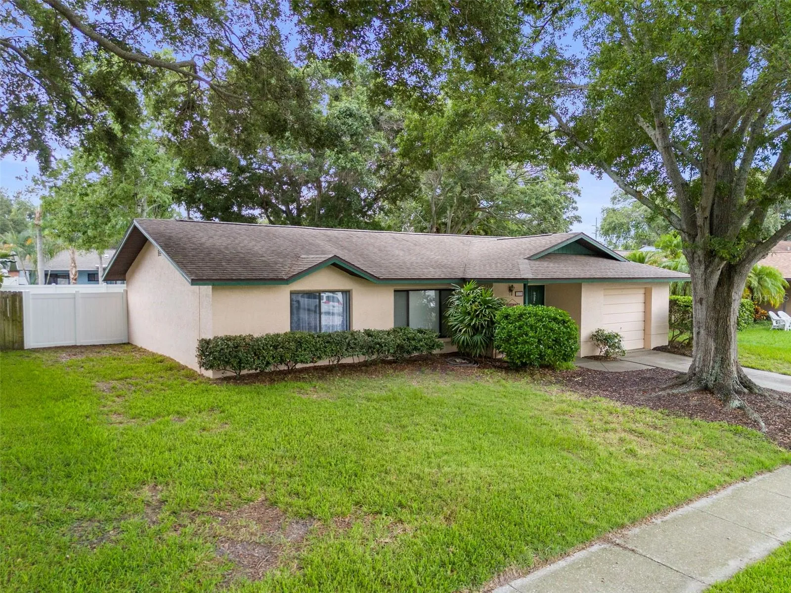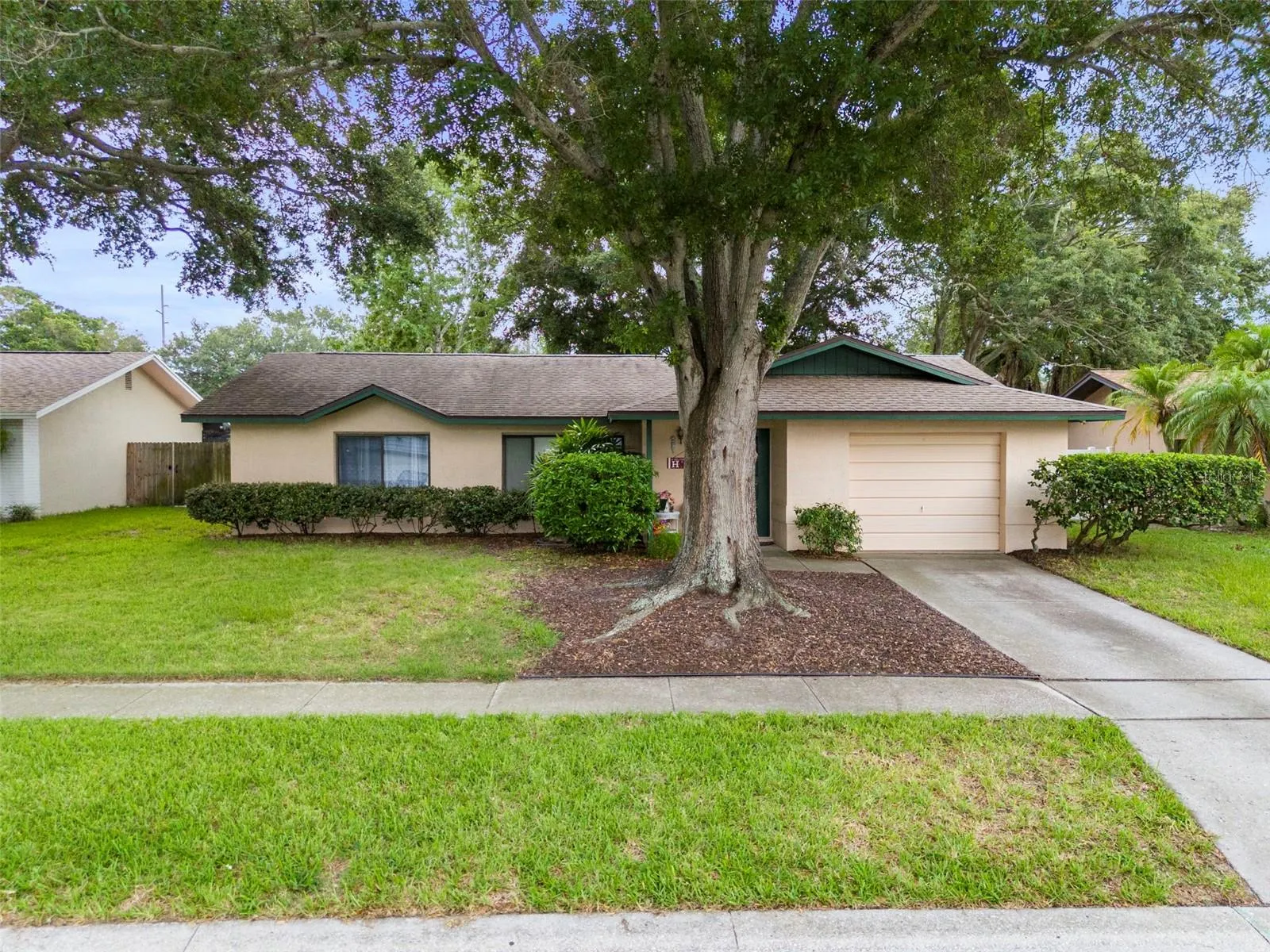 Price Improvement – Welcome to this lovely and well cared for ONE OWNER home in a desirable Clearwater neighborhood. No HOA and not a flood zone! The spacious front and backyards feature gorgeous and sturdy oak trees for wonderful and carefree shady days in the Florida warmth. Inside the home you will find 3 good sized bedrooms and 2 full bathrooms included in the 1564 square feet of living space. Beautiful high end laminate flooring throughout the entire house except for the bedrooms which have brand new fresh carpeting. Primary bedroom has two walk-in closets. 8 closets total throughout the house. French doors replaced in 2014 are “hurricane class” as well as a hurricane concrete pad for the air conditioner outside that is rated up to 150 MPH. Custom made home 3/4″ plywood storm shutters for your peace of mind during storm season. A new water heater was installed in 2019 and the electrical has been upgraded as well as upgraded insulation for lower electricity bills! One of this home’s great features is the IN THE HOUSE laundry room which can be rare in these parts! New roof was installed in 2016 and oversized one car garage has space for your vehicle and a workspace. This is a peaceful neighborhood with no thru traffic so taking evening strolls to the nearby private park will be a delight! Come see this gem today!