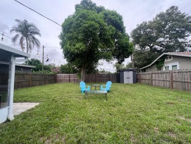 The backyard is fully fenced, featuring new sod and a re-screened lanai, perfect for outdoor enjoyment.