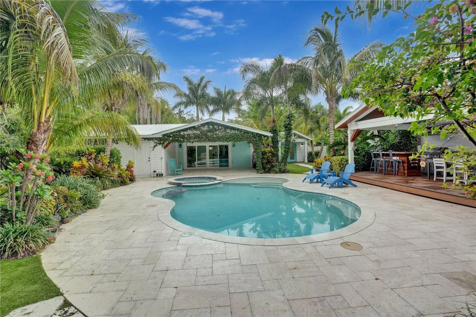 One or more photo(s) has been virtually staged. Welcome to your dream oasis! This home is truly one of a kind with a resort like feel perfect for a family or entertainers dream home. Listed under appraised value, this stunning 3 bed/2.5 bath plus Den home is nestled on an expansive 19,079 sqft lot, perfectly situated outside of the flood zone for peace of mind, and without any deed restriction or HOA. Step into luxury with a meticulously maintained block home boasting a beautiful pool canopy installed with Sonos speakers, EPI decking, Stone countertops, outdoor kitchen with grilling station, bar and separate outdoor bathroom and storage. The 2 hole putting green for your leisure is an added bonus. Located next to the green is a Pad perfectly situated for your outdoor Sauna equipped with an electrical connection. Relax to the soothing sounds of a handmade waterfall crafted from keystone coral, or rinse off in the refreshing outdoor shower after a swim in your heated saltwater pool and spa. Enjoy the convenience of a mosquito mister installed throughout the entire backyard, ensuring outdoor gatherings are comfortable year-round. The $100K custom designed landscaped and fully fenced yard features artificial turf, 89 Rock, sealed travertine decking, keystone coral pavers, a french drain and coconut palms all fully irrigated for easy maintenance. Inside, upgrades abound with updated plumbing, sewer, drywall, electric, metal roof, windows, and fiberglass insulation, providing efficiency and peace of mind. The beautiful upgraded bright and open eat-in kitchen boasts quartz countertops, upgraded stainless steel appliances, and a dry bar overlooking your covered lanai and tropical oasis. Additional features include a storage shed at the rear of the home, and an oversized two car garage ensuring ample space for all your outdoor equipment and hobbies. The property is meticulously lit and landscaped, offering a serene and picturesque backdrop for your everyday enjoyment. Don’t miss out on this rare opportunity to own a private piece of paradise with unparalleled amenities and upgrades. Located just a few minutes from the Manatee River and Downtown Bradenton, only 30 Minutes from Downtown St. Pete and Sarasota and 17 Miles to Anna Maria Island. Schedule your tour today and discover the lifestyle you’ve been dreaming of!