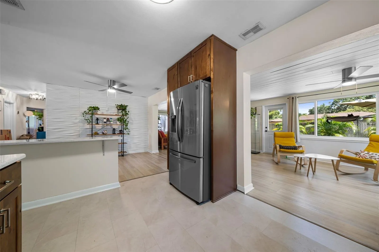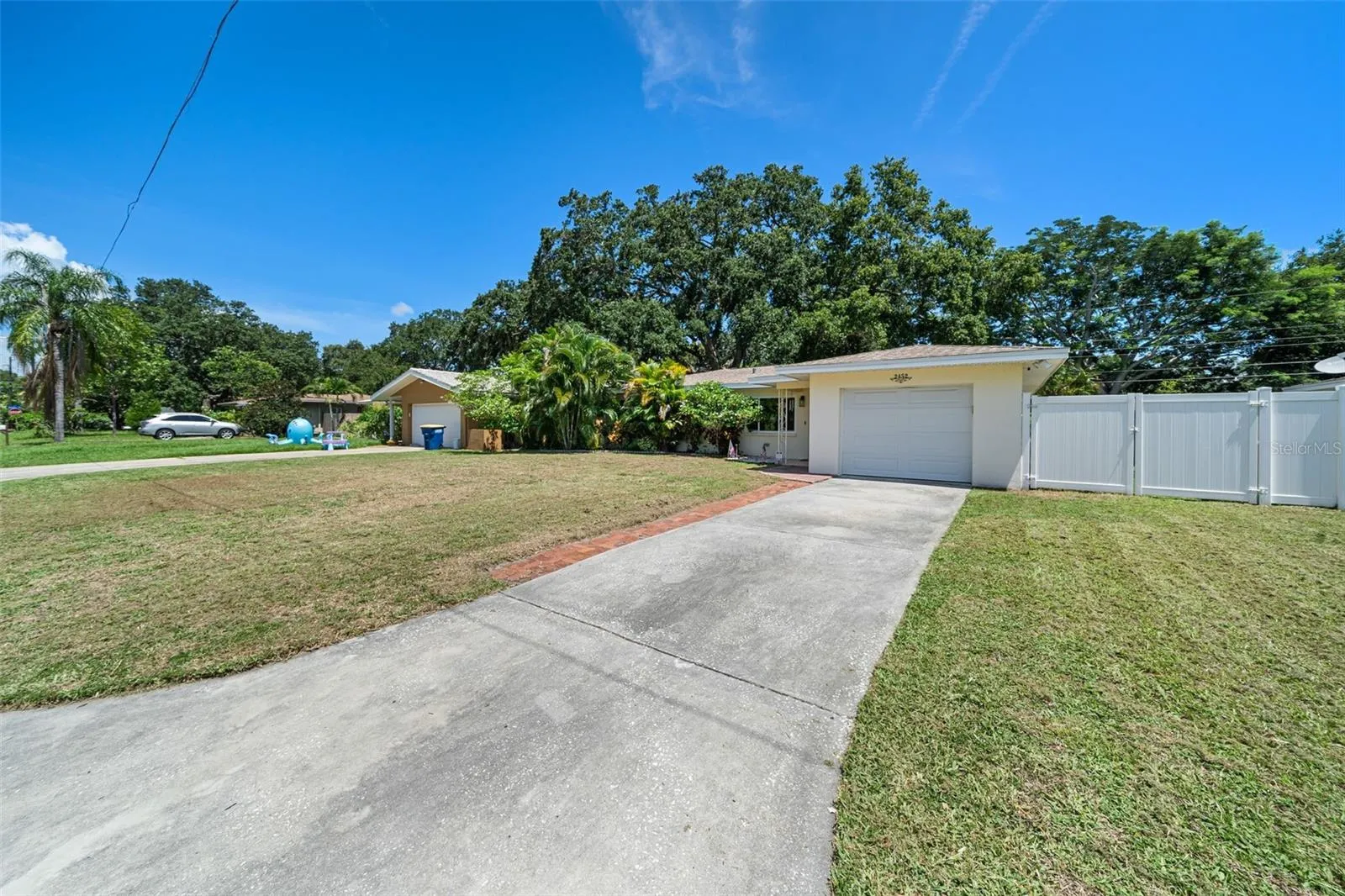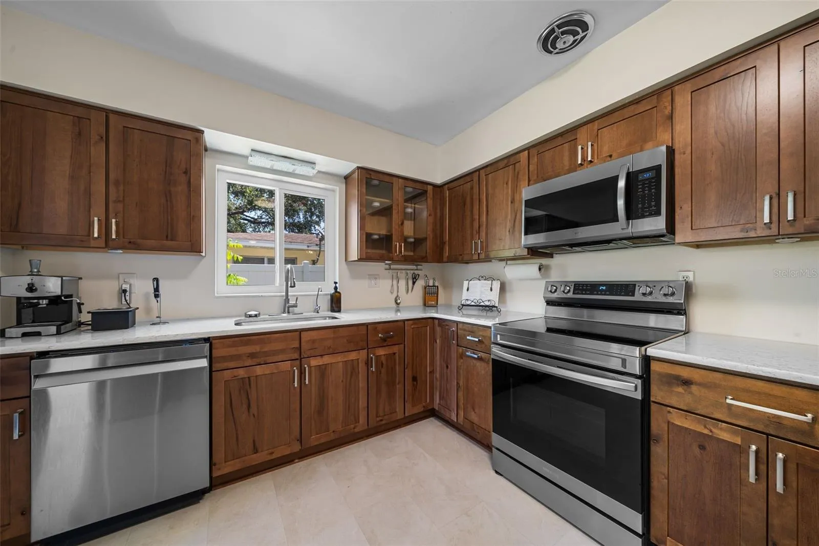 Welcome to your beautifully renovated oasis, perfectly situated just 15 minute drive from Clearwater Beach, Safety Harbor nightlife, and Tampa Airport. This charming home boasts all-new hurricane double gallery windows and doors, luxury vinyl new floors in the kitchen and main areas, and timeless terrazzo floors in the bedrooms. The remodeled kitchen features stunning quartz countertops and state-of-the-art Samsung smart appliances. The luxurious bathroom is equipped with new cabinets, a dimmable anti-fog vanity mirror, and a Woodbridge toilet with bidet. Modern conveniences abound with a smart vent with a built-in music speaker, a smart lock on the front door, a Ring camera doorbell, and a comprehensive outdoor camera security system. Enjoy enhanced functionality with new closet doors in each bedroom and modern ceiling fans in the main area. An outdoor covered tented gym provides a perfect space for fitness. Smart HVAC vents optimize heating and cooling efficiency throughout the home. This property offers the perfect blend of comfort, convenience, and modern living in an unbeatable location. NO HOA, NO CDD. Appointment Required only.