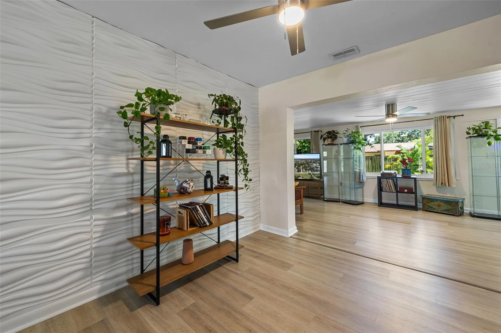 - Ceiling Fans(s), Thermostat, Living Room/Dining Room Combo, Eat-in Kitchen, Primary Bedroom Main Floor, Window Treatments, Smart Home, Solid Wood Cabinets, Solid Surface Counters, L Dining