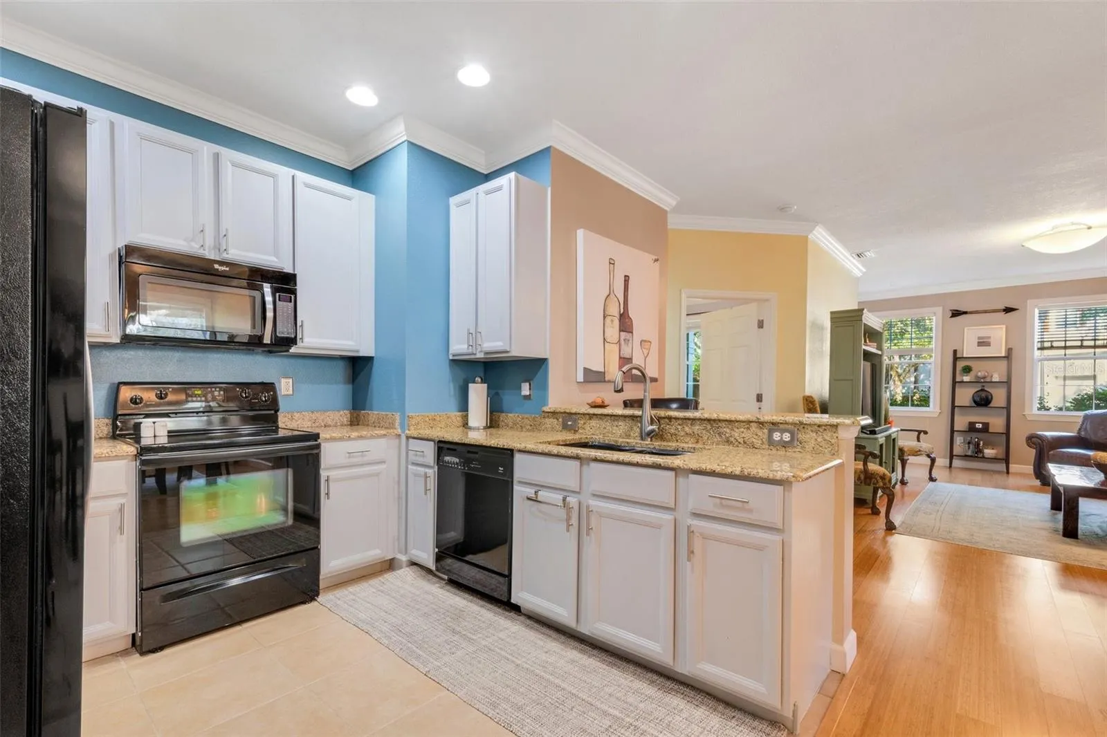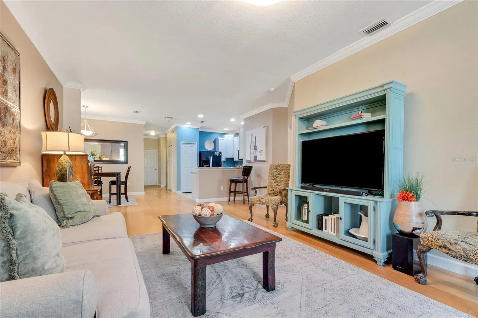 - Crown Molding, Open Floorplan, Walk-In Closet(s), Living Room/Dining Room Combo, Kitchen/Family Room Combo, Split Bedroom, Window Treatments, Stone Counters