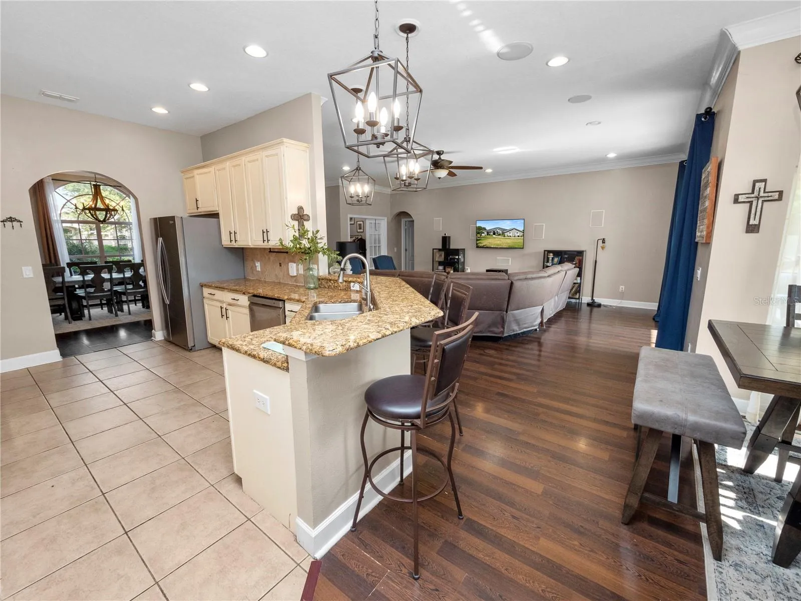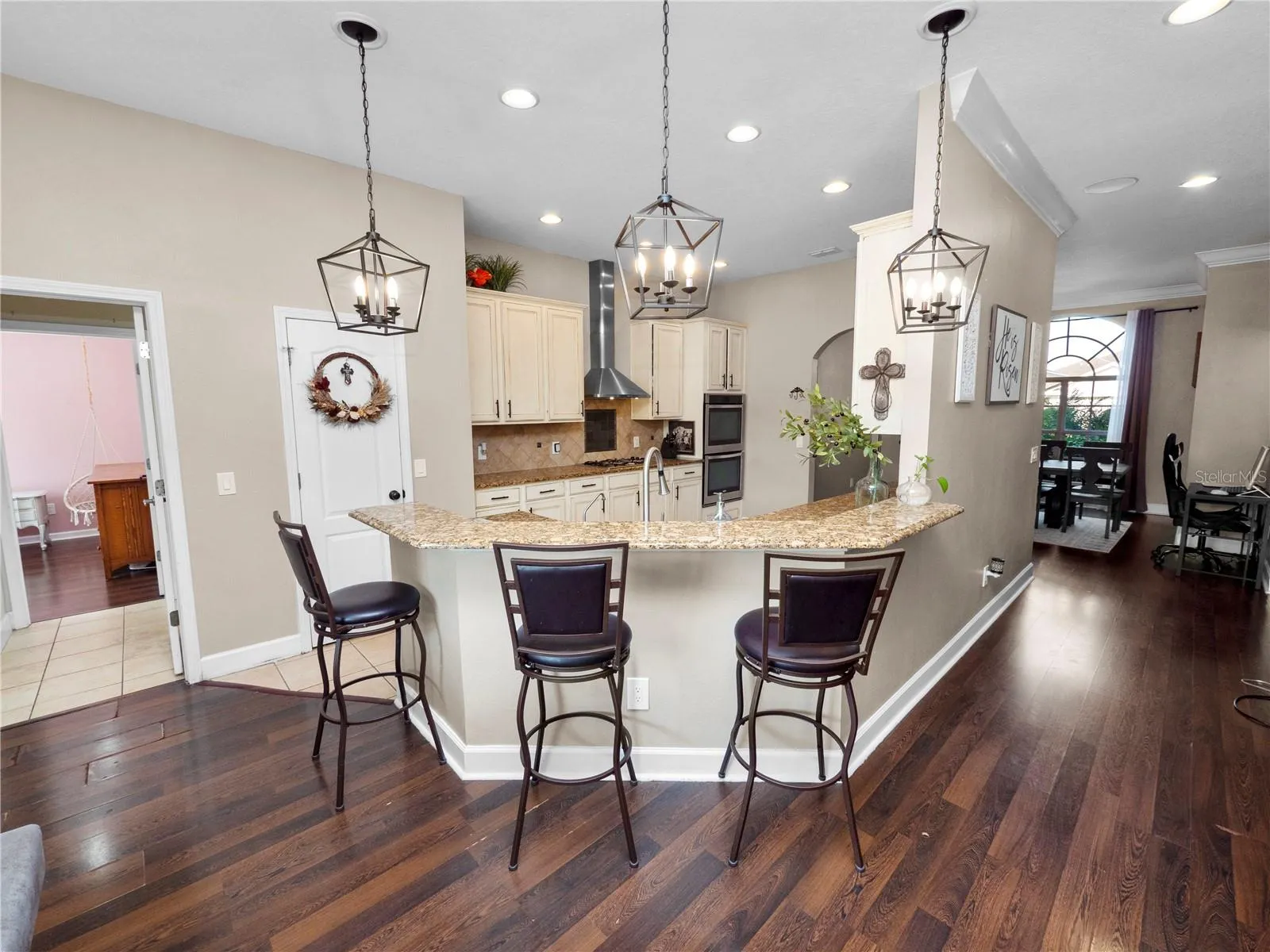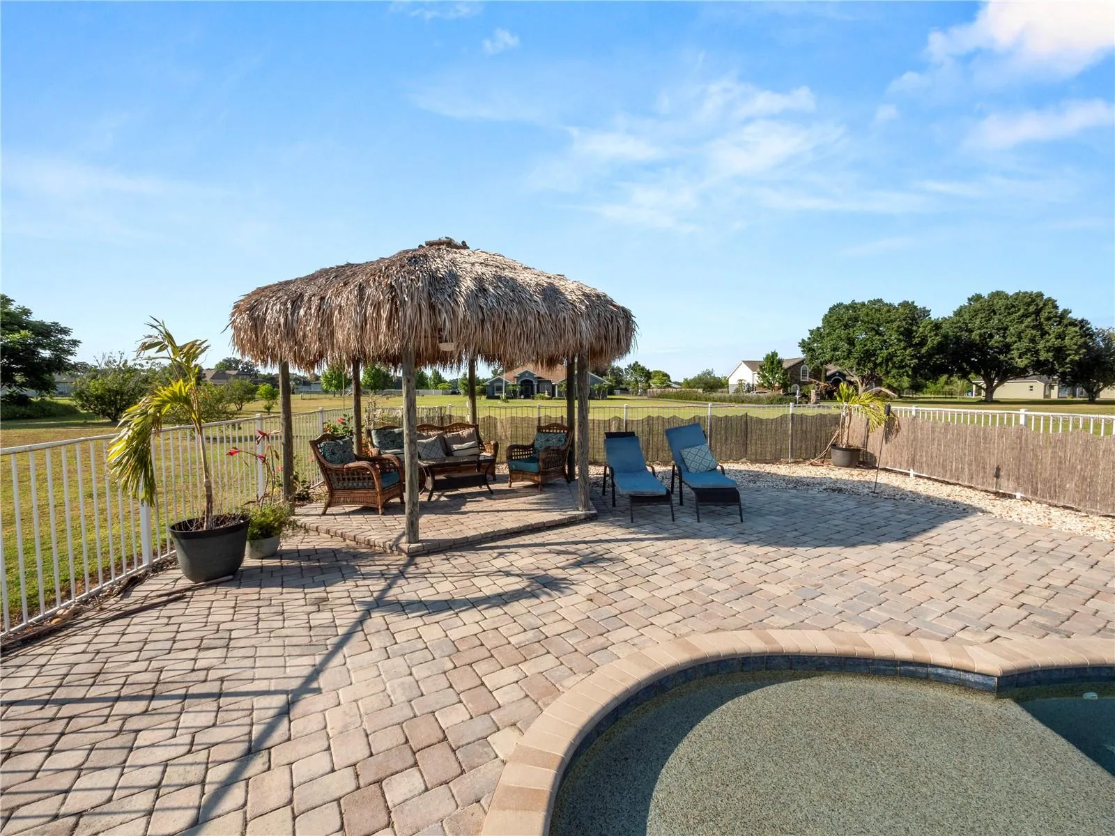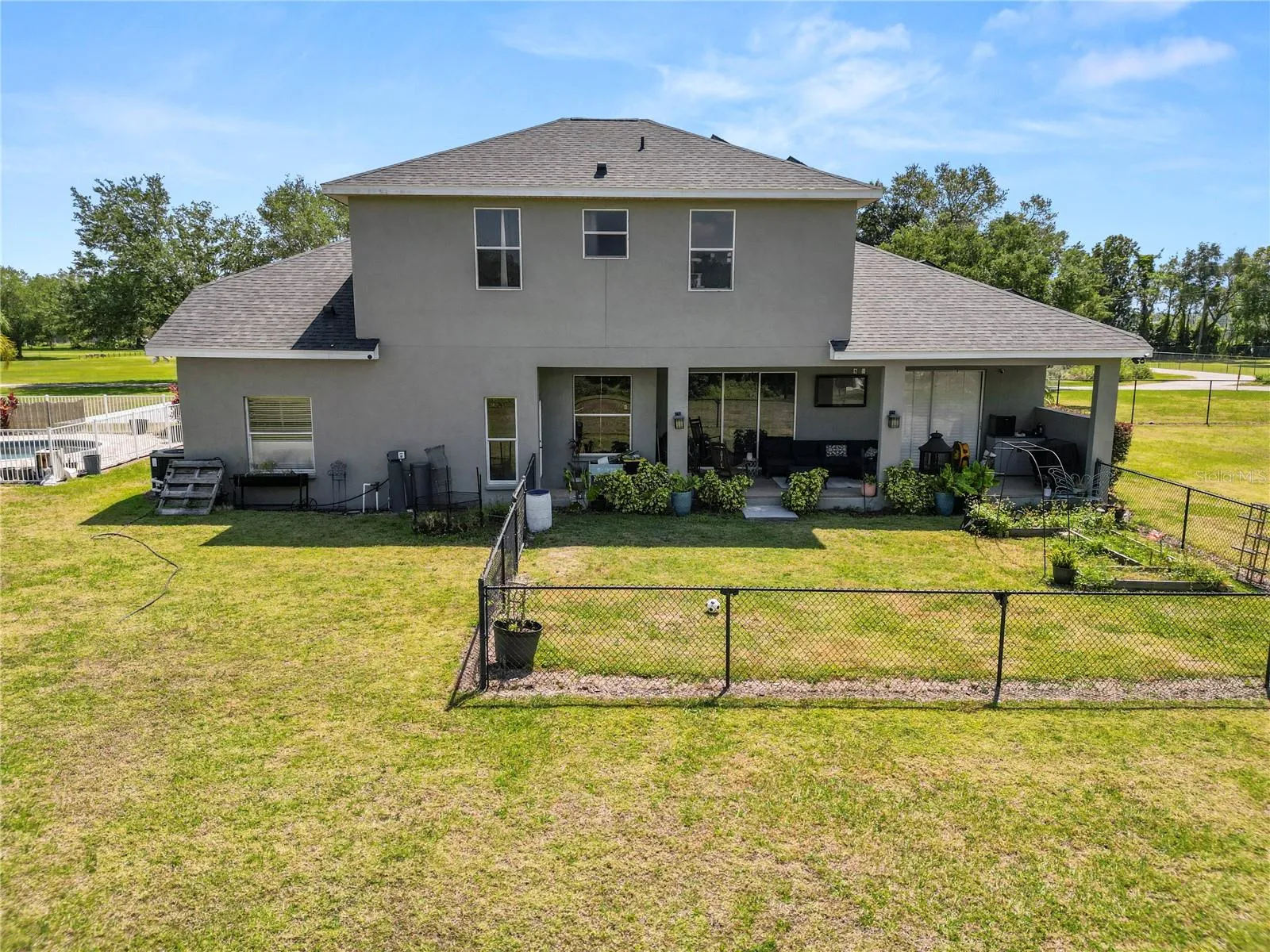 Welcome to your dream oasis nestled within the tranquil confines of a serene community! This remarkable property boasts all the elements of luxury living combined with the tranquility of a private retreat with NO HOA. Situated on a sprawling 1.2-acre partially fenced in lot, this magnificent 6-bedroom, 4-bathroom haven offers over 3700 square feet of impeccable living space. The roof was replaced in 2022 and the 2 AC units in 2017. The pool pump was also replaced in 2022 and the pool vacuum and LED pool light replaced in 2023. The home is solar powered with a battery back up system and fully paid off solar panels which keeps your electric bill very low! Upon arrival, you’ll be captivated by the lush greenery and peaceful ambiance that envelops this residence. Stepping inside, you’ll be greeted by an inviting open floor plan that seamlessly connects the various living spaces, perfect for both entertaining guests and everyday living. The heart of the home is undoubtedly the gourmet kitchen, adorned with exquisite granite countertops and a breakfast bar, ideal for casual dining or socializing while preparing culinary delights. With the dishwasher being replaced in 2022 and a new refrigerator installed in 2023. Equipped with a gas range and built-in oven, this kitchen is a chef’s paradise, offering both style and functionality. Adjacent to the kitchen, discover a separate dining area, providing a sophisticated setting for intimate dinners or festive gatherings with loved ones. Retreat to the luxurious primary bedroom suite, boasting ample space, walk-in closets, and a lavish ensuite bathroom complete with dual vanity sinks, a rejuvenating soaking tub, and a spacious walk-in shower, offering the epitome of comfort and relaxation. The first floor also features a separate den/office space, currently being used as a “glam room”, and also would make a great work from home space, 3 additional bedrooms and two full bathrooms, along with your indoor laundry room that leads to your 3 car garage! Upstairs, a generous loft area awaits, offering versatile space for a home office, media room, or play area. There is also a large storage room perfect for seasonal decorations storage. Two additional bedrooms and the 4th full bathroom, provide privacy and comfort for family members or guests. Step outside into your own private paradise, where a sparkling pool beckons on warm summer days. Surrounding the heated salt water pool is a stylish paver deck, perfect for lounging in the sun or hosting al fresco gatherings. Adjacent to the pool, a large tiki hut with fan installed awaits, providing shade and a charming ambiance for outdoor entertaining or simply unwinding with a refreshing beverage. With its spacious layout, luxurious amenities, and idyllic setting, this extraordinary pool home offers the perfect blend of comfort, style, and tranquility. Transferable Home Warranty paid in full until February 17, 2026! Don’t miss your opportunity to make this slice of paradise your own! Schedule your private tour today and experience the epitome of upscale living.