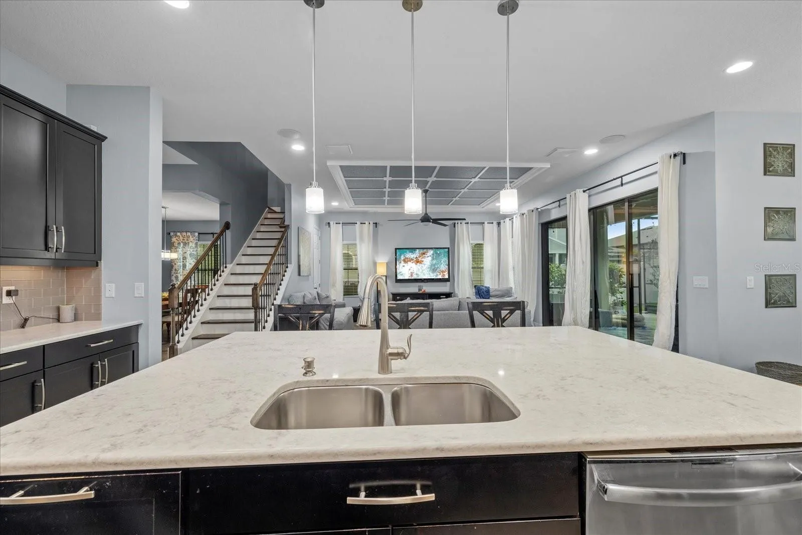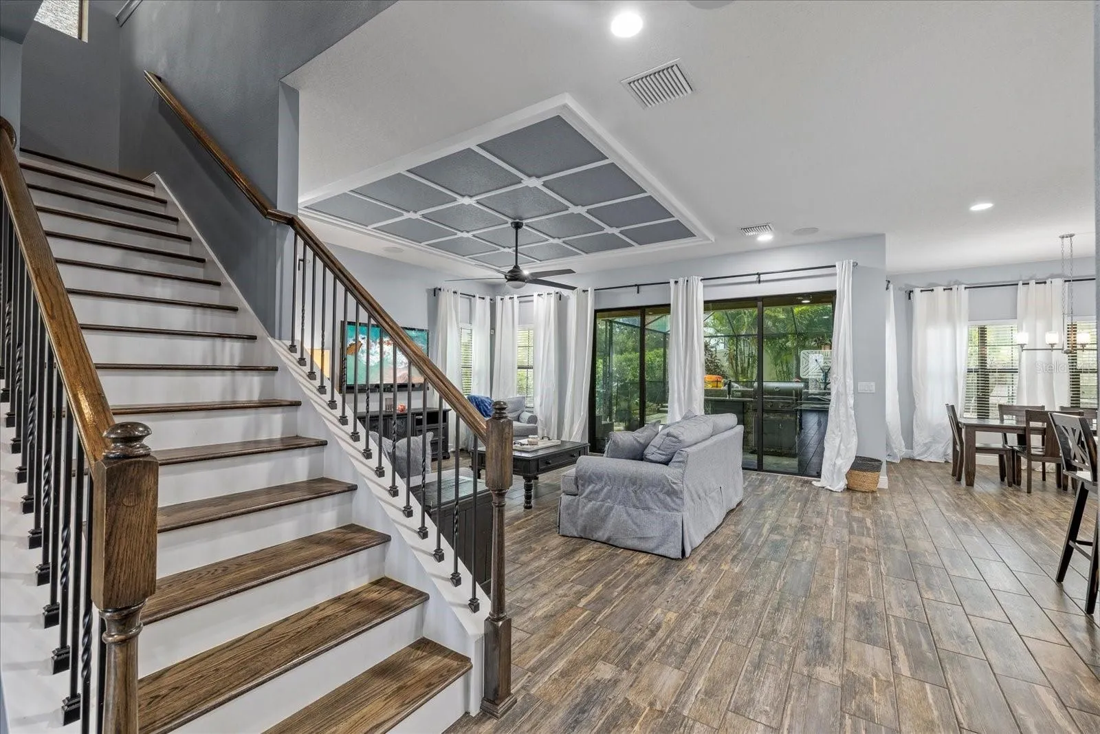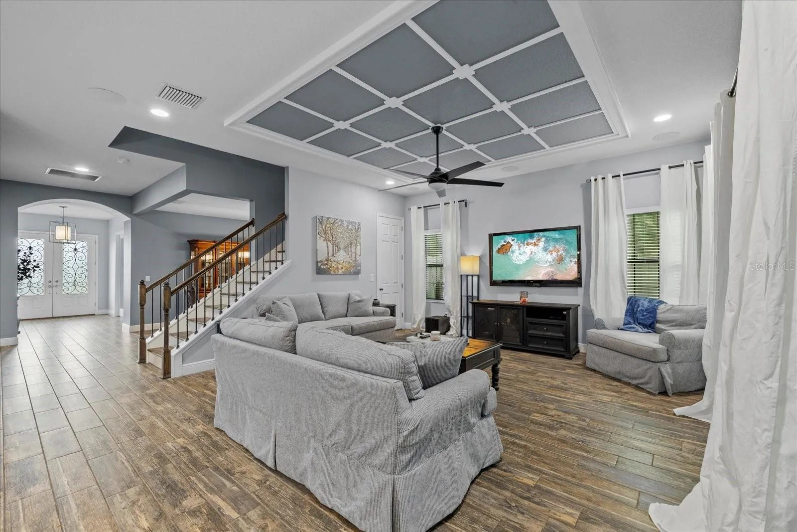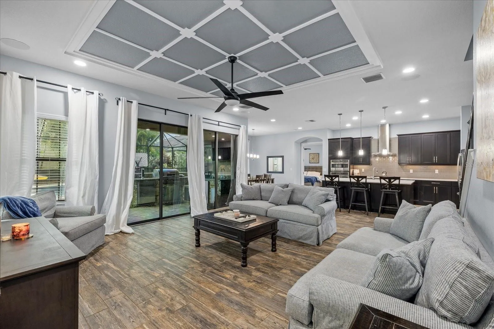 - Ceiling Fans(s), Open Floorplan, Walk-In Closet(s), Eat-in Kitchen, Kitchen/Family Room Combo, Primary Bedroom Main Floor, High Ceilings, Wet Bar, Coffered Ceiling(s)