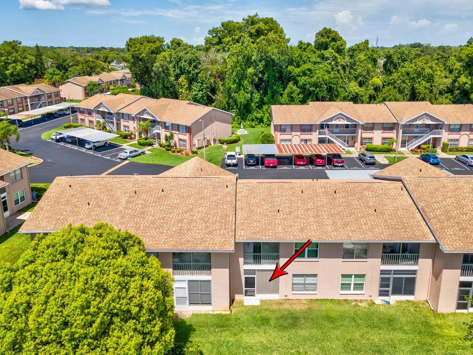 WELCOME HOME TO THE DESIRABLE SUNNYBROOK COMMUNITY! This is a lovely, GATED ACTIVE 55+ community with many amenities to enjoy! MINUTES FROM THE DOWNTOWN NEW PORT RICHEY AREA! TURNKEY! This beautiful unit is situated on the ground floor with 2 Bedrooms and 1.5 Bathrooms! FRESHLY PAINTED! As you enter, you’ll be greeted by an inviting open concept. Cozy yet quaint AND very well cared for offering much natural light. The functional open floor plan seamlessly integrates the kitchen, dining and living room, complemented by the breakfast bar! Kitchen has been tastefully renovated with gleaming NEW QUARTZ COUNTERTOPS, NEW HARDWARE and deep kitchen sink! For added convenience, there’s a washer-dryer setup and sliding doors from the kitchen. Leading outside from the kitchen you walk out onto your screened-in lanai with custom blinds for privacy; ideal spot to enjoy your morning coffee and relaxation. Storage closet for extra storage! Retreat to the guest bedroom, thoughtfully situated at the front of the condo, boasting ample space and a sizable closet. Adjacent to the guest bedroom you have your half bath, perfect for guests. Owner’s suite is greatly sized, with views of the grassy outdoor common area space! NEW WALK IN SHOWER! Both bedrooms offer ample amount of closet space! New blinds throughout! NEWER WATER HEATER! Notably, this condo OFFERS IMMEDIATE RENTAL flexibility—perfect for short-term or long-term rentals—with NO PRIOR OWNERSHIP. LOW MAINTENANCE LIVING! HOA COVERS ROOF, WATER, TRASH, EXTERIOR MAINTENANCE, GROUND MAINTENACE, COMMUNITY POOL, SEWER, AND INSURANCE. Active Community with a community pool, Clubhouse, Tennis courts and more. Close to shopping, medical, Downtown New Port Richey, restaurants, golfing, fishing and top-rated beaches, COVERED CARPORT ASSIGNED TO UNIT #197. PETS ALLOWED Come see all that Sunnybrook has to offer! Schedule your private viewing TODAY!!