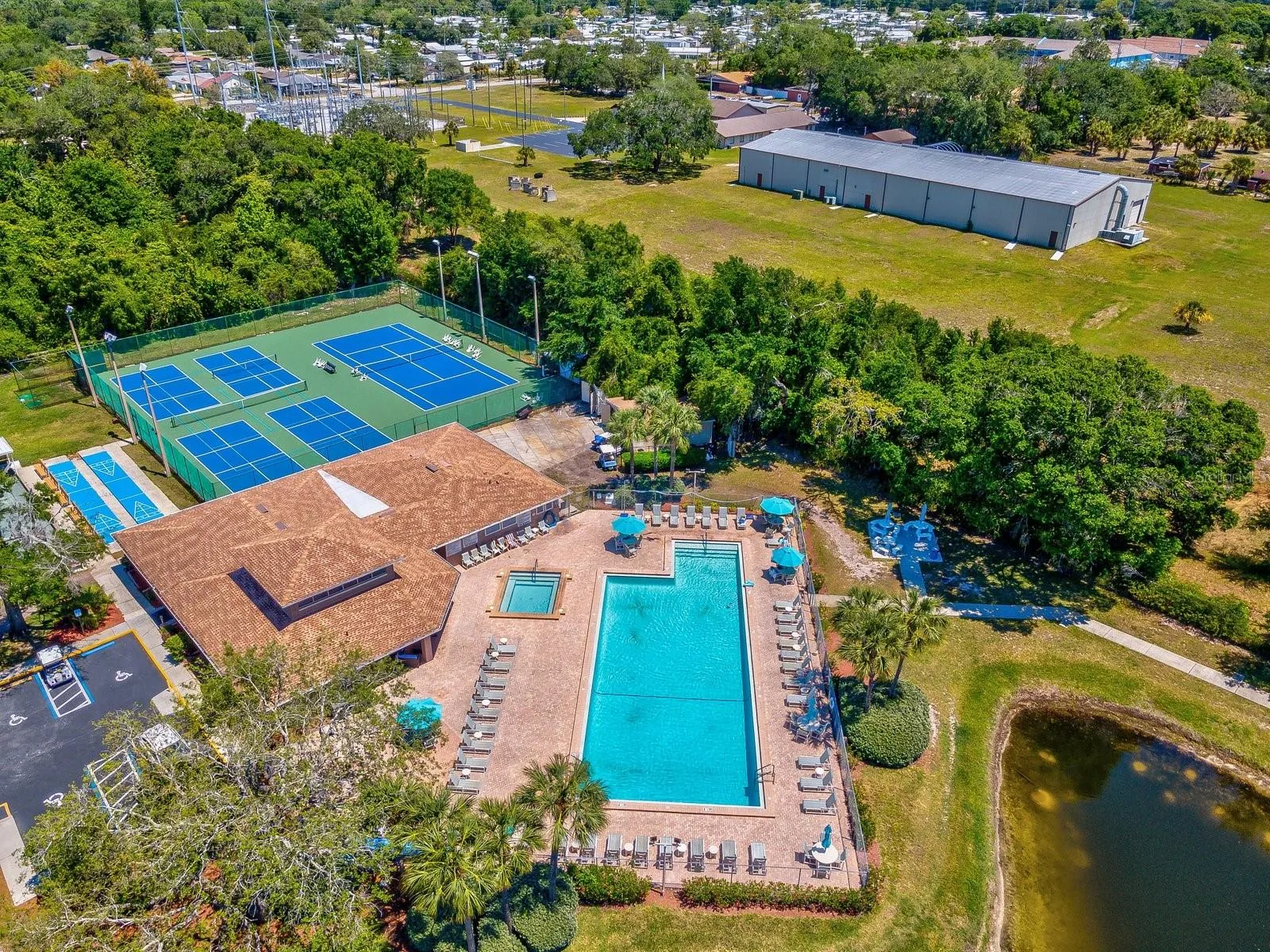 - Cable TV,Clubhouse,Gated,Maintenance,Pickleball Court(s),Pool,Racquetball,Recreation Facilities,Shuffleboard Court,Tennis Court(s)