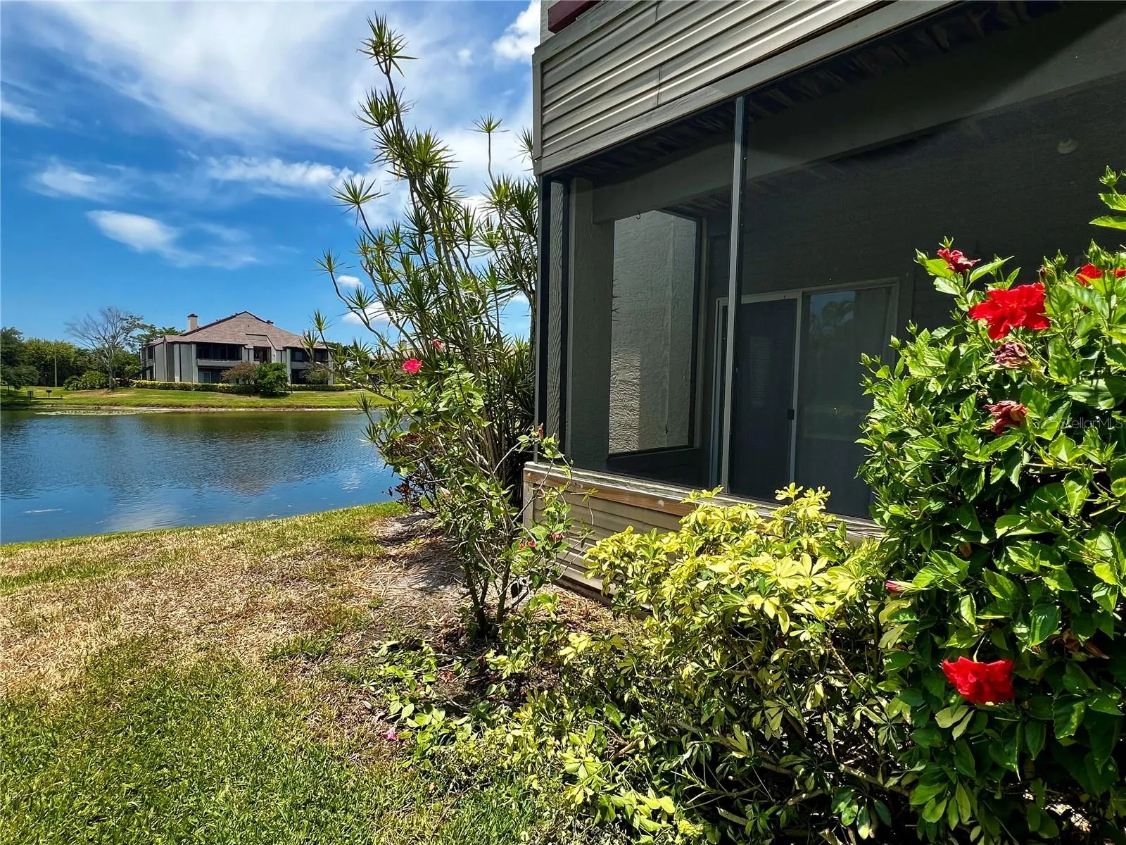 The modern kitchen boasts stainless steel SAMSUNG appliances (2021), including a refrigerator, range, dishwasher, microwave, and washer/dryer for added convenience. Newer HVAC (2020) and water heater (2021) ensure peace of mind and efficiency. A spacious bedroom with a large walk-in closet ensures ample storage space for your belongings. Immerse yourself in stunning lake views from your spacious screened-in patio, designed for relaxation and enjoying the tranquil surroundings while appreciating the beauty of nature and the delightful Florida birds.