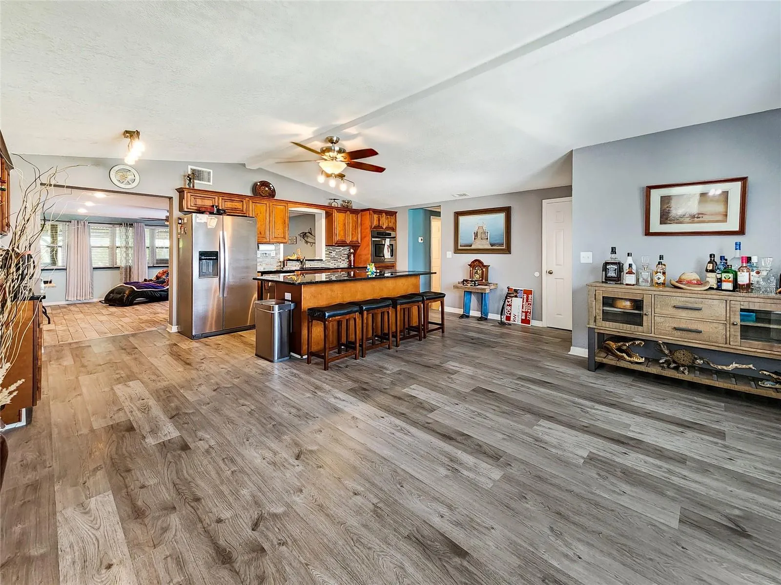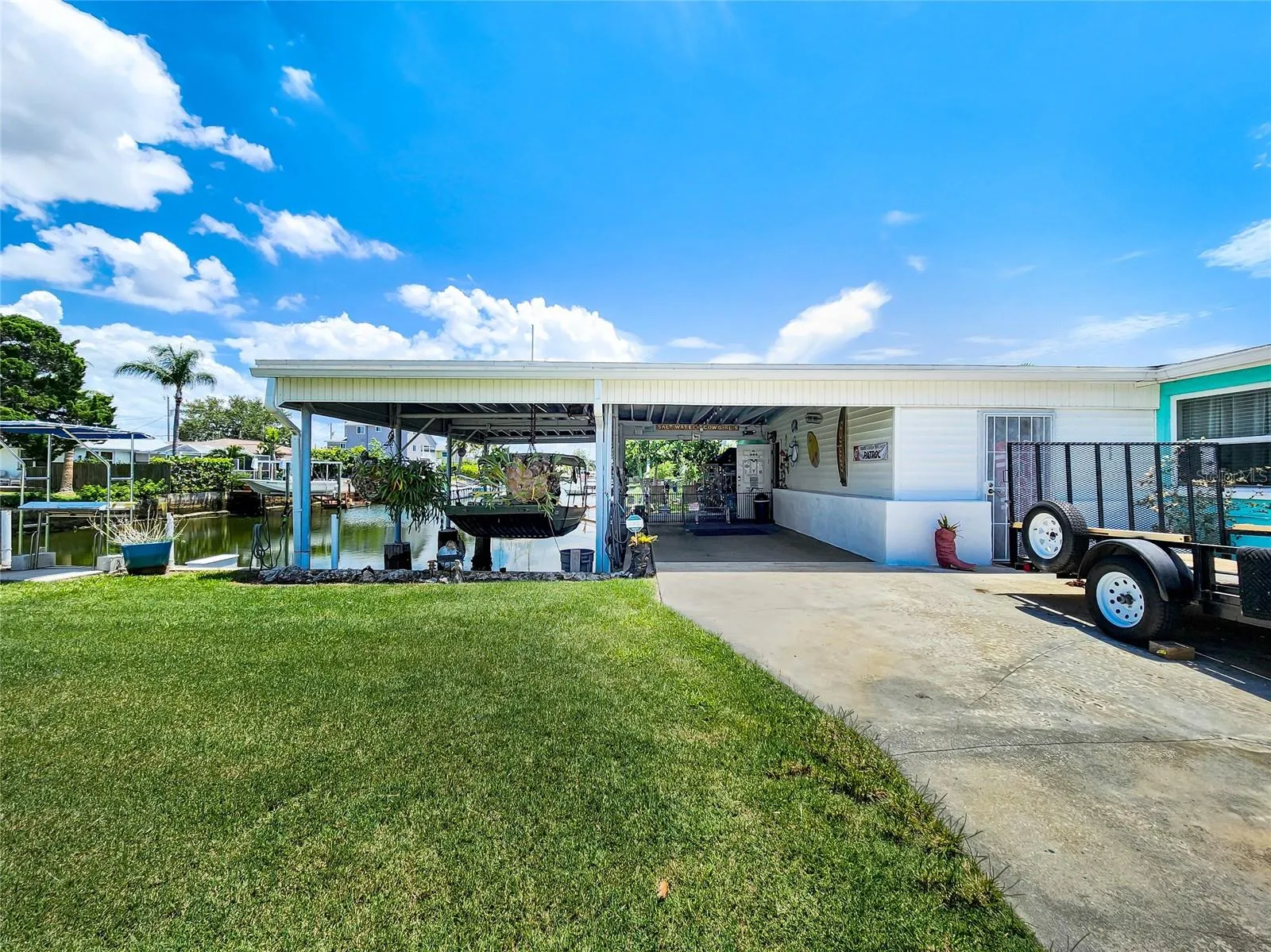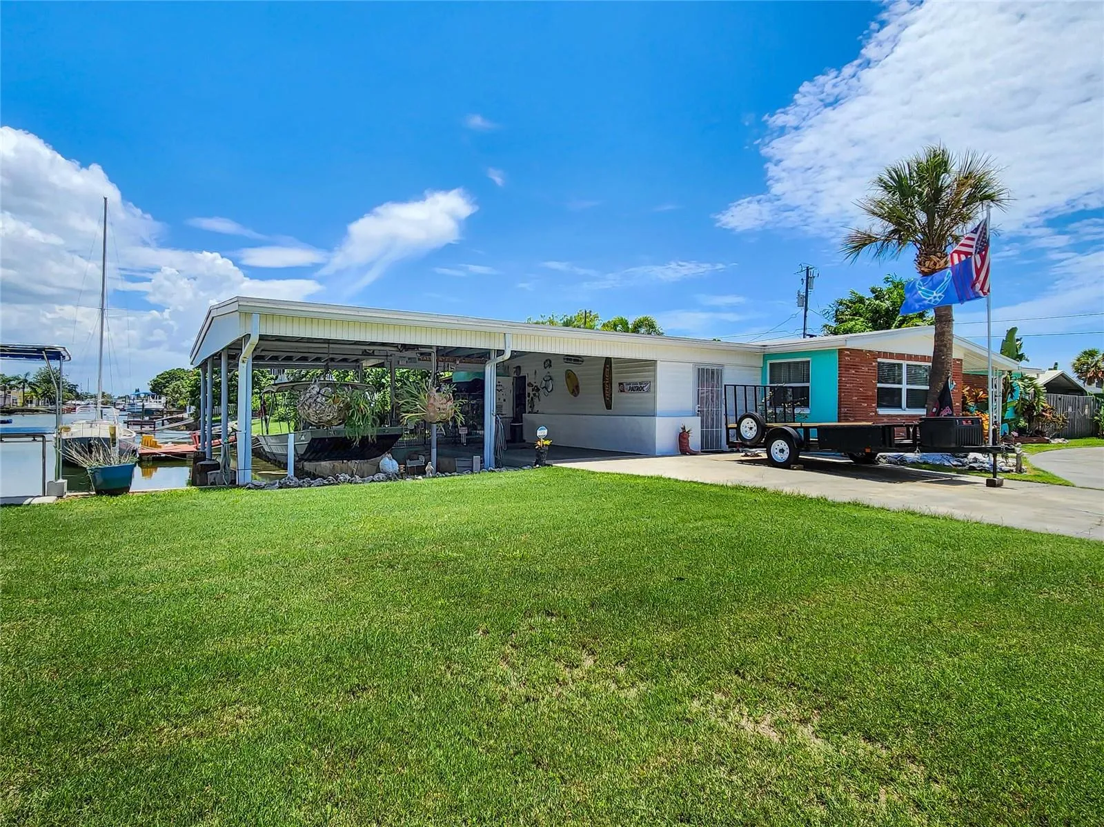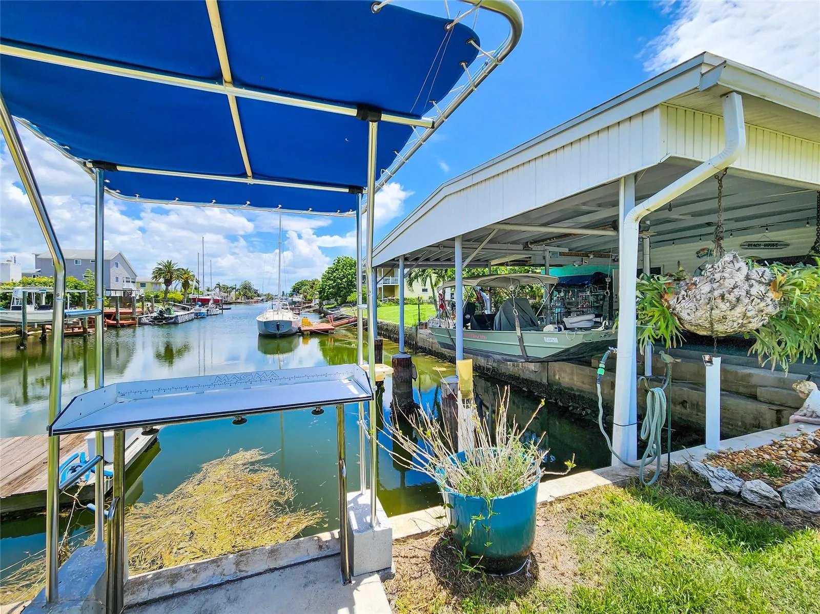 Boater’s Paradise Pool home with direct access to the Gulf of Mexico! This incredible property features a grandfathered-in covered boat lift that accommodates up to a 22-foot boat. Situated on one of the wider deep water canals, a fish cleaning station, and a floating dock. The seawall is in excellent condition and sits higher than others in the area. Set on an oversized corner lot, there’s ample space for RV parking, boat storage, or extra parking, with RV electric hookup and a dump station included. Inside, you’ll find a huge family room perfect for entertaining, complete with a wide open floor plan and a dry bar. Your backyard oasis awaits, featuring automatic custom lighting, a custom outdoor shower, firepit, and tropical plants and décor. The front of the property offers generously oversized covered parking, while the garage has been converted into a workshop with a large elevated area for the fridge with room for a freezer. There’s also a separate raised laundry area with plenty of cabinet space. The owners have installed a custom 3-foot block retention wall along the outer left side of the home, providing an impenetrable layer of protection from water intrusion. During recent storms, this home remained completely dry. The property also boasts a large covered outdoor area facing the water, with the beginnings of an outdoor kitchen ready for your personal touch. At the end of the day, cruise through the golf cart-friendly neighborhood and park safely in the separate gated and covered golf cart parking area. Recent updates include a new roof in 2015, pool pump replaced in 2024, new flooring in 2019, guest bathroom remodel and plumbing updated in 2020, new gutters in 2020, pool cage re-screened in 2021, and a new 3-ton HVAC with a 10-year warranty in 2021. The pool, plumbing, and electrical systems were updated in 2005. This property truly has it all for your coastal living dreams! Walking distance to local waterfront restaurants and Hudson Beach!