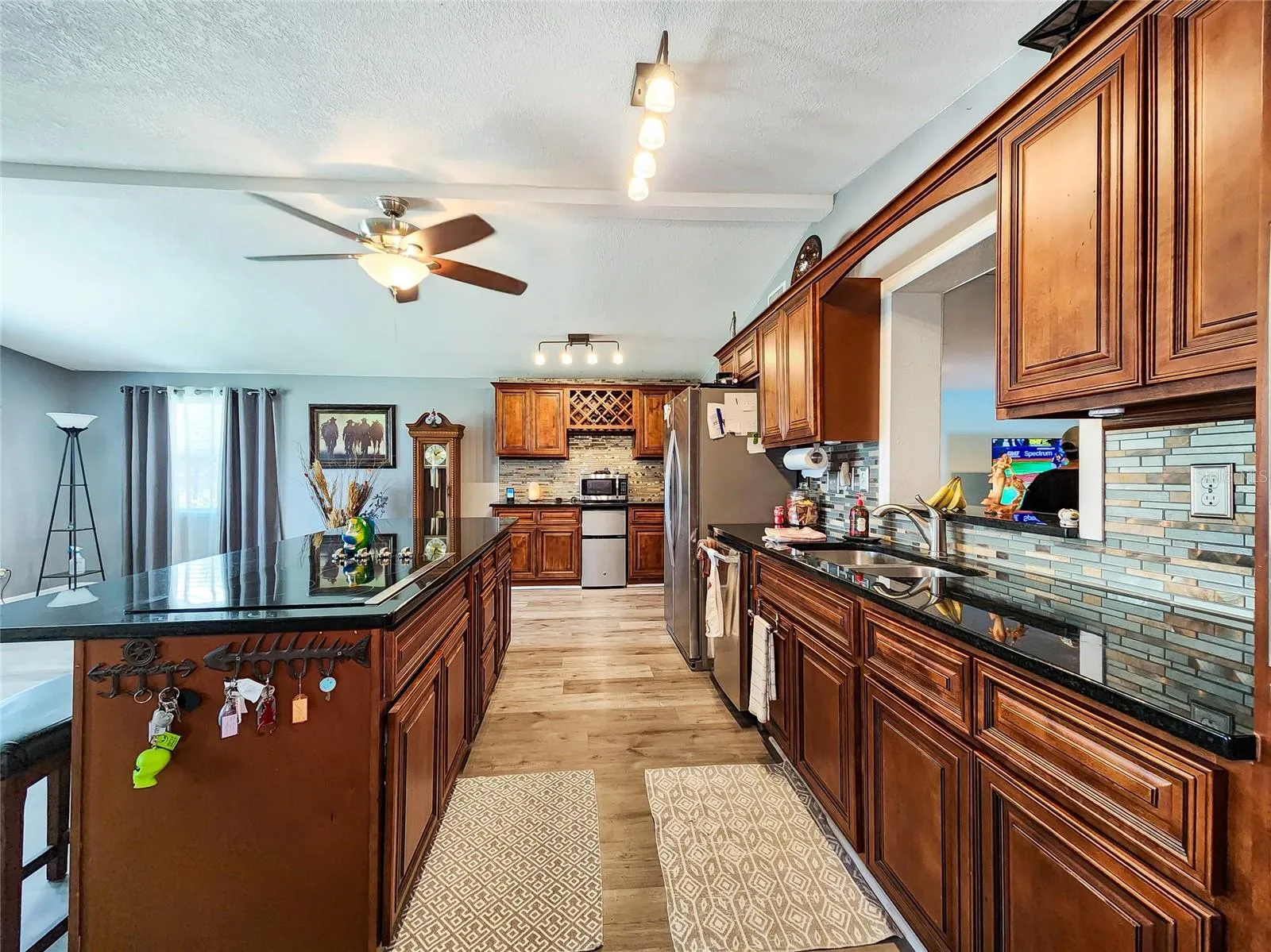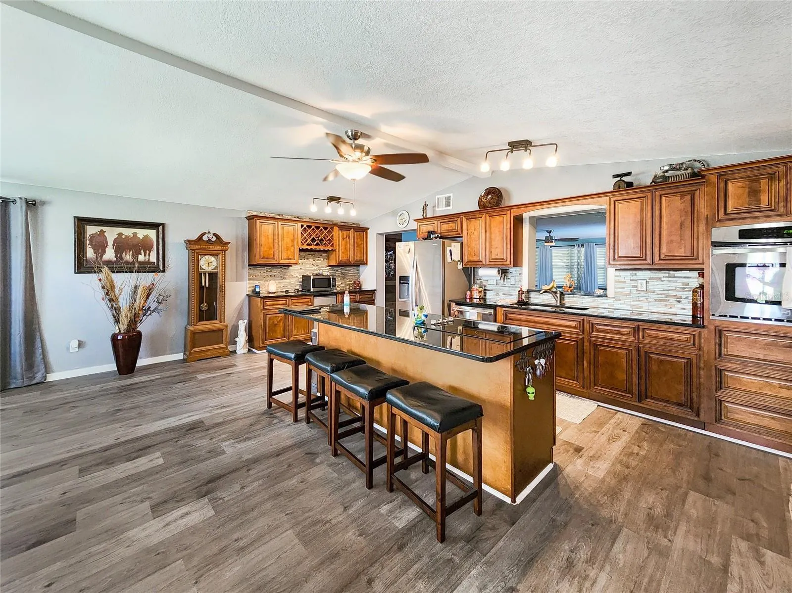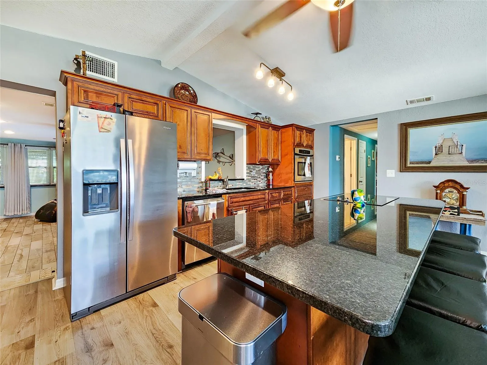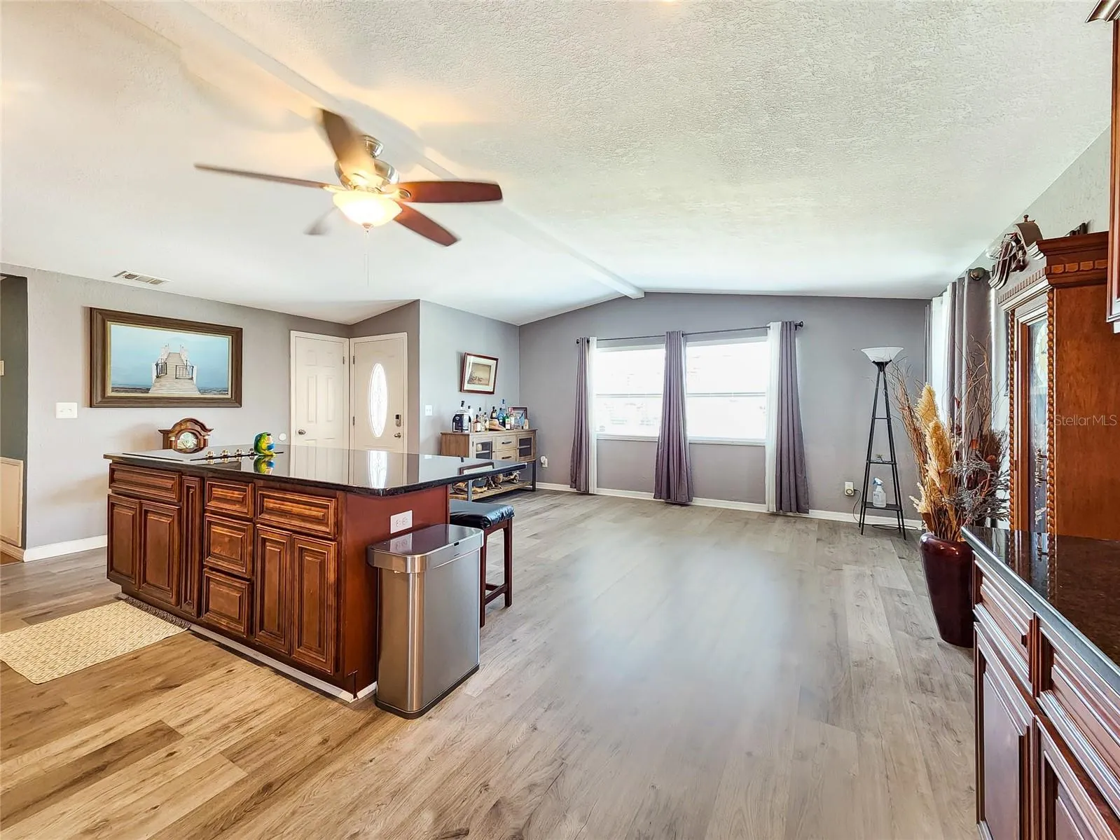- Ceiling Fans(s), Open Floorplan, Thermostat, Eat-in Kitchen, Kitchen/Family Room Combo, Primary Bedroom Main Floor, Window Treatments, Stone Counters, Solid Wood Cabinets, Built-in Features