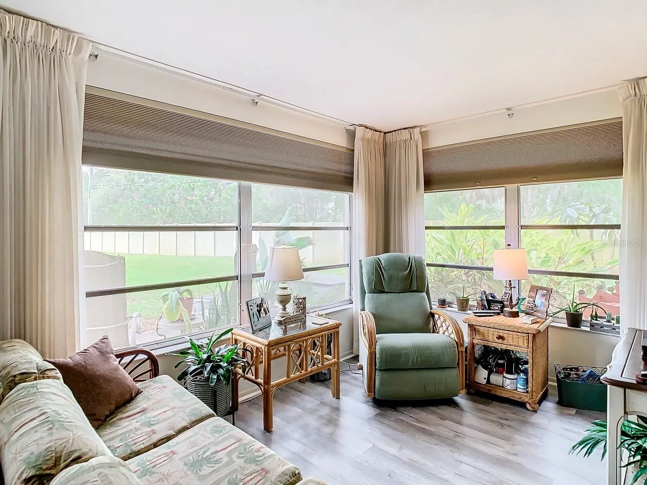 HUGE PRICE REDUCTION!!! SELLER IS MOTIVATED!! SUN & FUN OUTSIDE! CHIC LIVING INSIDE! Check out this CAPTIVATING END UNIT that has been UPGRADED and IMPECCABLY MAINTAINED! Enjoy the Luxurious Florida Lifestyle you always dreamed of, in this 2/2 MOVE-IN-READY 55+ BEAUTY! This one level Villa enjoys a SPLIT FLOOR PLAN with a MAGNIFICENT FLORIDA ROOM, and back PATIO. The thoughtful Kitchen is perfectly equipped with Stainless Steel Appliances, including a NEW REFRIGERATOR, a NEW OUTSTANDING MICROWAVE that works as a CONVECTION OVEN & AIR FRYER, plenty of cabinets and shelving. The Kitchen also includes a pass-through window to the Dining Room that is open to the Living Room, and just oozing with pizzazz. Your guests will enjoy a front bedroom next to their own full bath, while you spoil and pamper yourself on the other side of the villa with an outstanding Master En-suite that revels in the convenience of a private entrance into the Florida Room recently fitted with NEW CUSTOM WINDOW SHADES on the HUGE picture windows! The home has an inside laundry closet, and has also been upgraded with a NEW ELECTRIC PANEL, NEW FLOORING in the Living Room and Florida Room, a NEW GLASS SHOWER BARN DOOR in the MASTER BATH, and a NEW WHOLE HOUSE CULLIGAN WATER FILTRATION SYSTEM…and even better – there’s a HOME WARRANTY! The GATED COMMUNITY is AMAZING as well! Mingle and chit-chat at the Clubhouse over a game of cards, shuffleboard, or billiards. Find serenity lounging by the pool, fishing off the dock, or gently water-gazing from the gazebo. Enjoy holidays with plenty of planned social events, and live carefree knowing that your HOA fees take care of basic cable tv, internet, lawn care, exterior maintenance, flood insurance for the exterior building, water, sewer, trash, the community pool, and Clubhouse. SIT BACK & RELAX! This awesome location is close to beaches, parks, and golfing, convenient to shopping, healthcare and entertainment, and yet tucked away enough to be quiet and serene. This home is PRICED RIGHT, and comes PARTIALLY FURNISHED. Call for a showing so you can make it your HOME SWEET HOME!!!